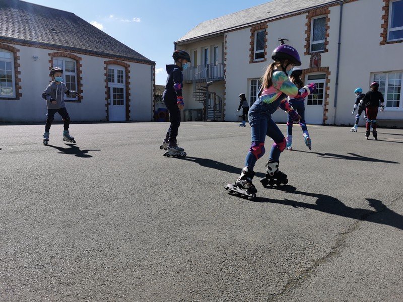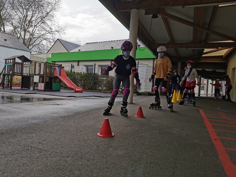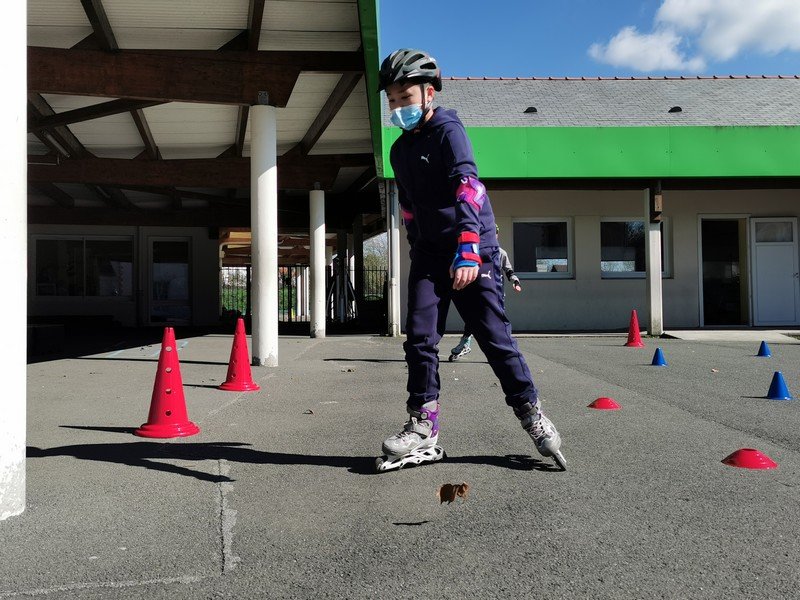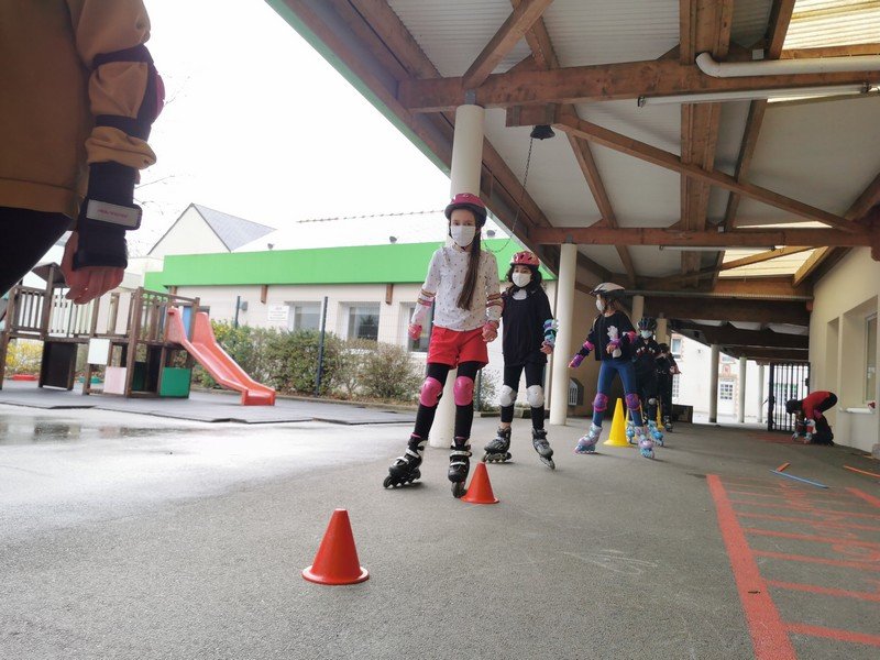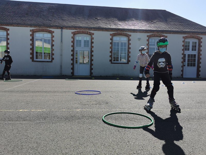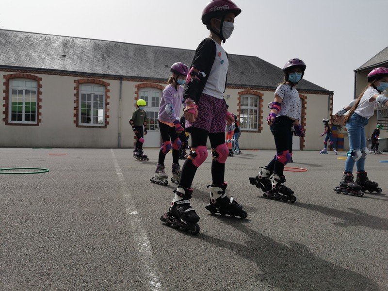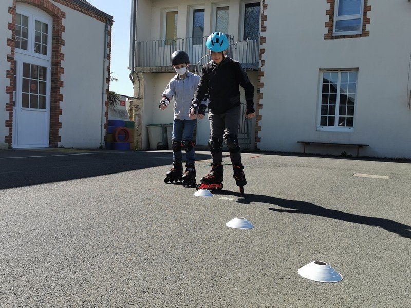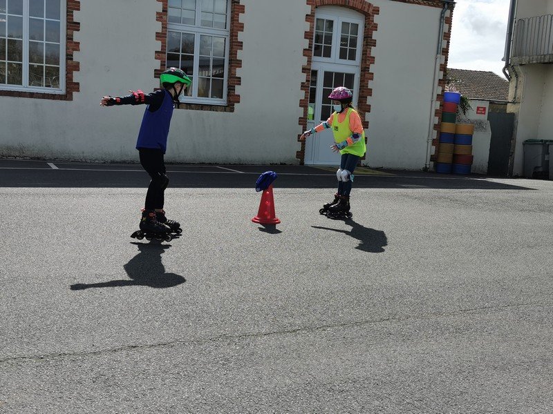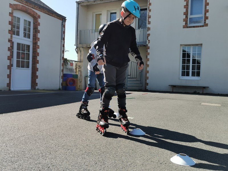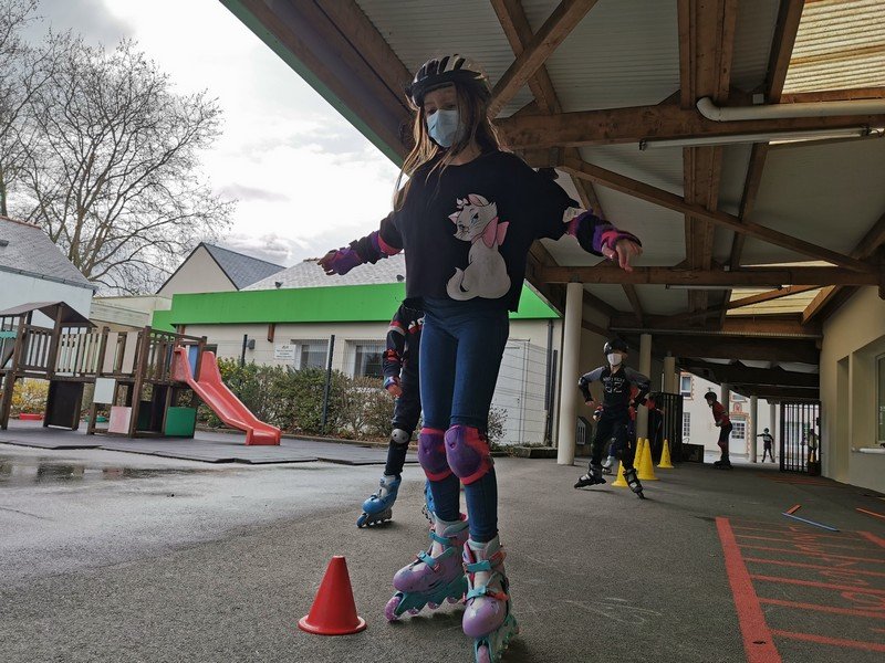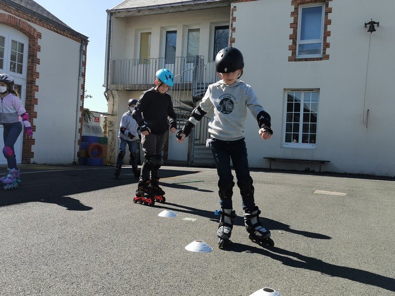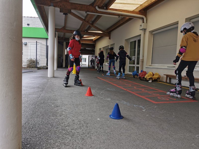 En EPS, les élèves de CM2 ont pu profiter de la cour pour chausser les rollers et se perfectionner au fil des séances.