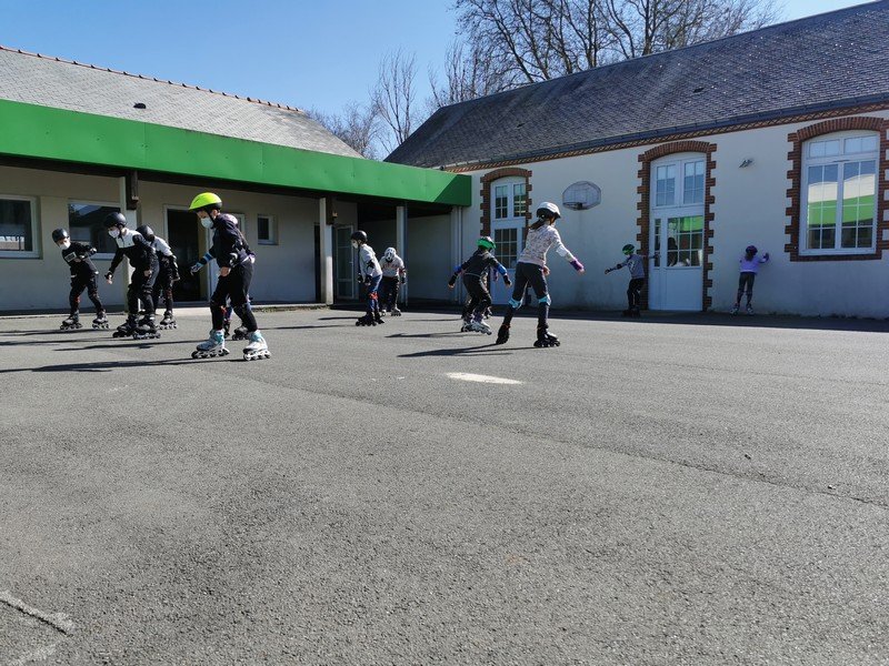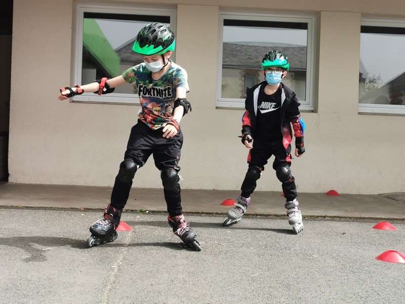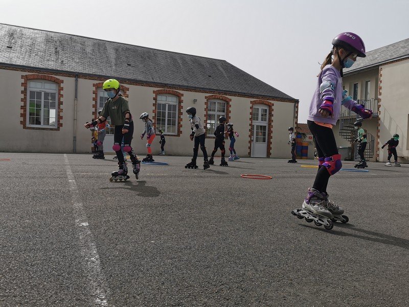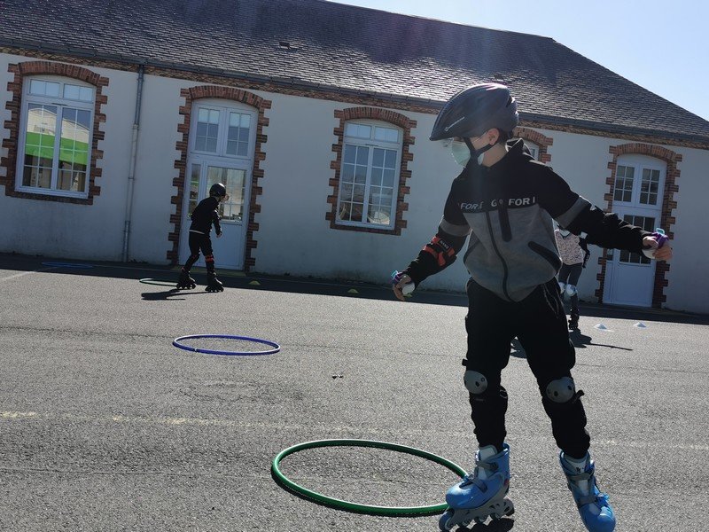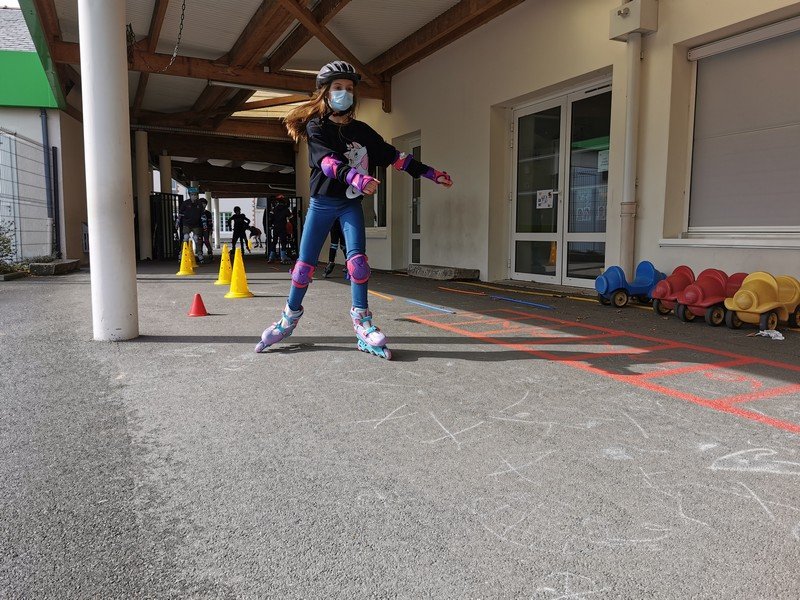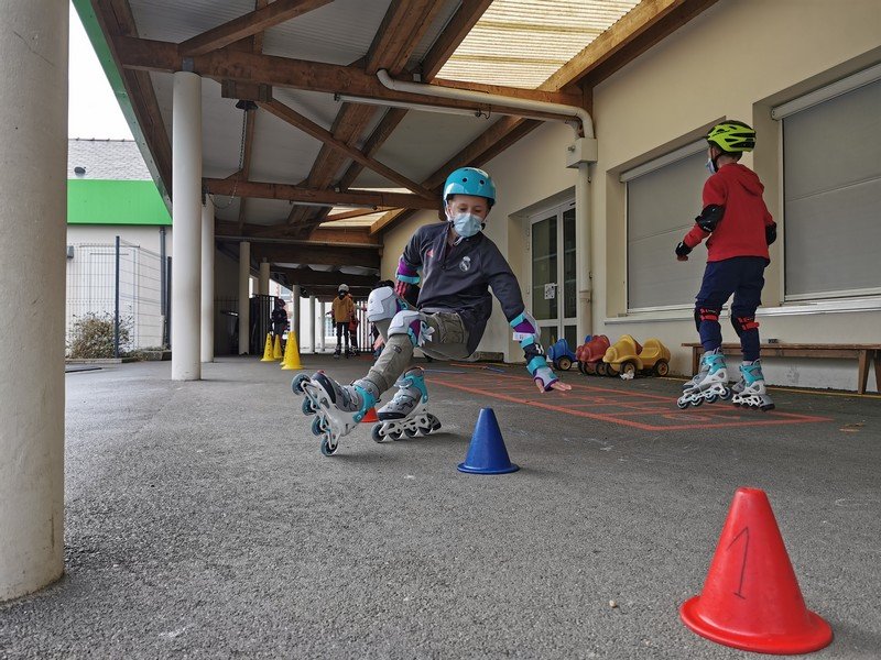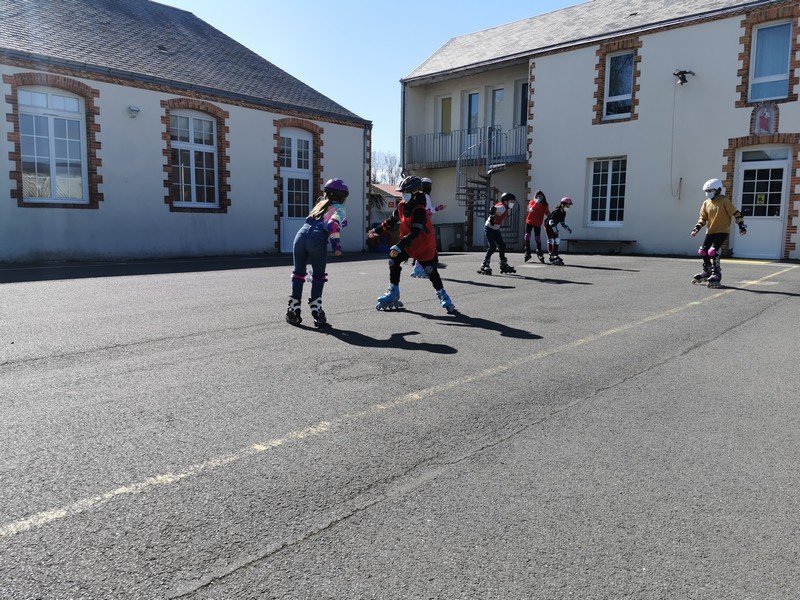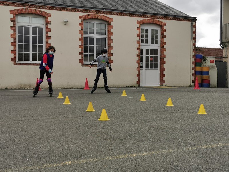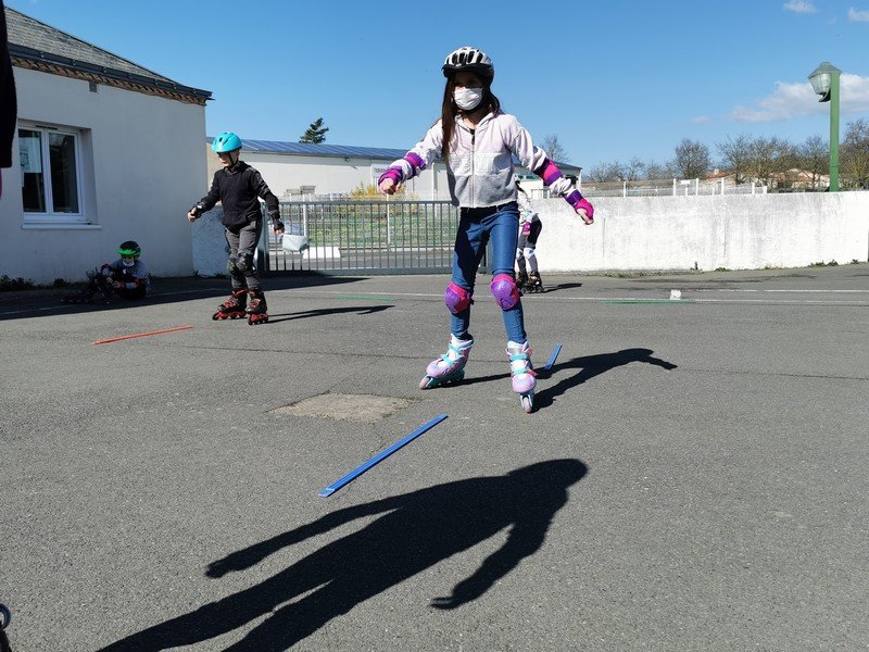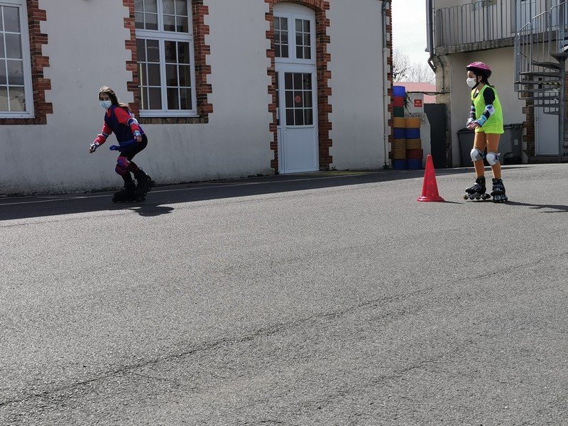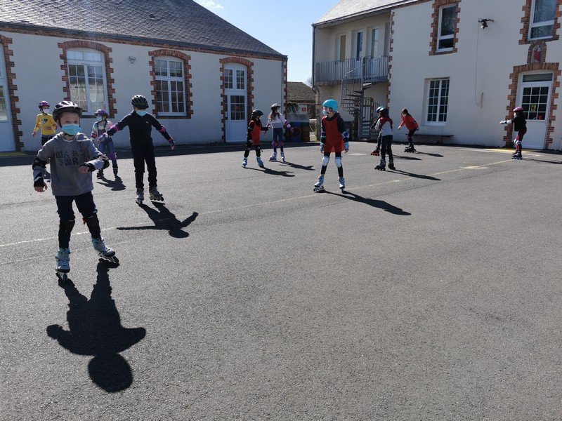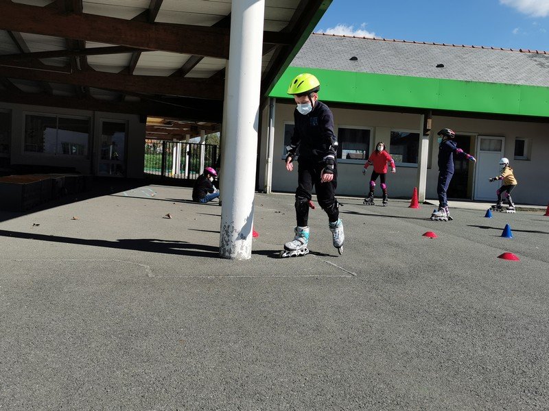 En EPS, les élèves de CM2 ont pu profiter de la cour pour chausser les rollers et se perfectionner au fil des séances.