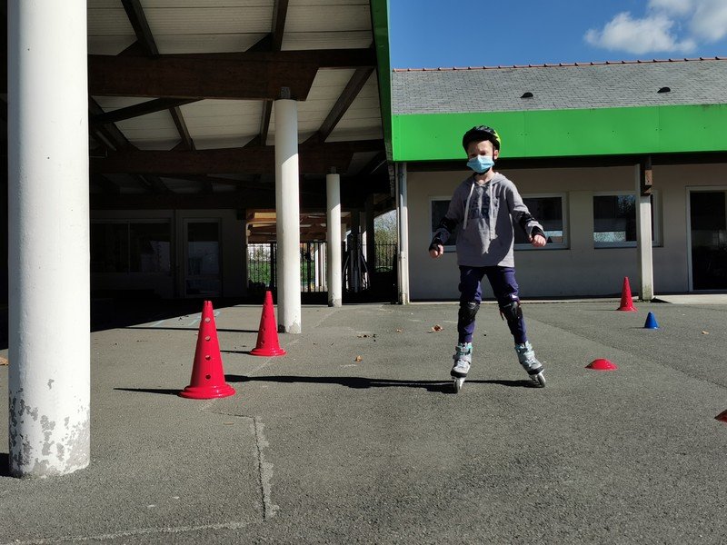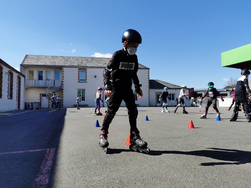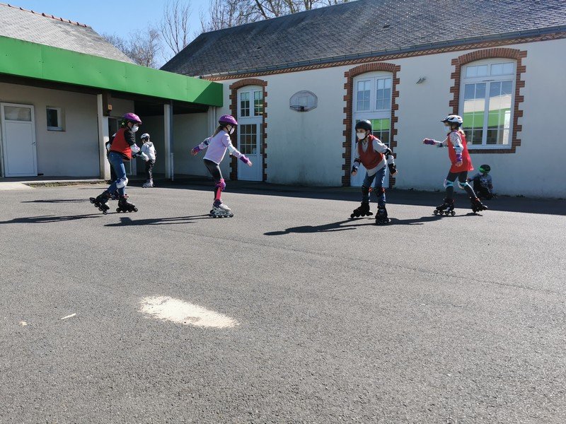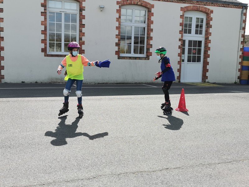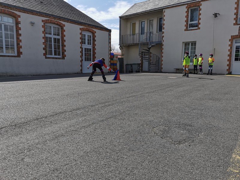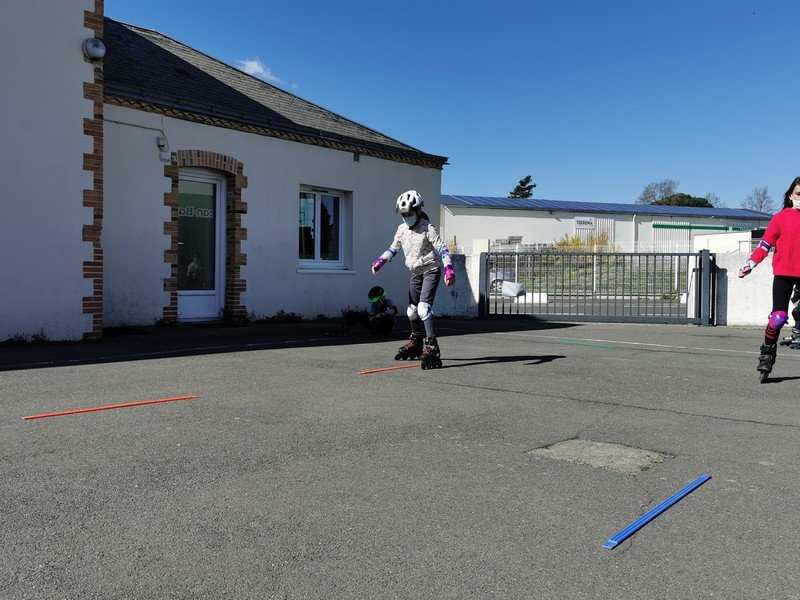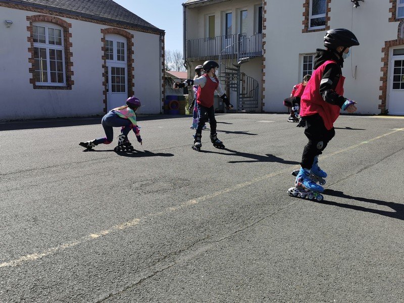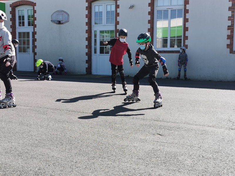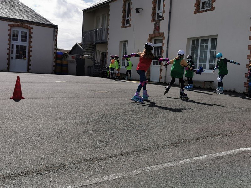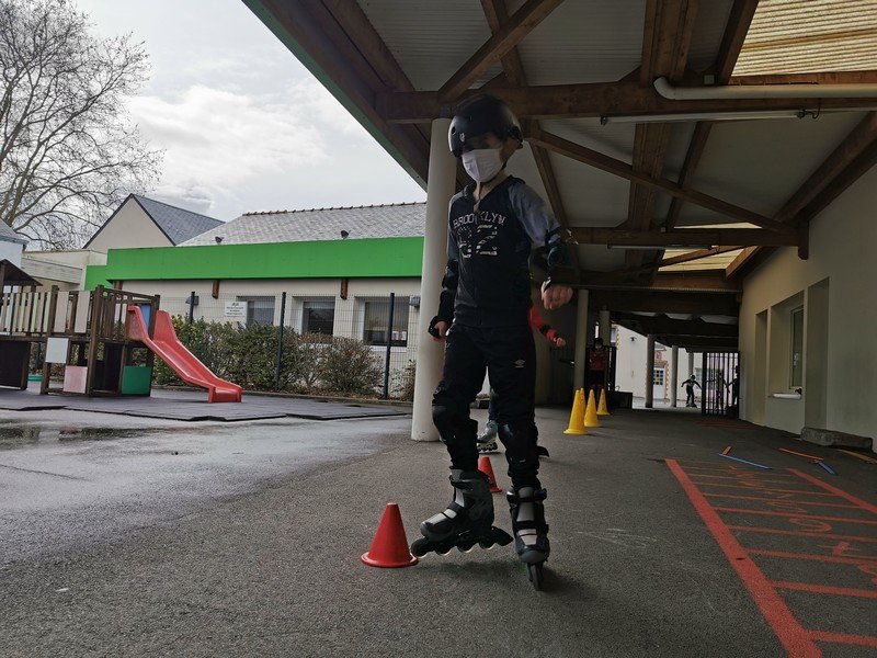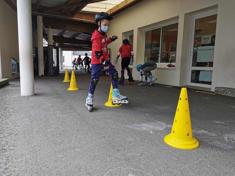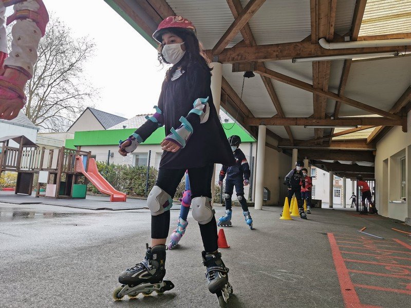 En EPS, les élèves de CM2 ont pu profiter de la cour pour chausser les rollers et se perfectionner au fil des séances.