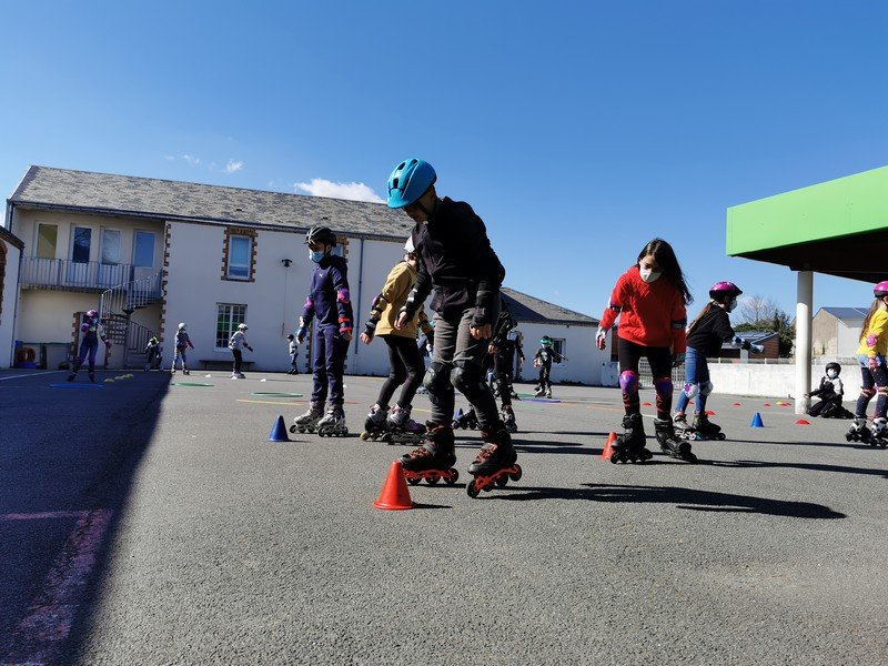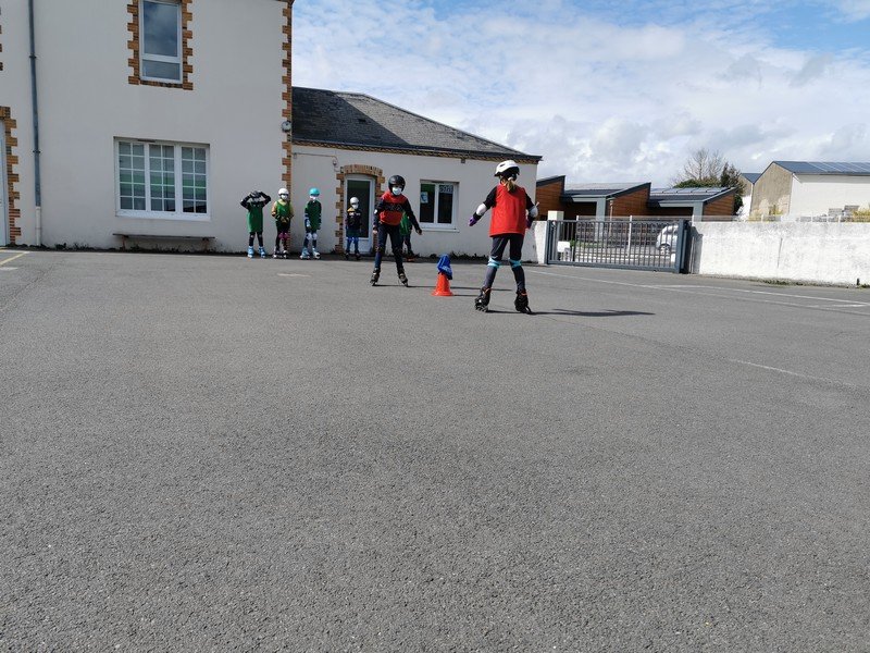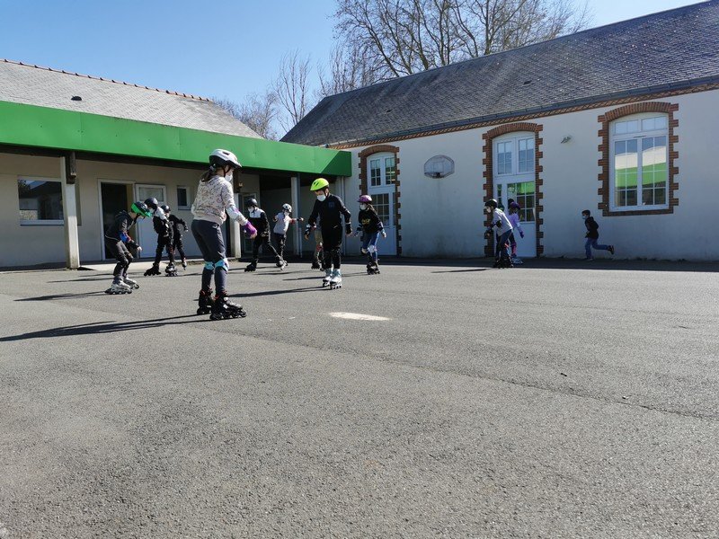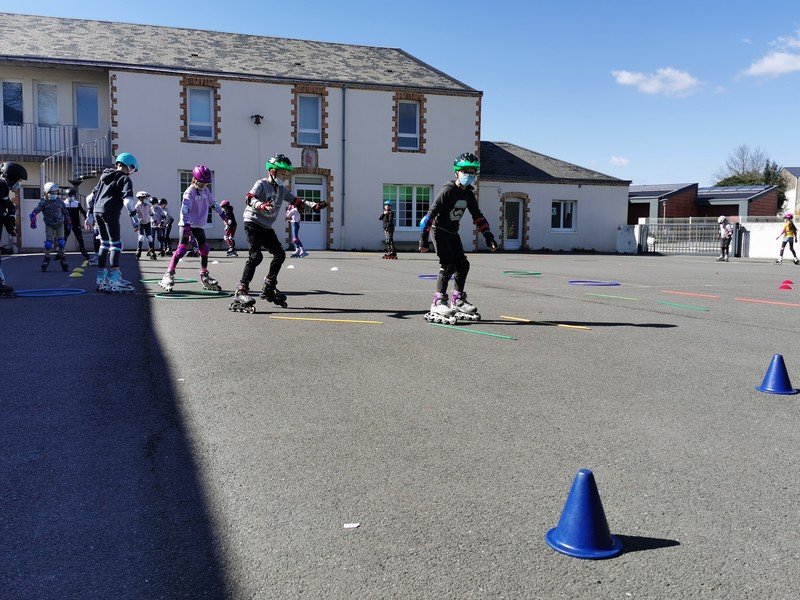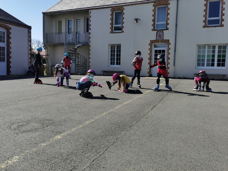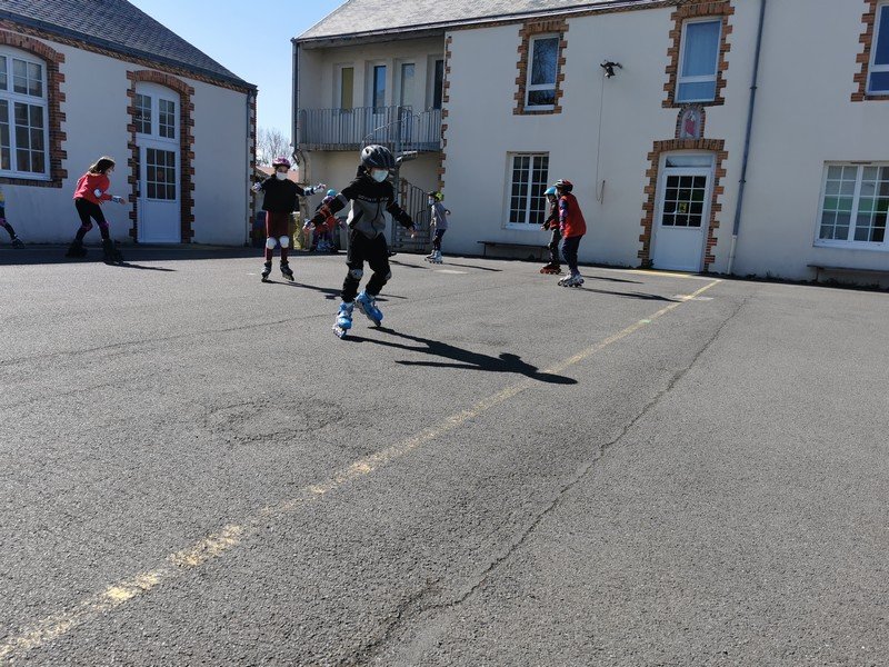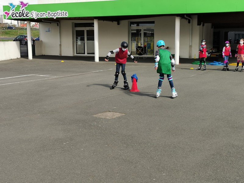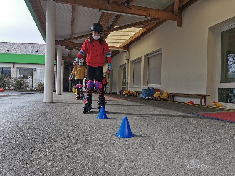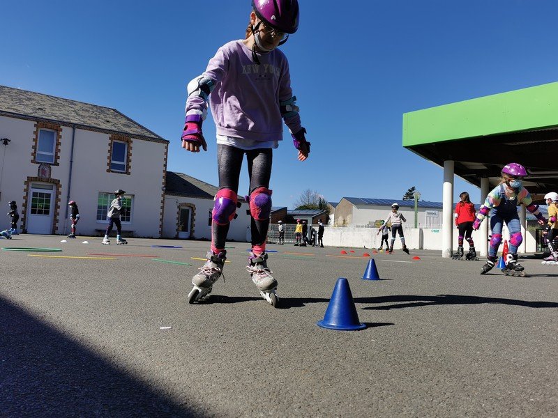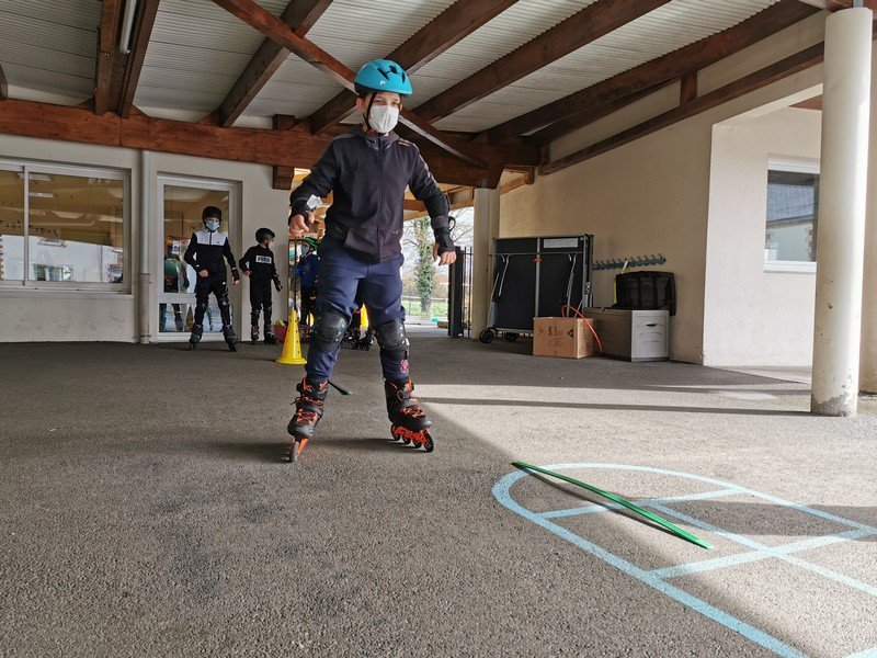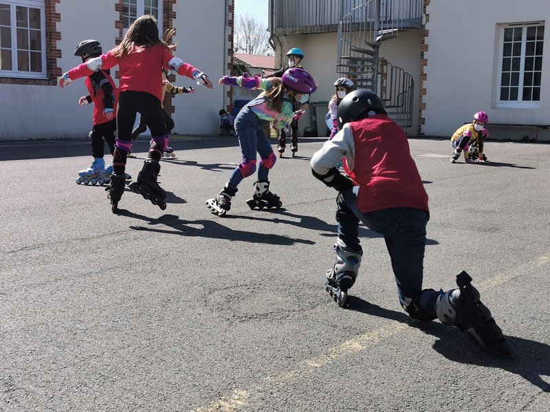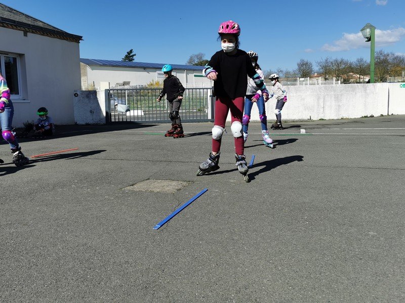 En EPS, les élèves de CM2 ont pu profiter de la cour pour chausser les rollers et se perfectionner au fil des séances.