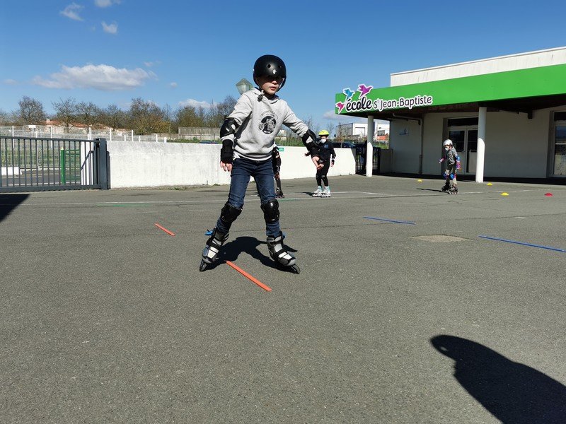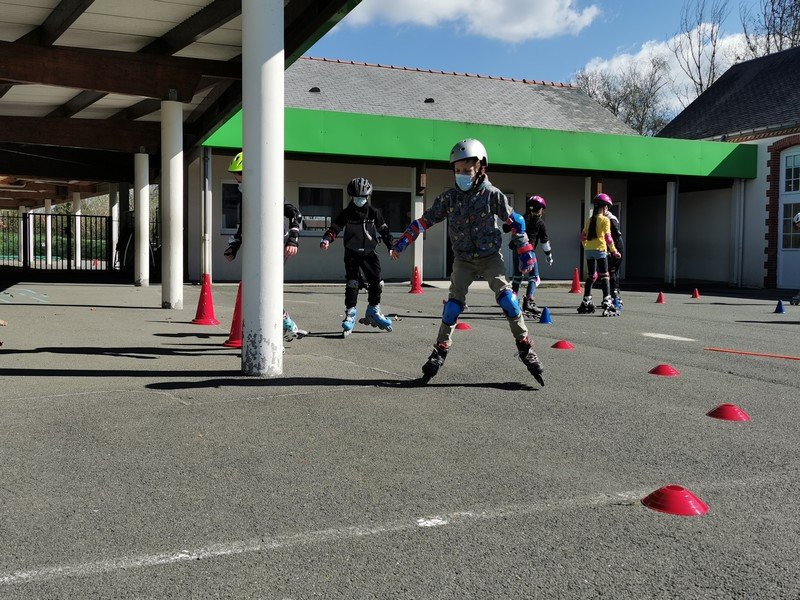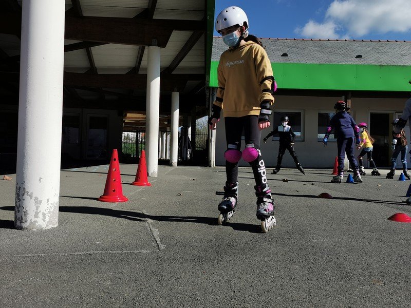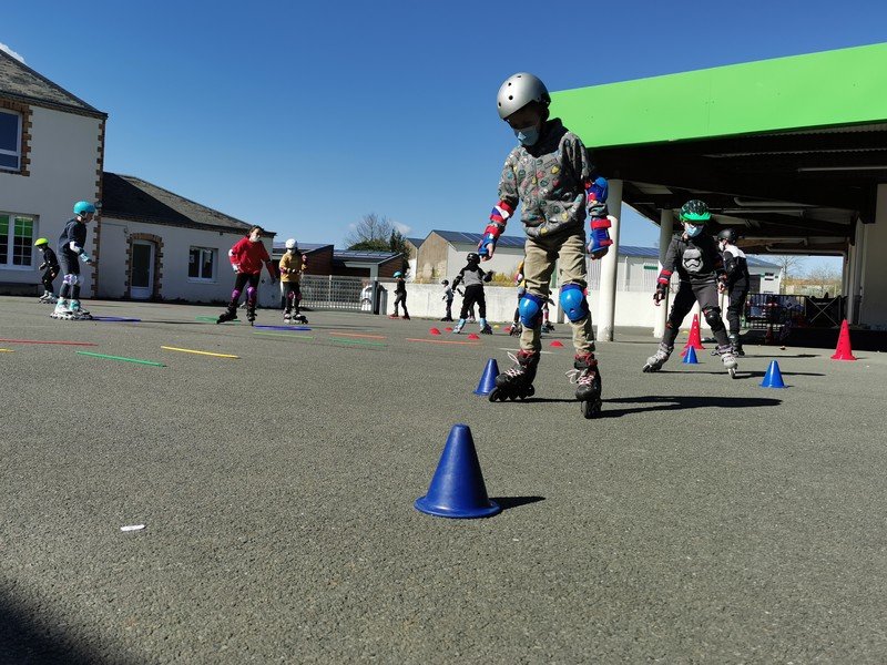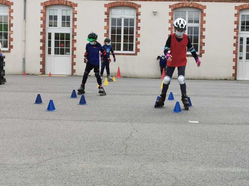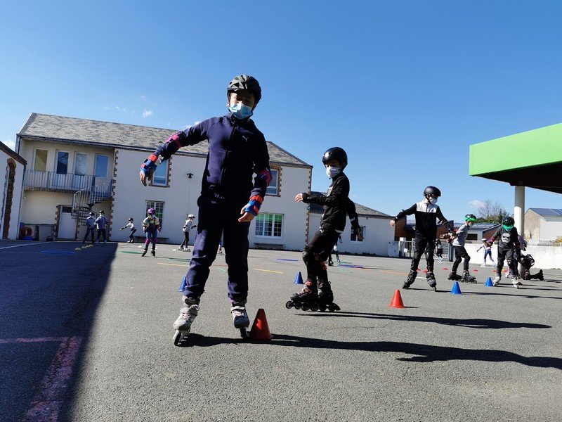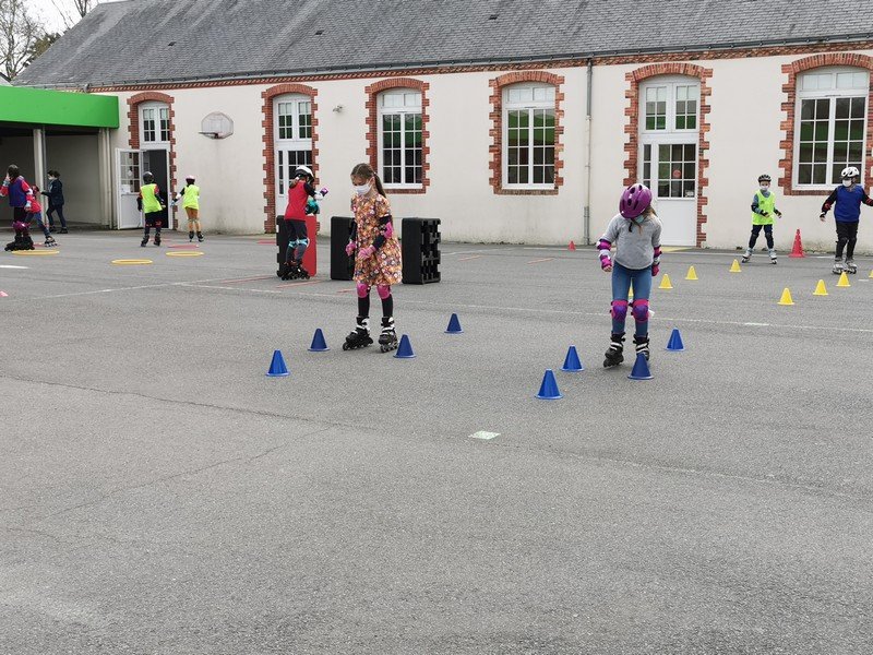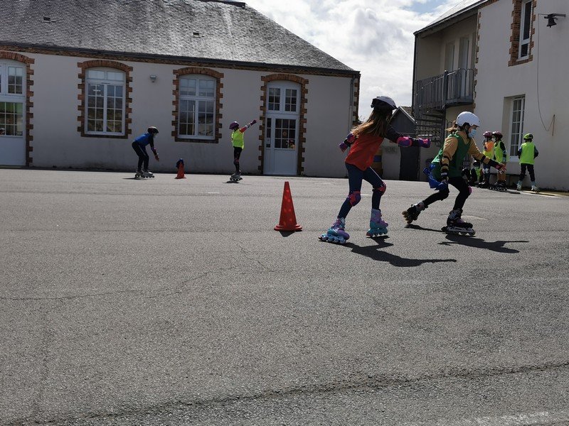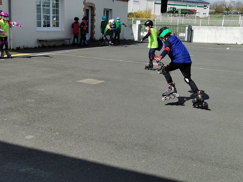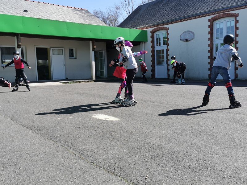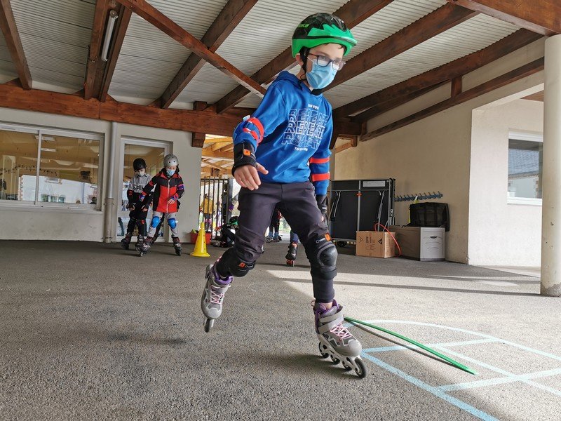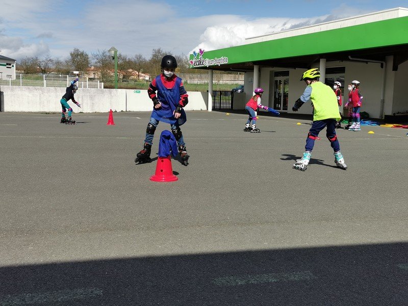 En EPS, les élèves de CM2 ont pu profiter de la cour pour chausser les rollers et se perfectionner au fil des séances.