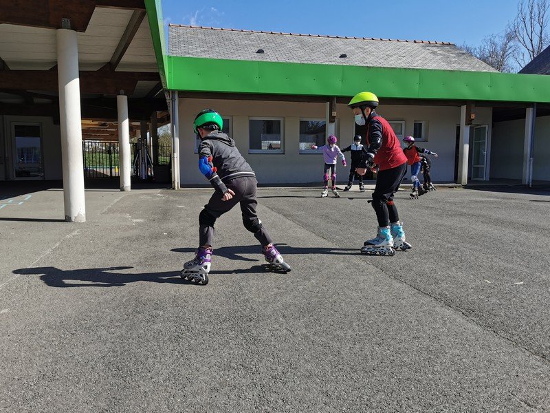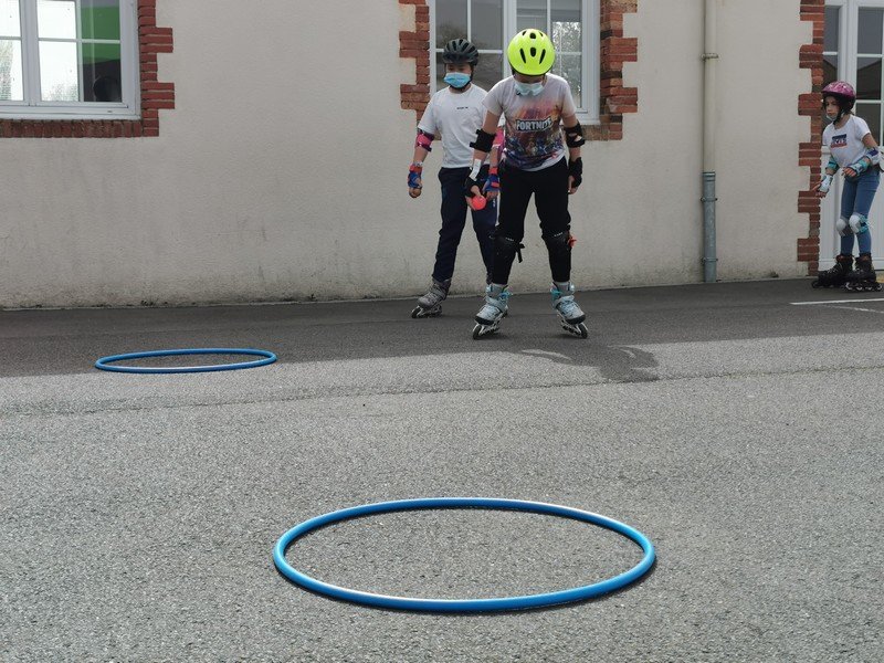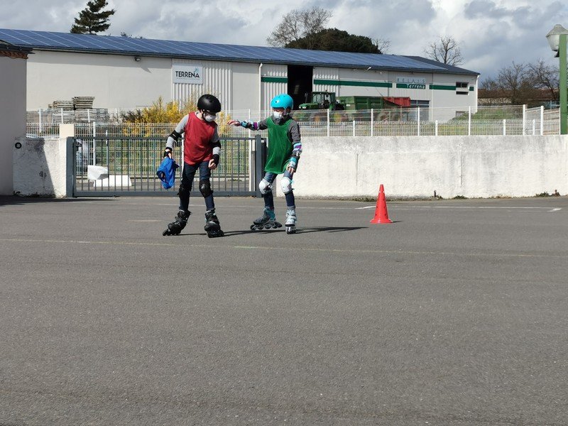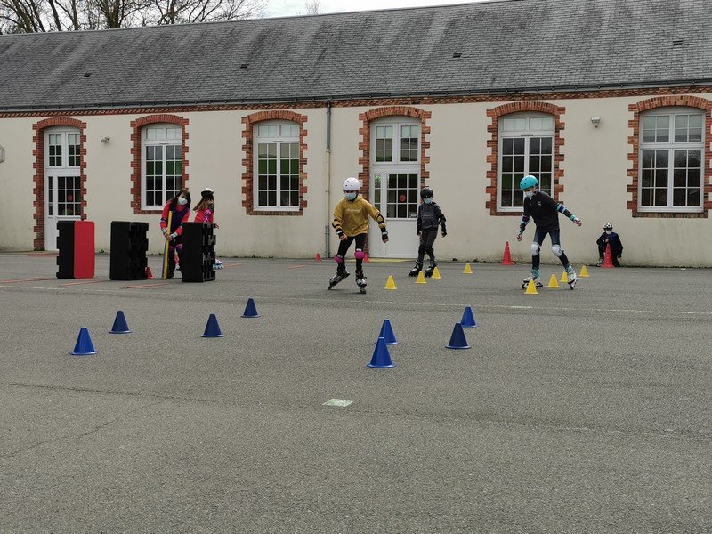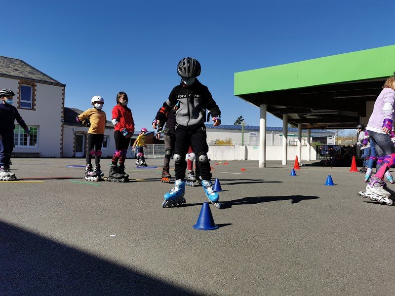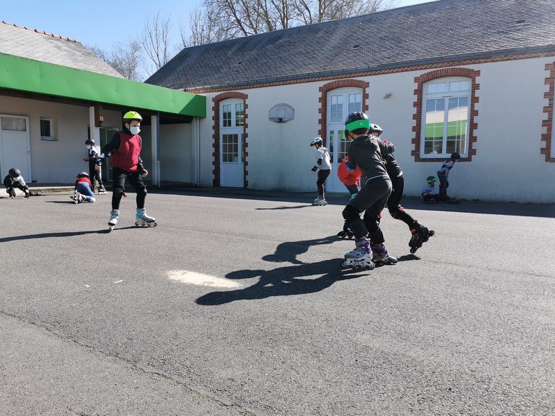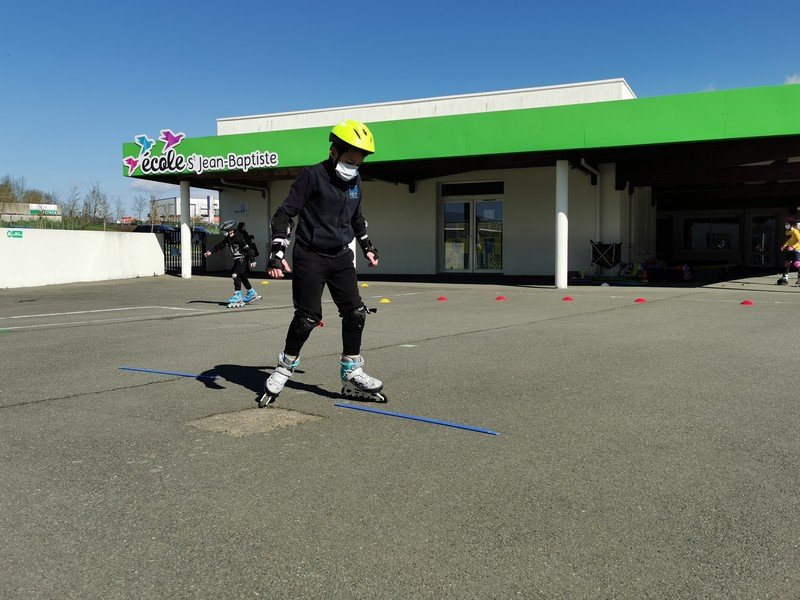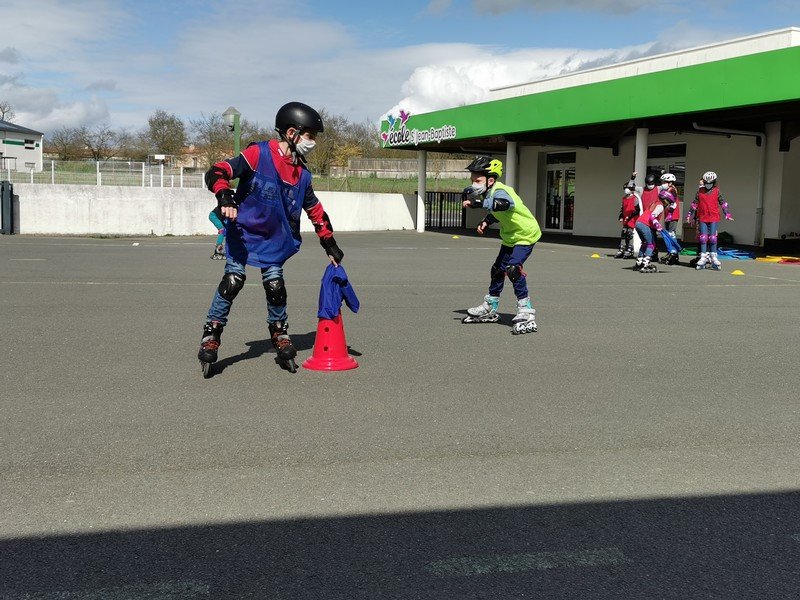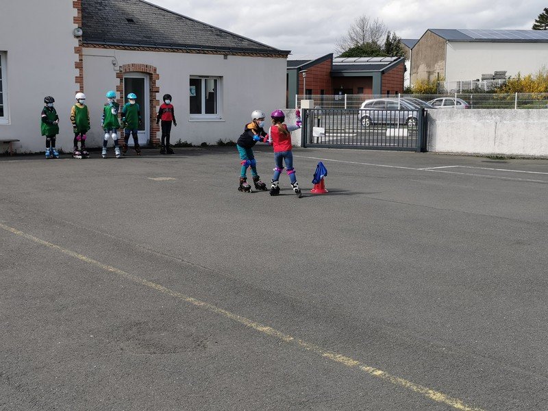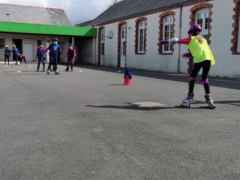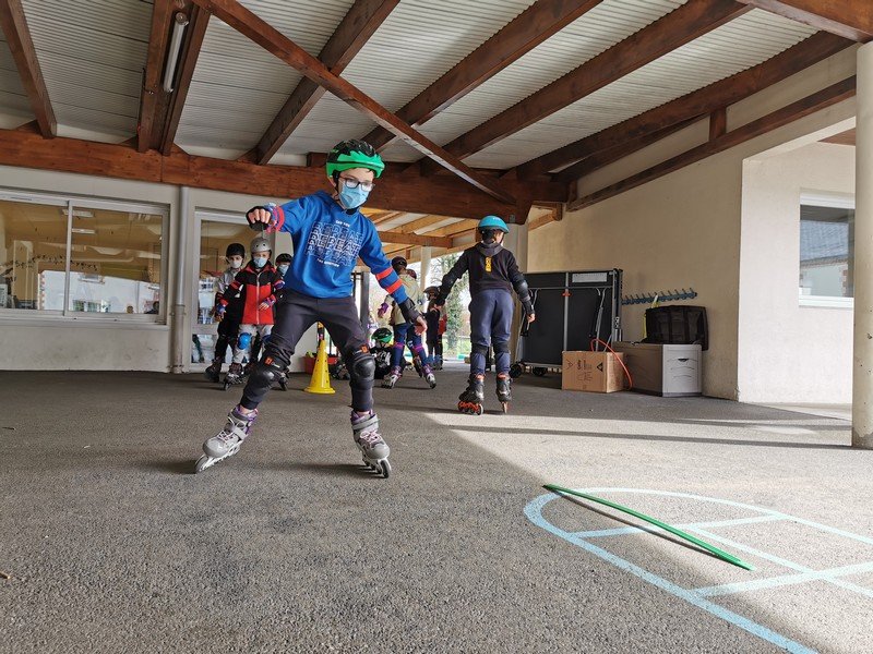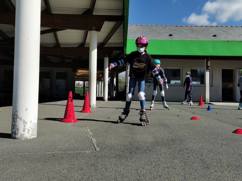 En EPS, les élèves de CM2 ont pu profiter de la cour pour chausser les rollers et se perfectionner au fil des séances.