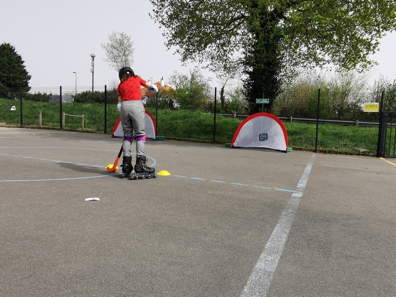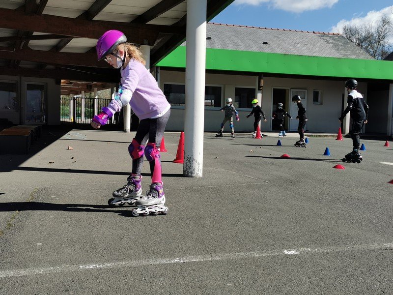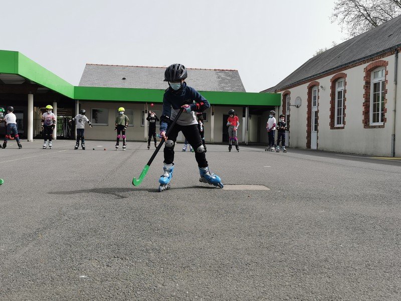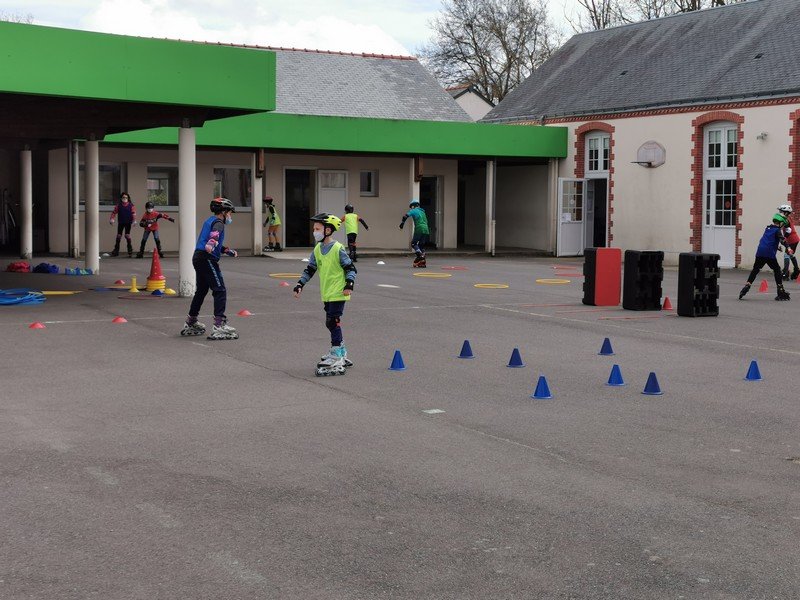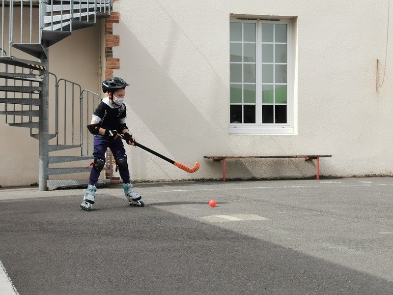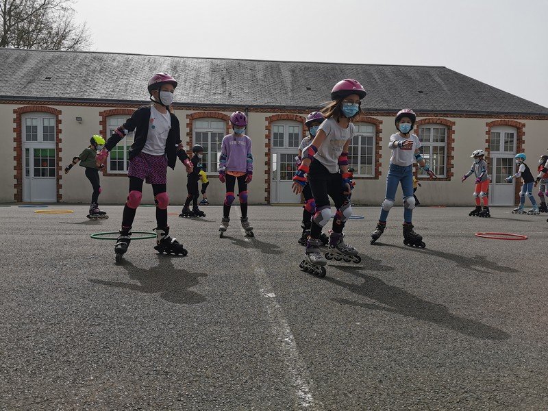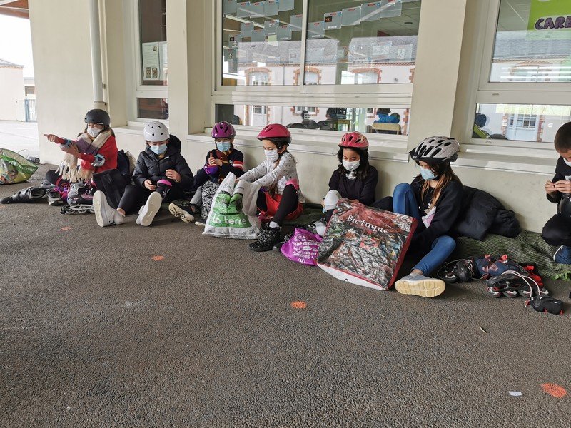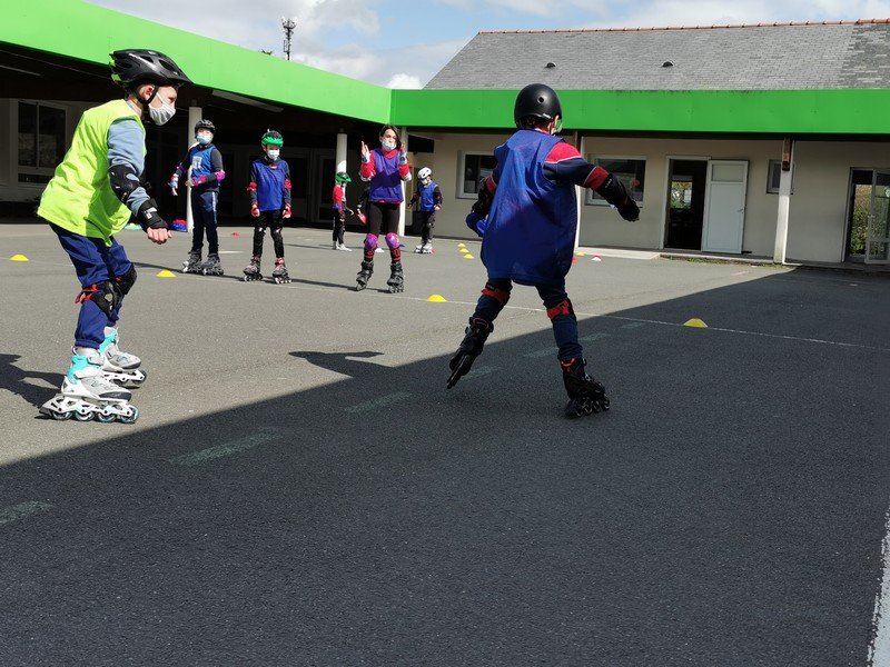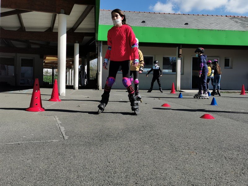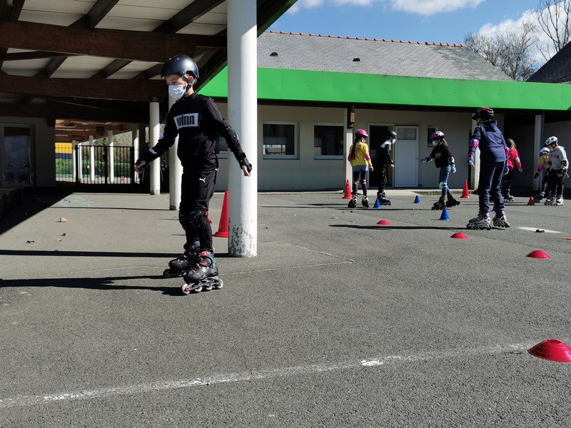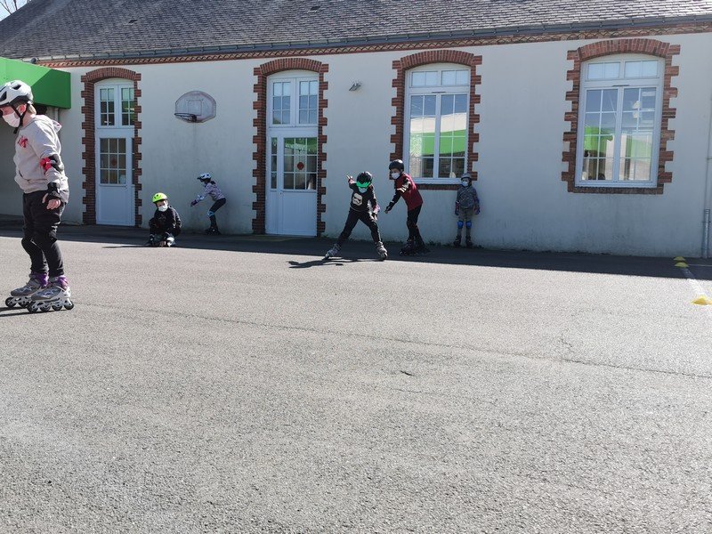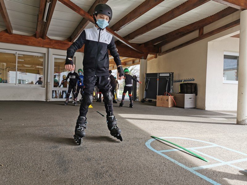 En EPS, les élèves de CM2 ont pu profiter de la cour pour chausser les rollers et se perfectionner au fil des séances.