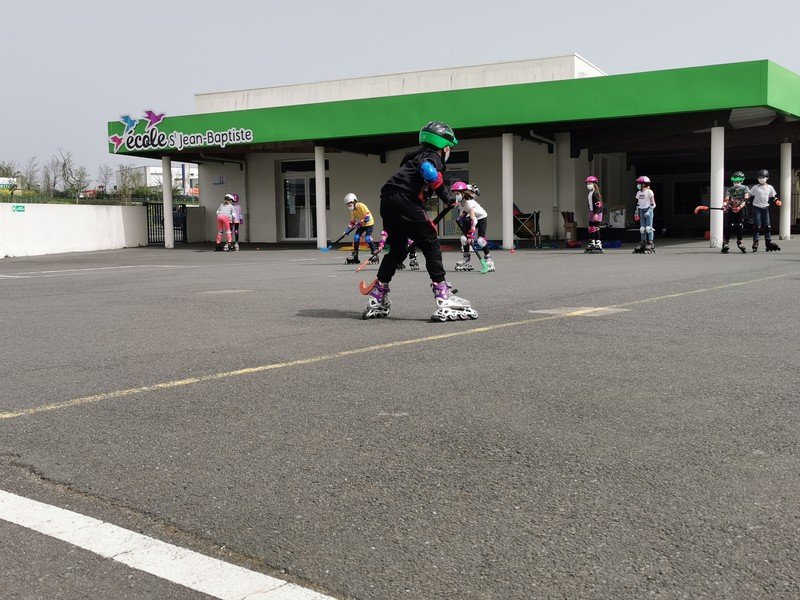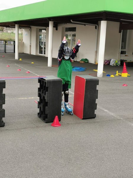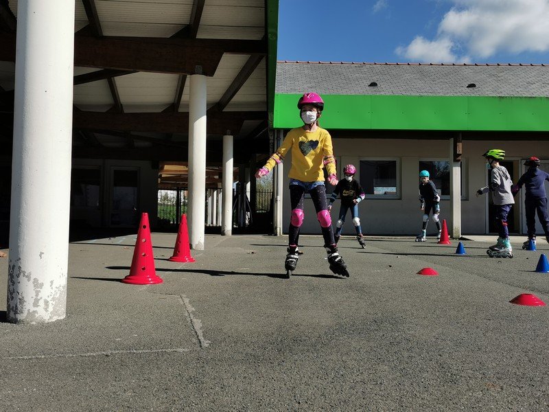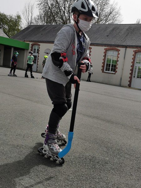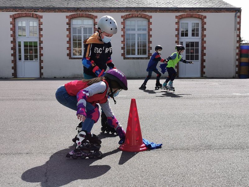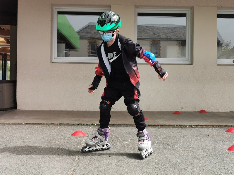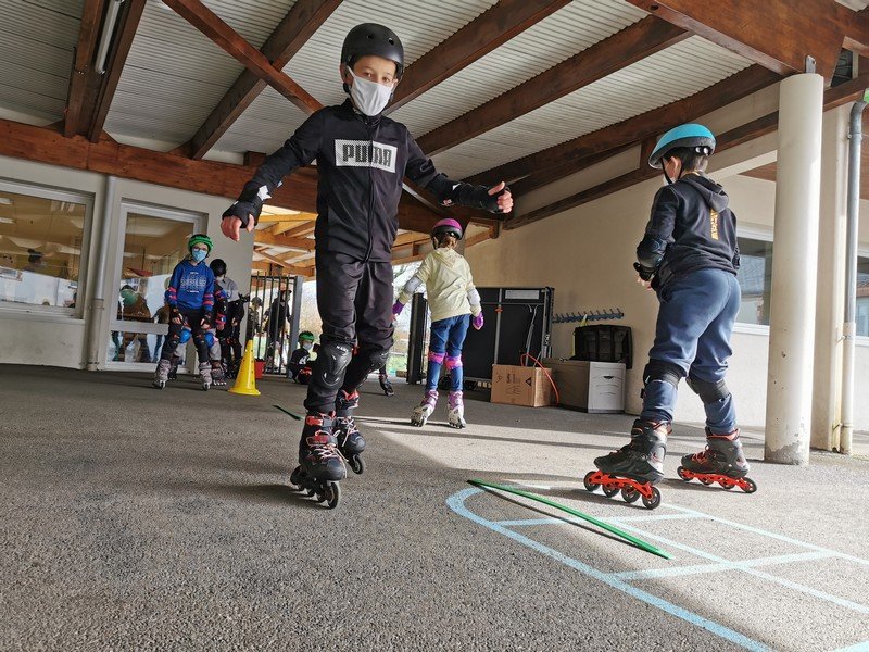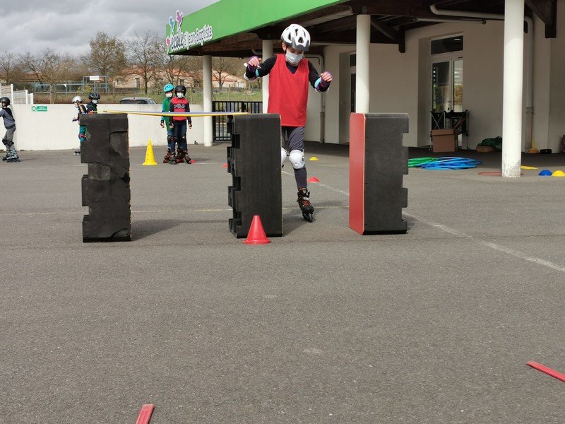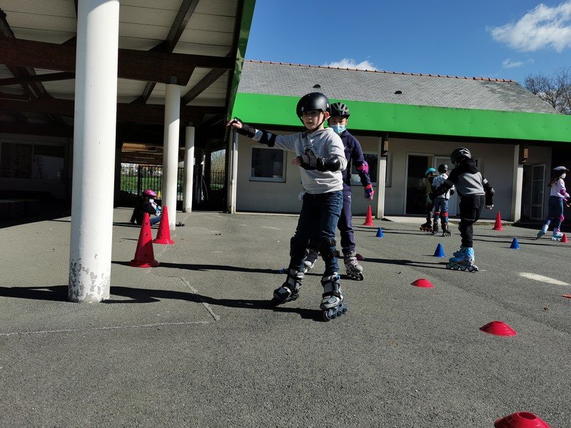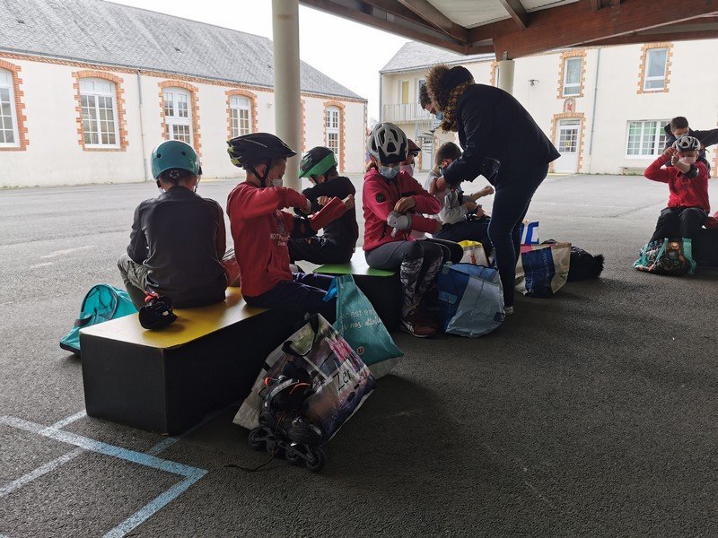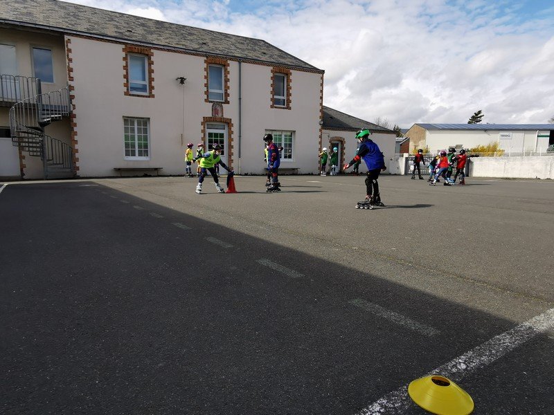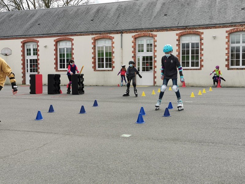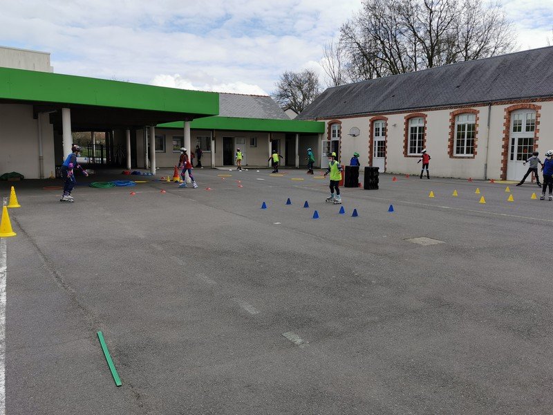 En EPS, les élèves de CM2 ont pu profiter de la cour pour chausser les rollers et se perfectionner au fil des séances.