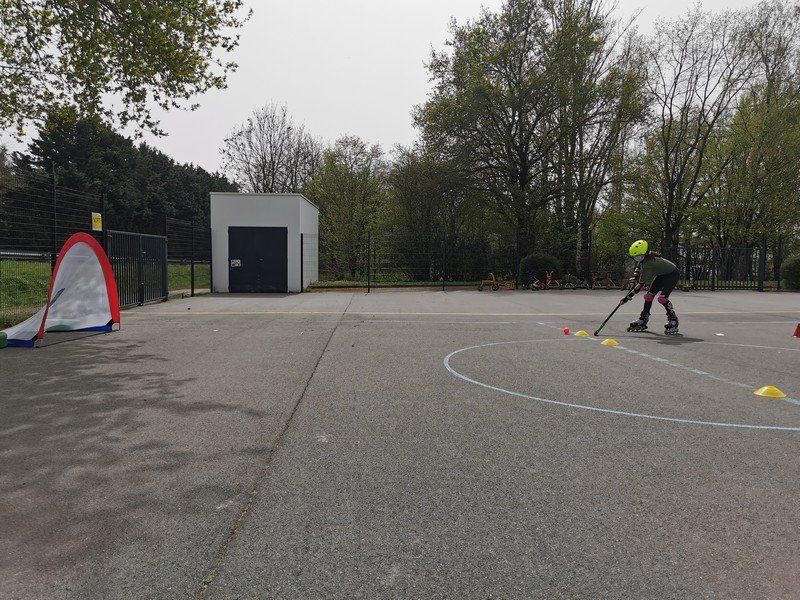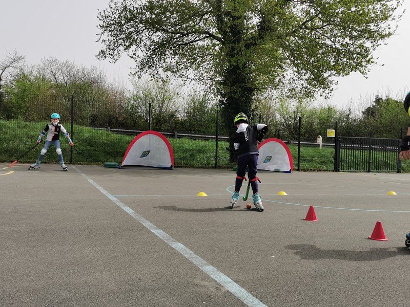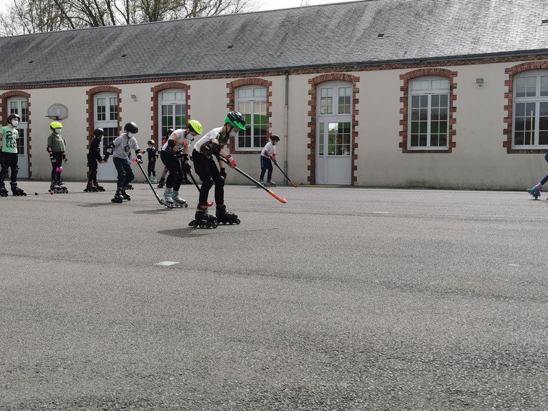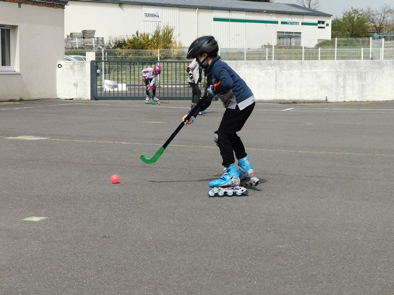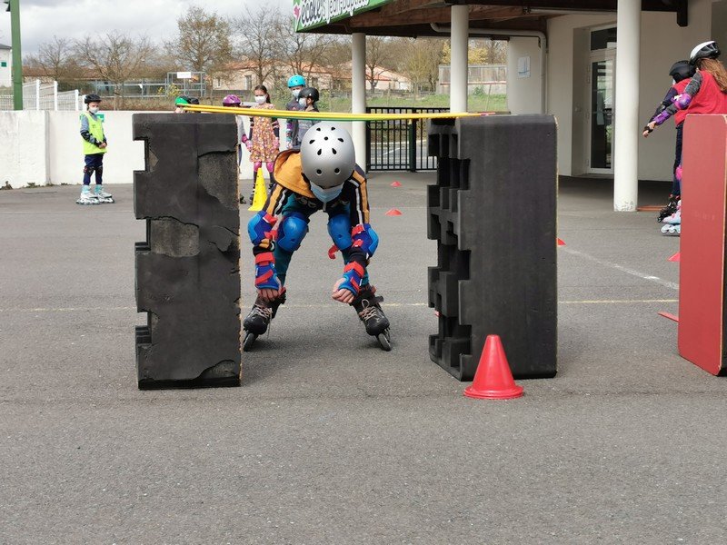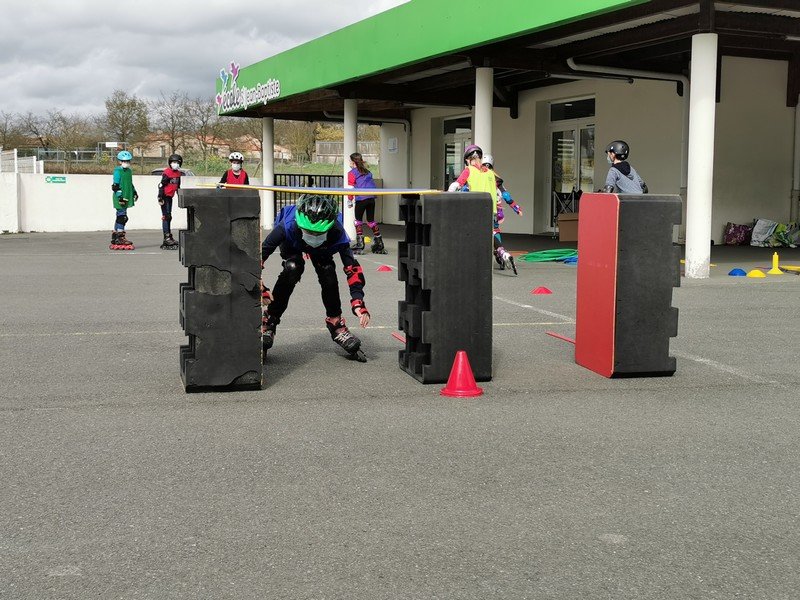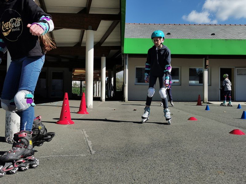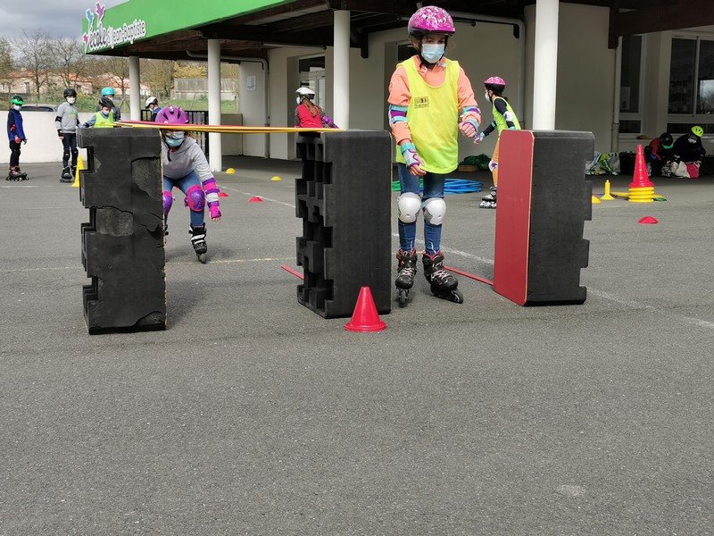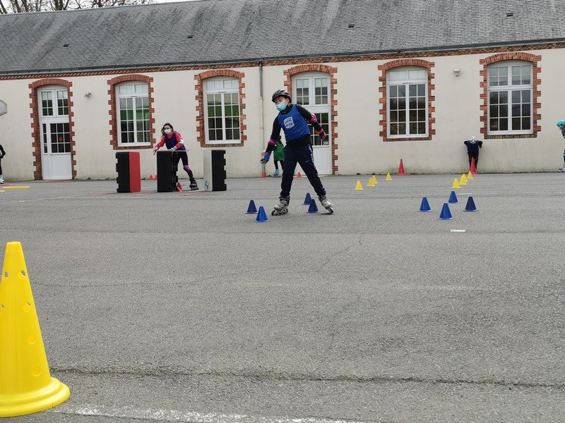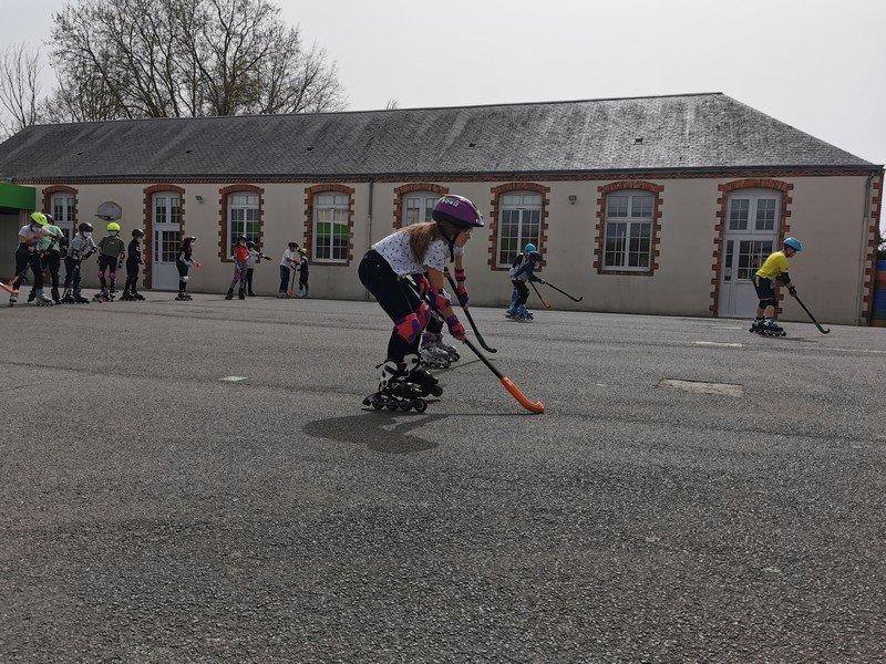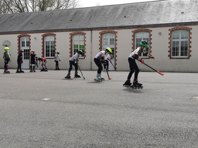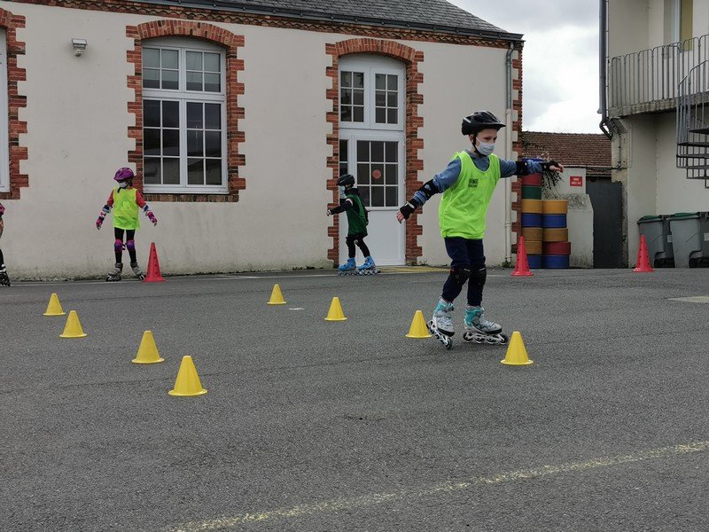 En EPS, les élèves de CM2 ont pu profiter de la cour pour chausser les rollers et se perfectionner au fil des séances.