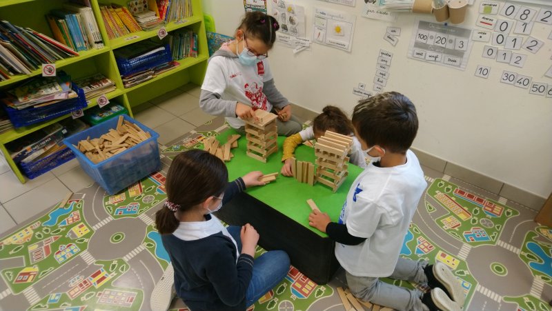 • Premier défi : par petit groupe, construire petit à petit, en se relayant, le plus beau des châteaux collectif à l’aide de KAPLA et décorer notre marque page prénom à la manière de l’enluminure.