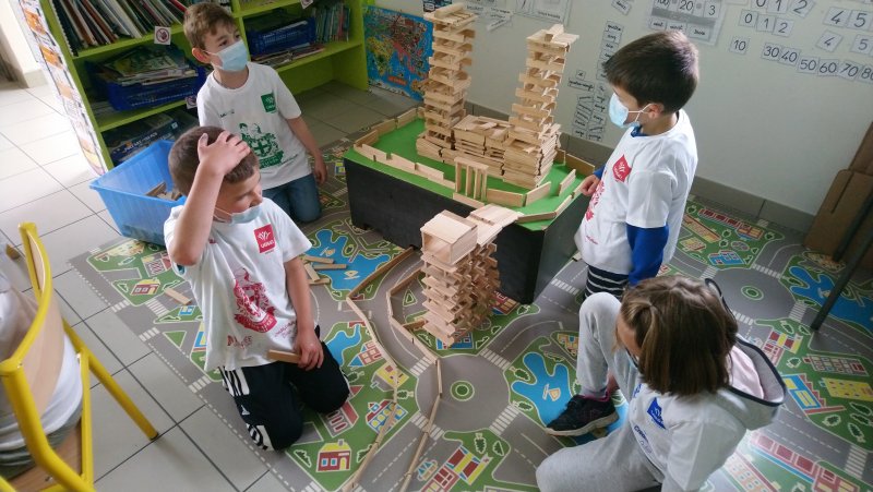 • Premier défi : par petit groupe, construire petit à petit, en se relayant, le plus beau des châteaux collectif à l’aide de KAPLA et décorer notre marque page prénom à la manière de l’enluminure.