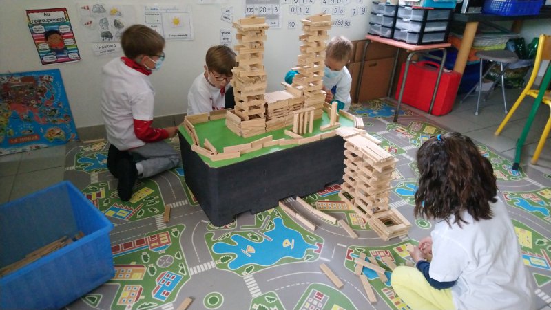 • Premier défi : par petit groupe, construire petit à petit, en se relayant, le plus beau des châteaux collectif à l’aide de KAPLA et décorer notre marque page prénom à la manière de l’enluminure.