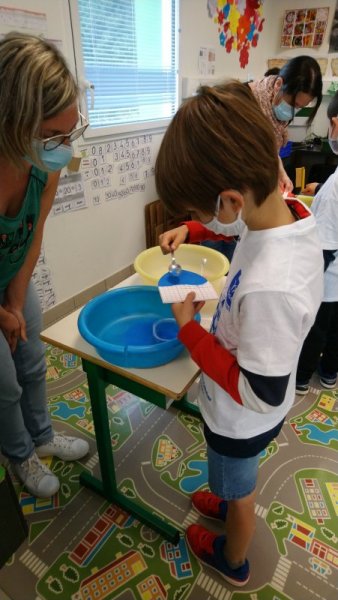 • Deuxième activité : après avoir réalisé le blason collectif de notre classe durant l’année scolaire, il était temps de pouvoir finaliser son propre blason à l’aide de sable coloré.
