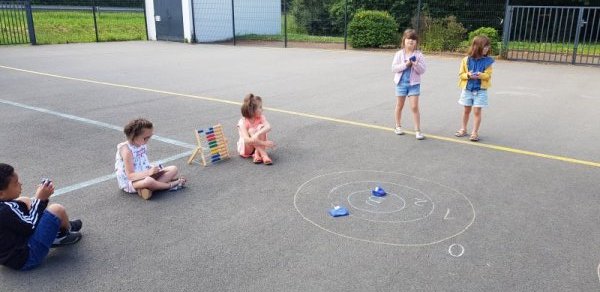 La cible, c’est un jeu pour apprendre à compter. Il faut tracer des ronds avec une craie et écrire les chiffres 1, 2 et 3 dans les ronds.