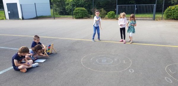La cible, c’est un jeu pour apprendre à compter. Il faut tracer des ronds avec une craie et écrire les chiffres 1, 2 et 3 dans les ronds.