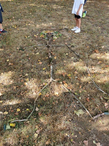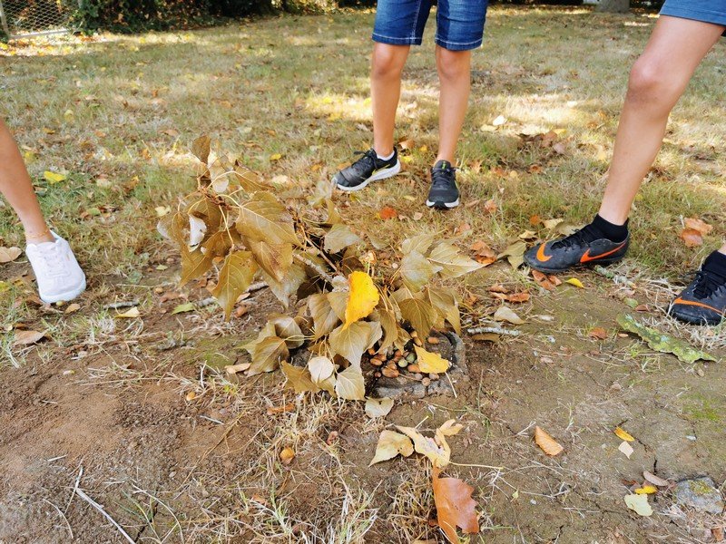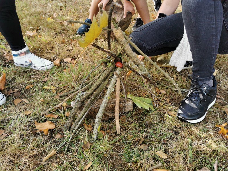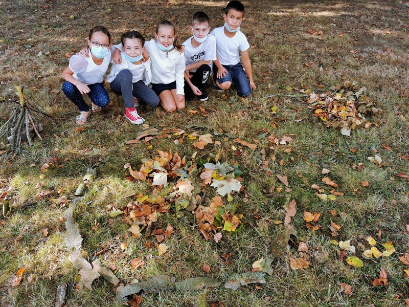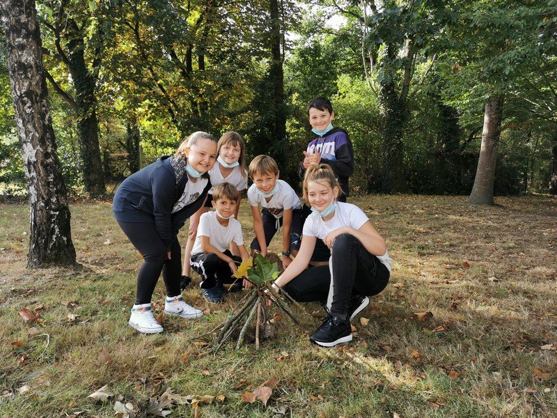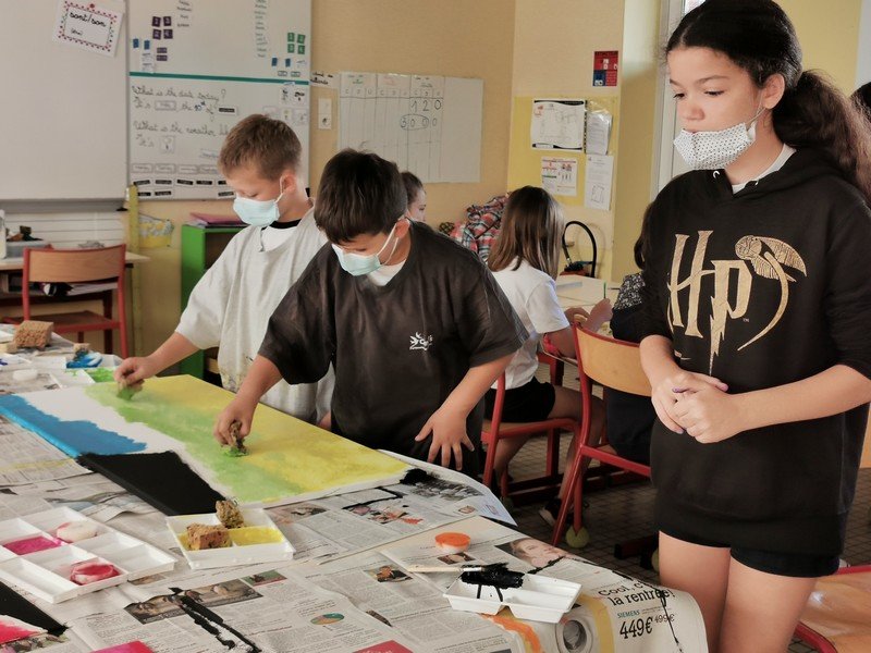 Les élèves ont pu laisser leur empreinte sur une toile. Puis, par groupe, l’objectif était de réaliser, dans l’espace vert, une oeuvre “Land Art” avec des éléments de la nature.