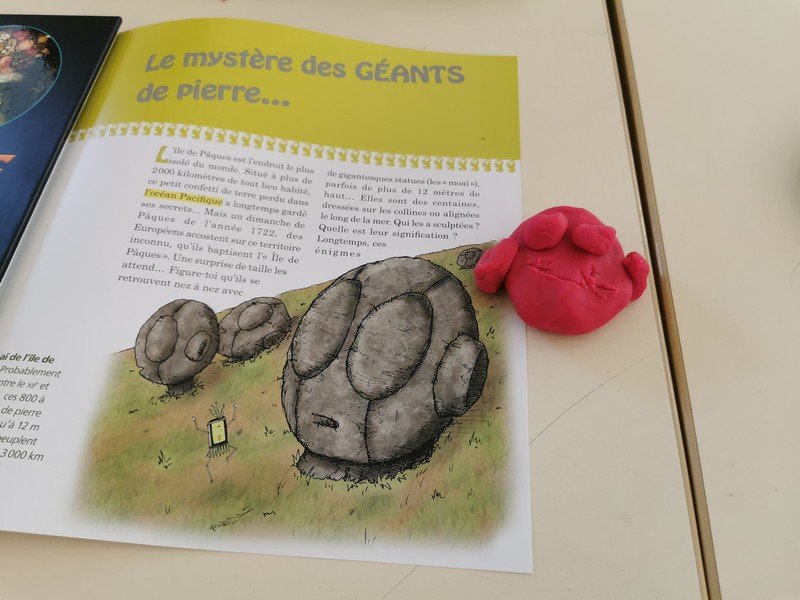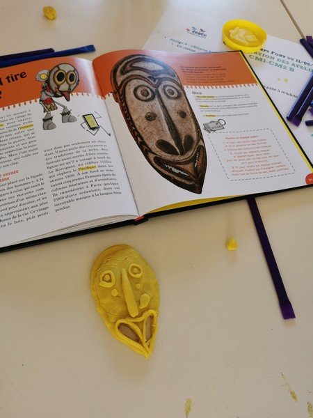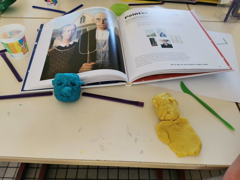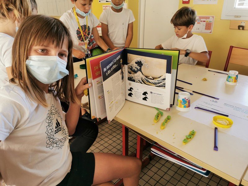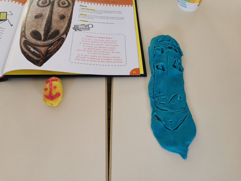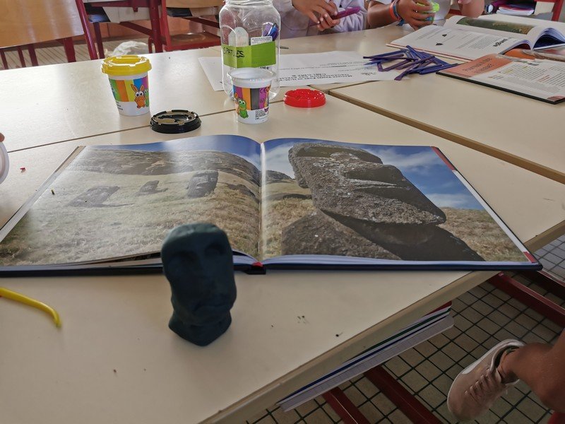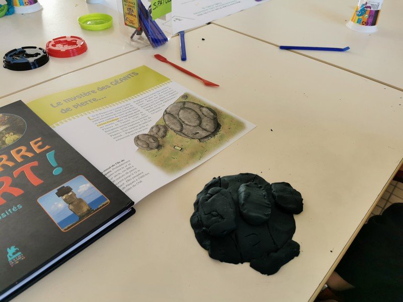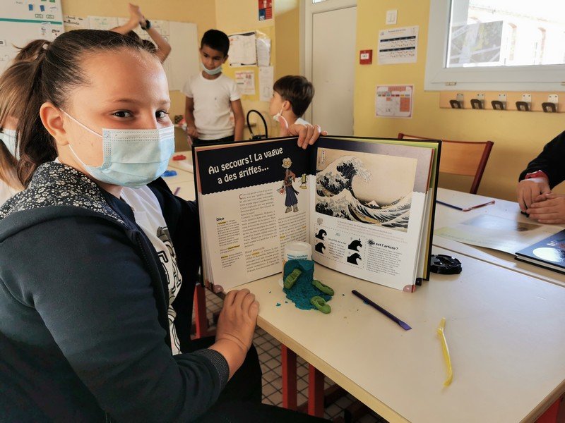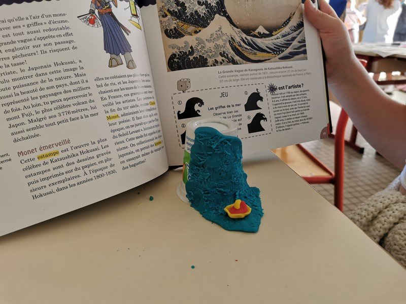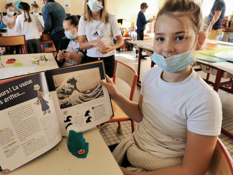 Pour cet atelier, les élèves devaient d’abord choisir une oeuvre dans un livre d’art, et tenter de la reproduire grâce à de la pâte à modeler. Les statues de l’ïle de Pâques, les masques africains, la vague d’Hokusai ont notamment été découverts…