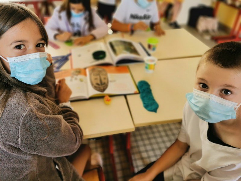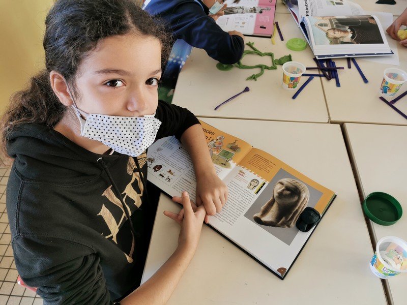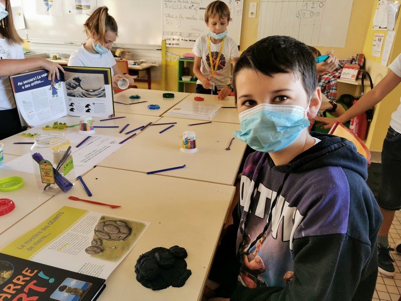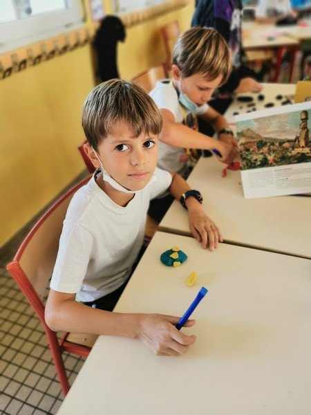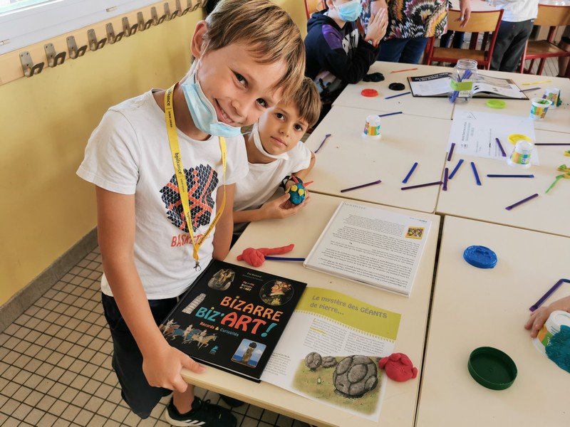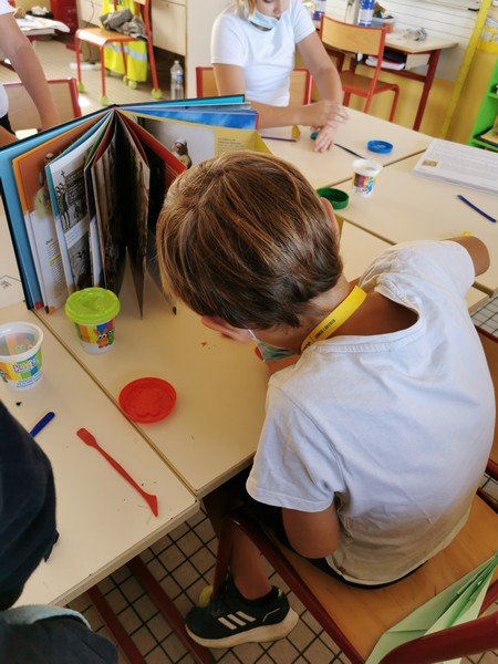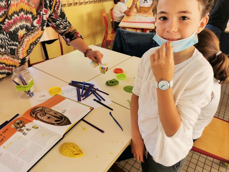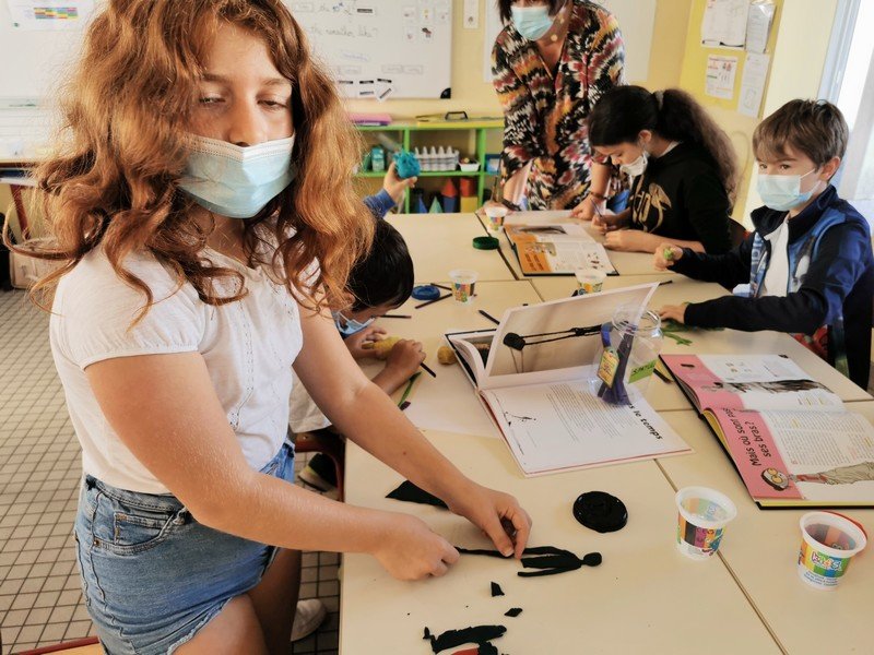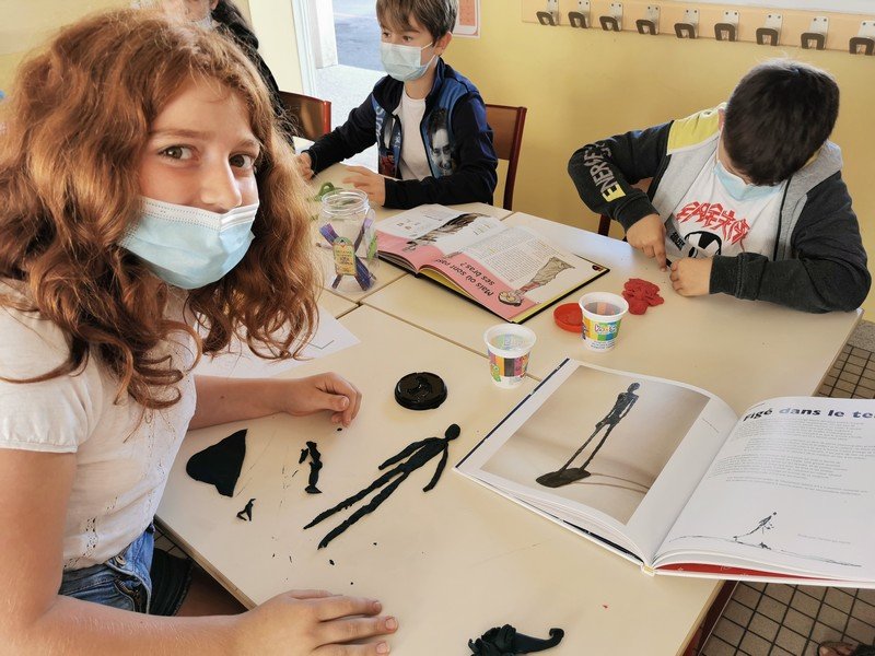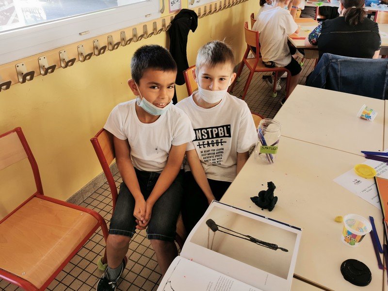Pour cet atelier, les élèves devaient d’abord choisir une oeuvre dans un livre d’art, et tenter de la reproduire grâce à de la pâte à modeler. Les statues de l’ïle de Pâques, les masques africains, la vague d’Hokusai ont notamment été découverts…