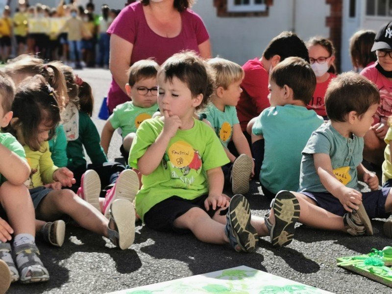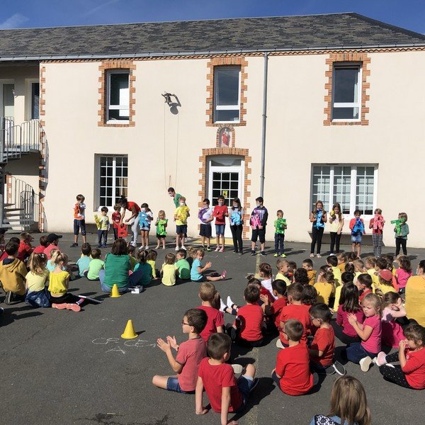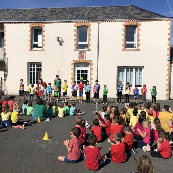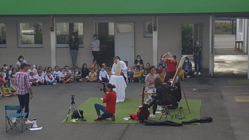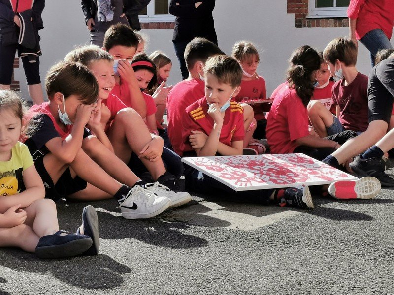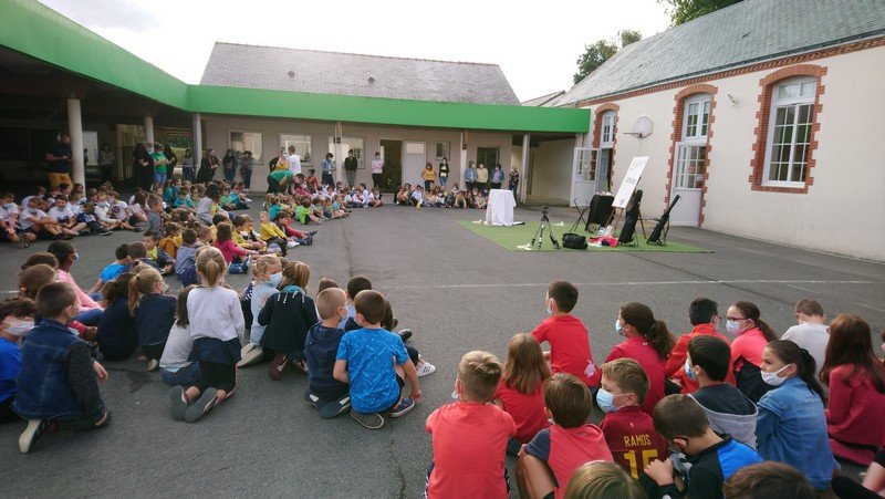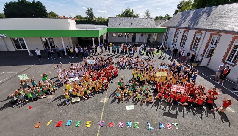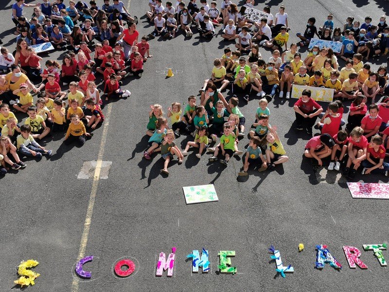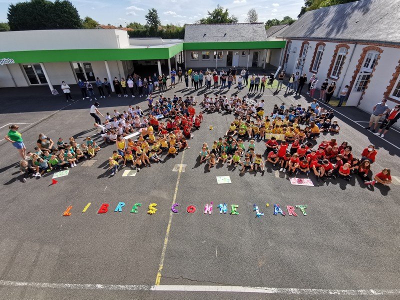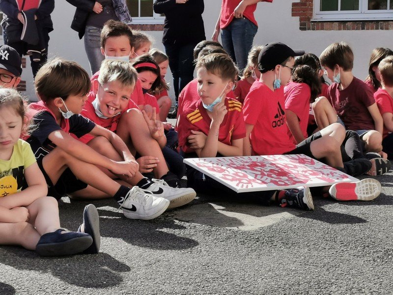 Comme d’habitude, la cloche a sonné à 9h00 mais … cette matinée particulière a débuté par un rassemblement de tous les élèves de l’école sur la cour élémentaire pour découvrir le thème de cette année scolaire 2021-2022.