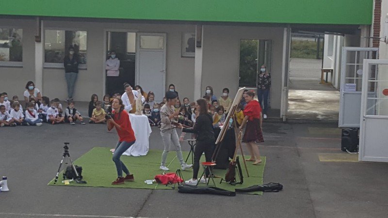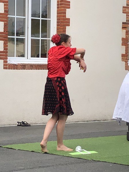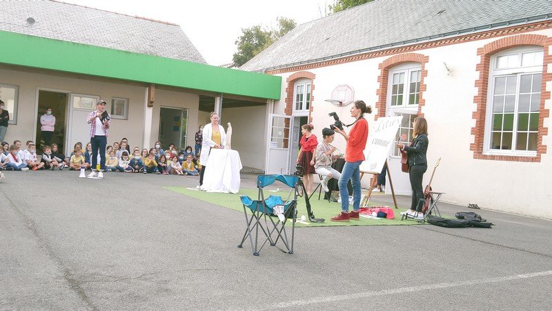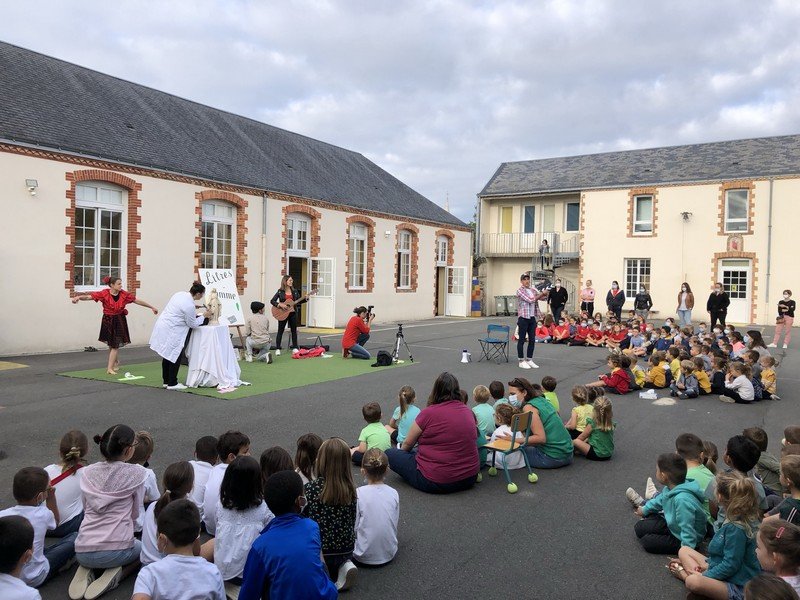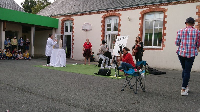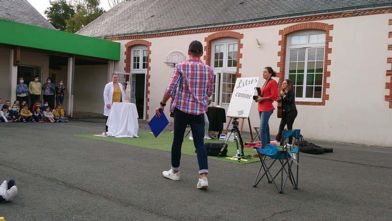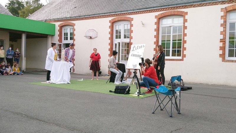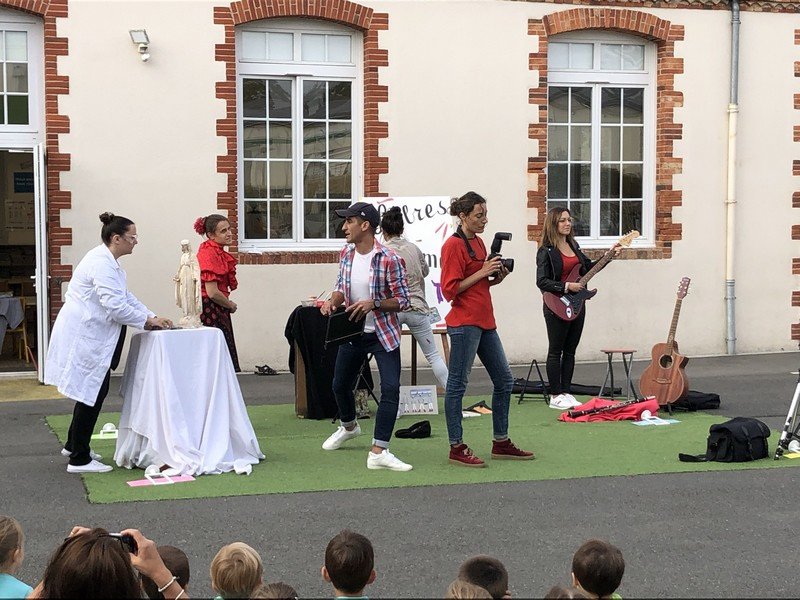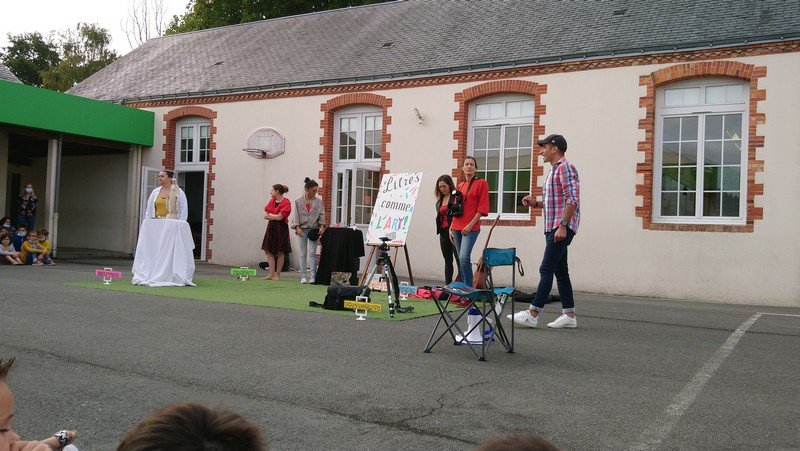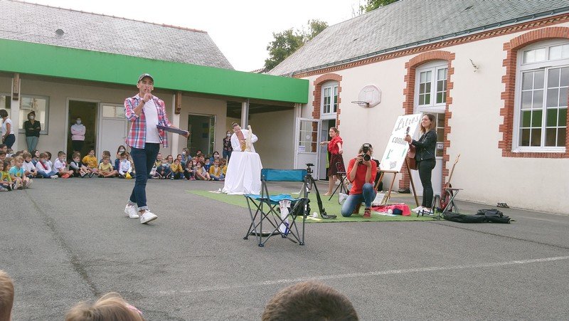 Une scène était installée sur la cour… “Ouvrez bien grands vos yeux ! Place aux acteurs !!!”