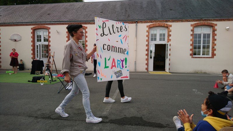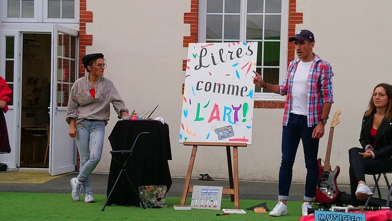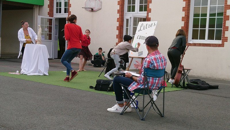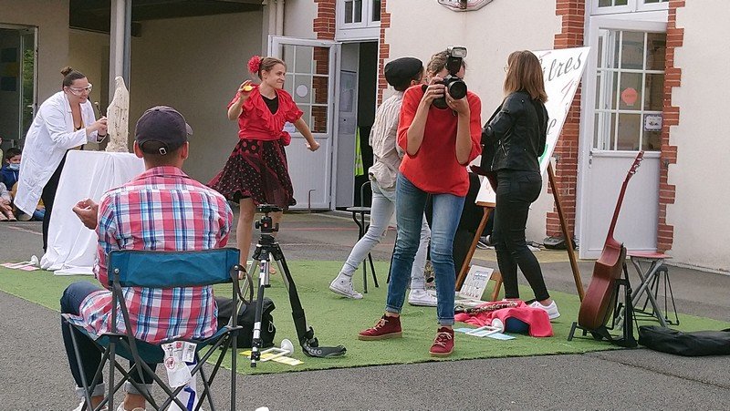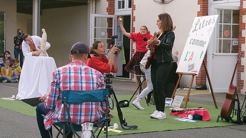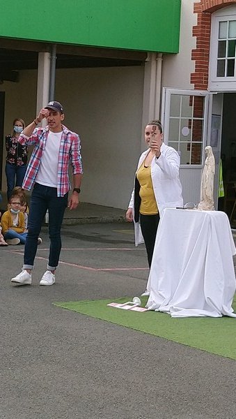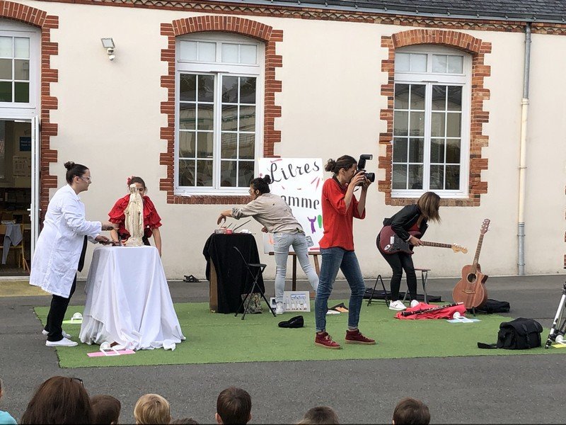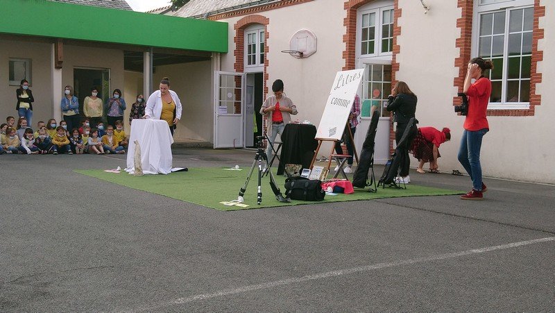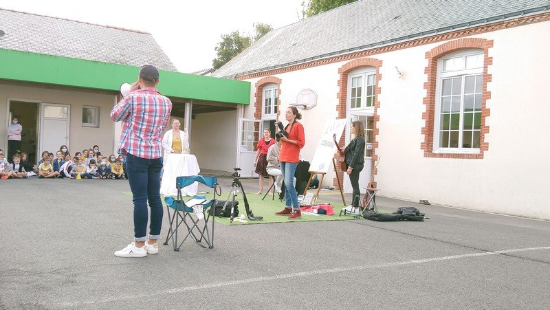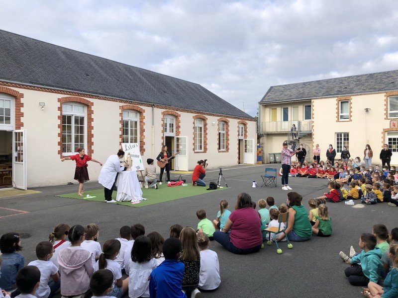 Une scène était installée sur la cour… “Ouvrez bien grands vos yeux ! Place aux acteurs !!!”