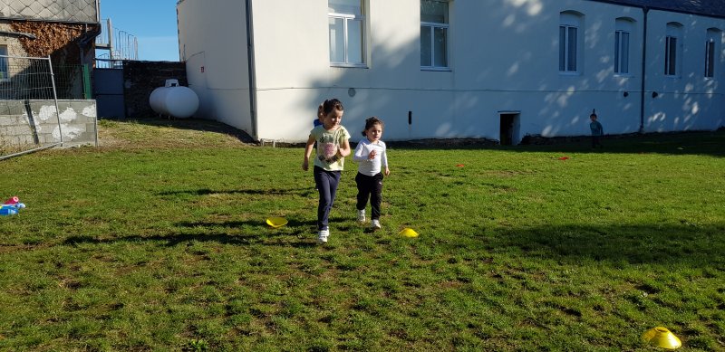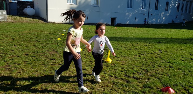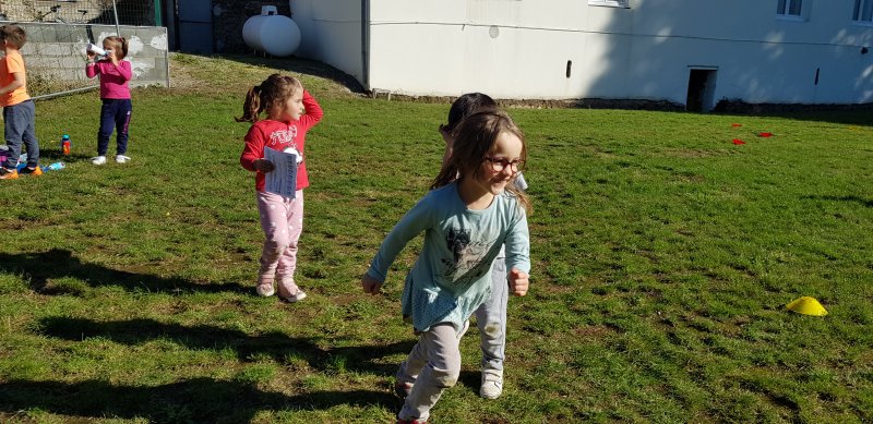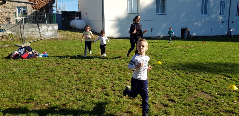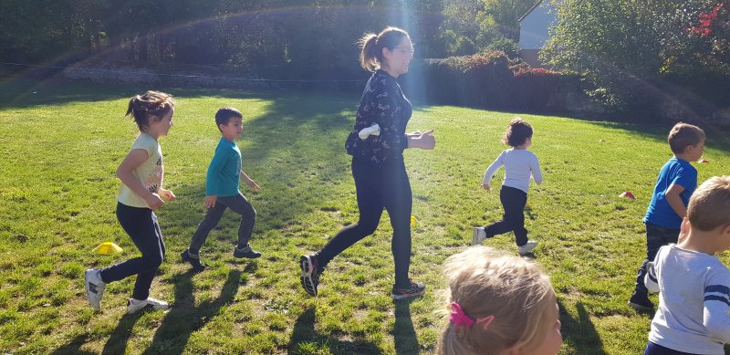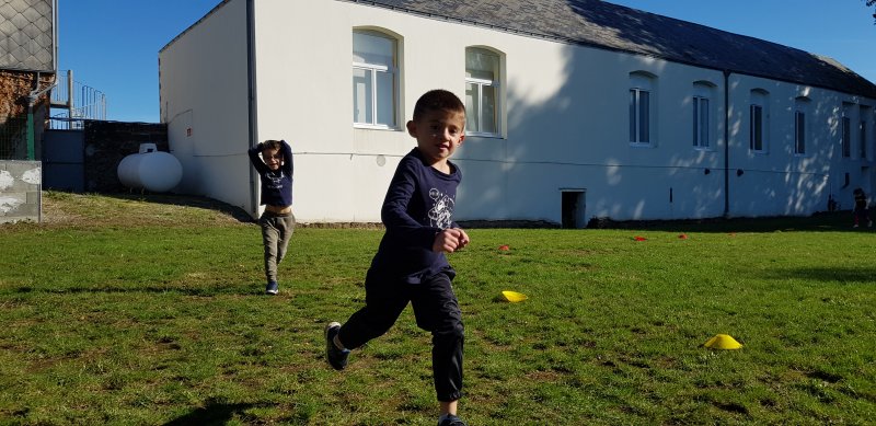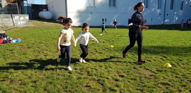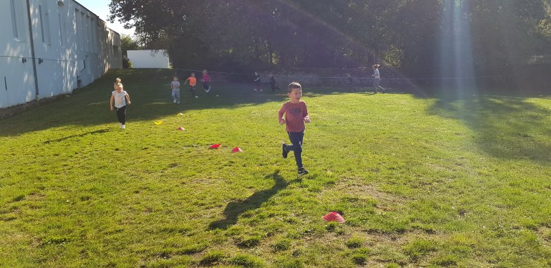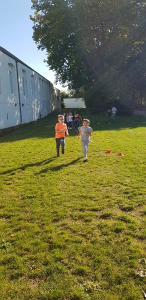 - Lorsque la course commence, chaque observateur place autant de gommettes que de minutes passées à courir. On s’encourage, on s’applaudit et les enfants sont très résistants : tout le monde a couru entre 5 et 8 minutes !