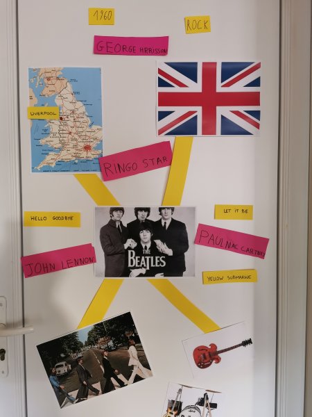 Dans le cadre du parcours d’éducation artistique et culturelle, les CM1-CM2 B ont été plongés dans l’univers des Beatles.