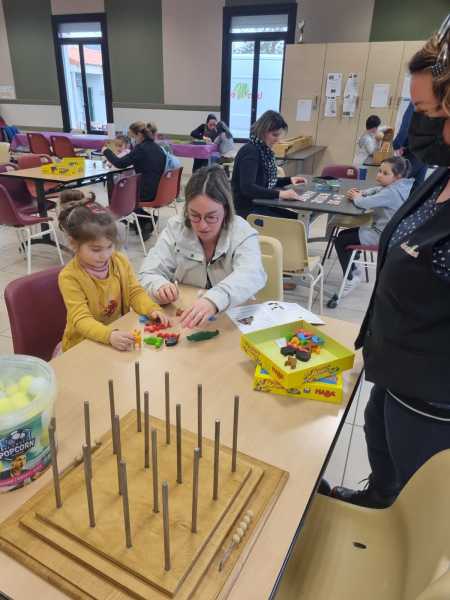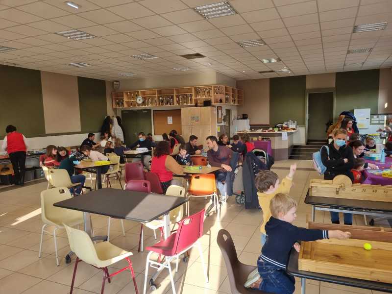 De 14h à 18h, les familles pouvaient aller de table en table afin d’essayer des jeux en bois géants ou l’un des nombreux de société mis à disposition. Maud était présente tout au long de l’après-midi pour accompagner petits et grands dans la découverte de nouveaux jeux.
