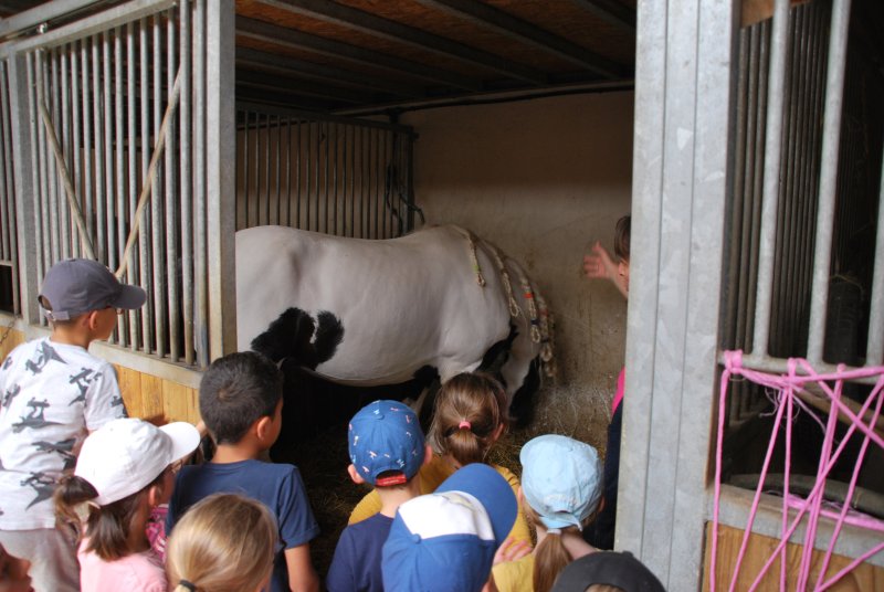 Après le pique-nique, les enfants ont pu explorer et s’initier aux arts équestres et approcher de plus près les animaux, pour le grand bonheur de certains, avec une certaine appréhension pour d’autres.
