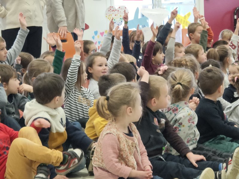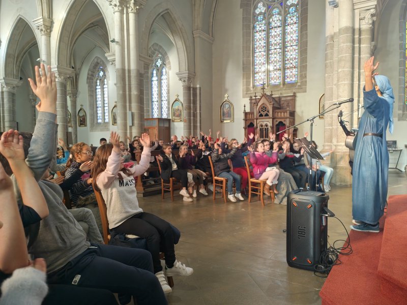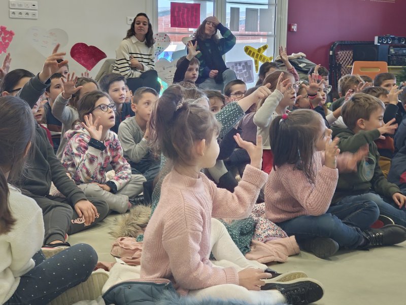 Les élèves se sont pleinement impliqués durant ce temps de partage en gestuant, en chantant, et en posant de nombreuses questions!