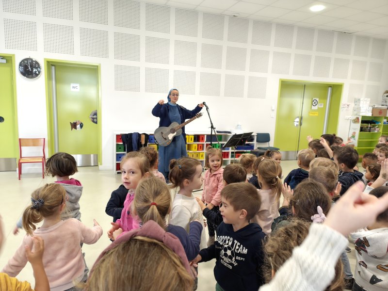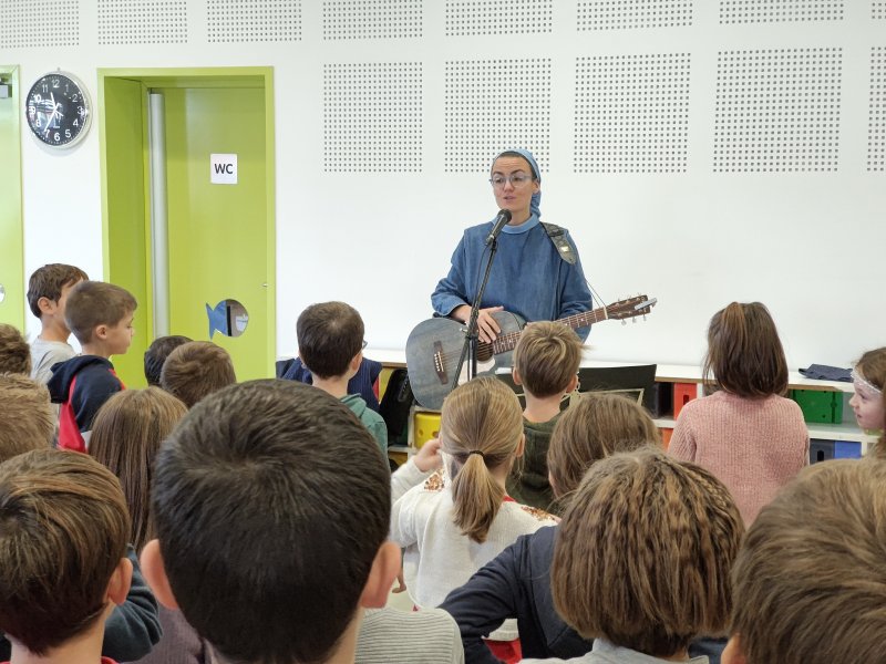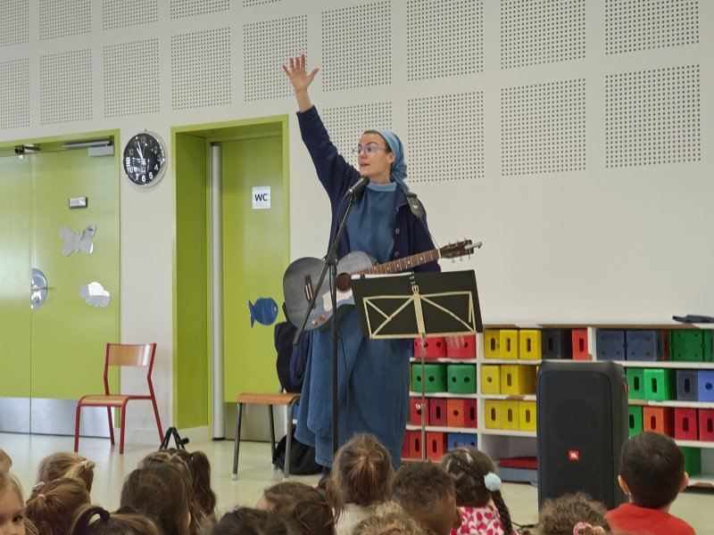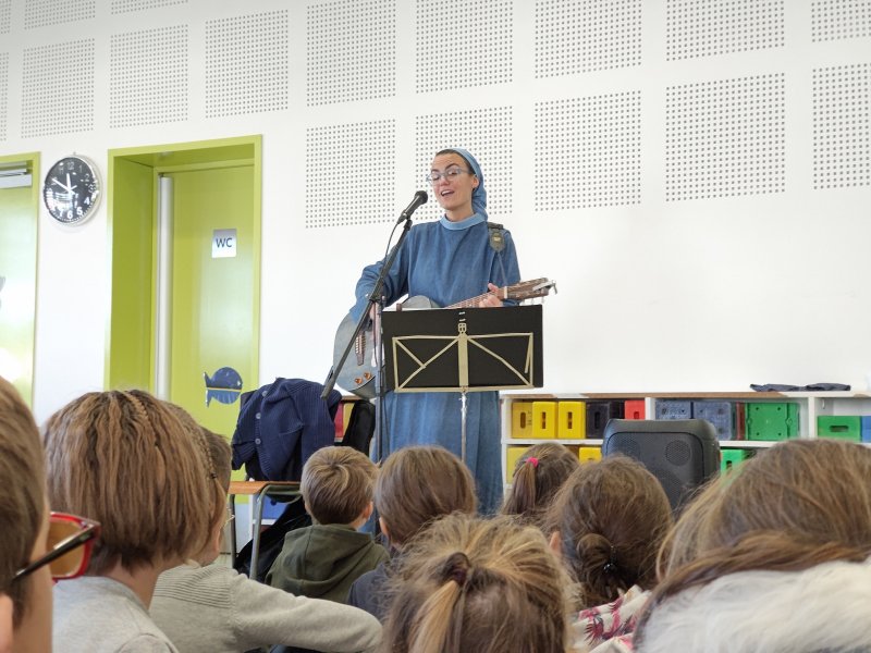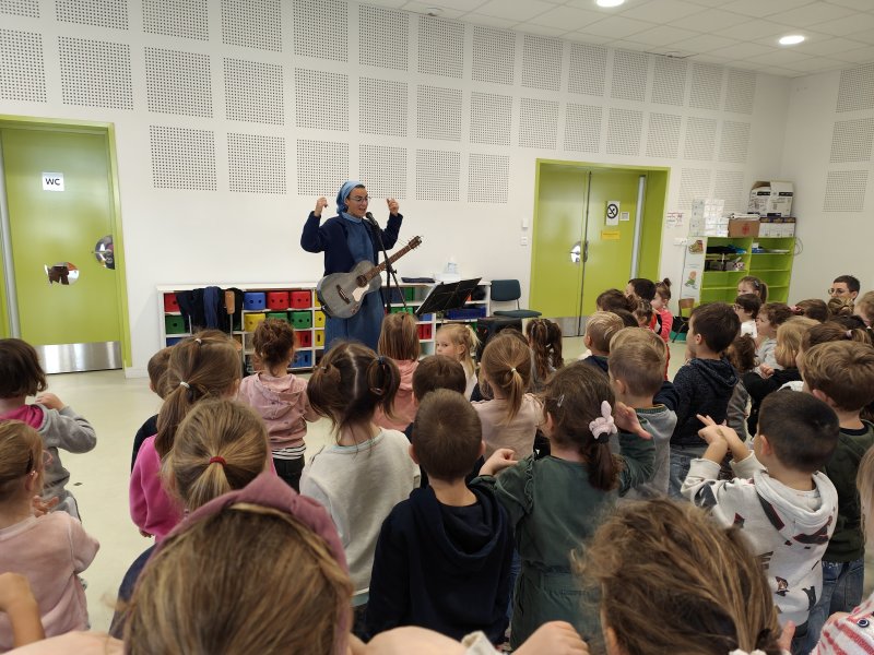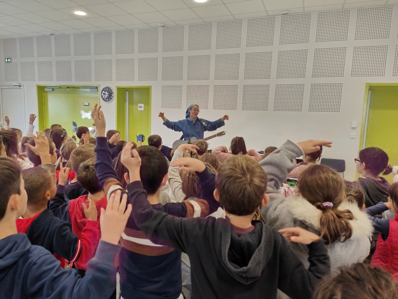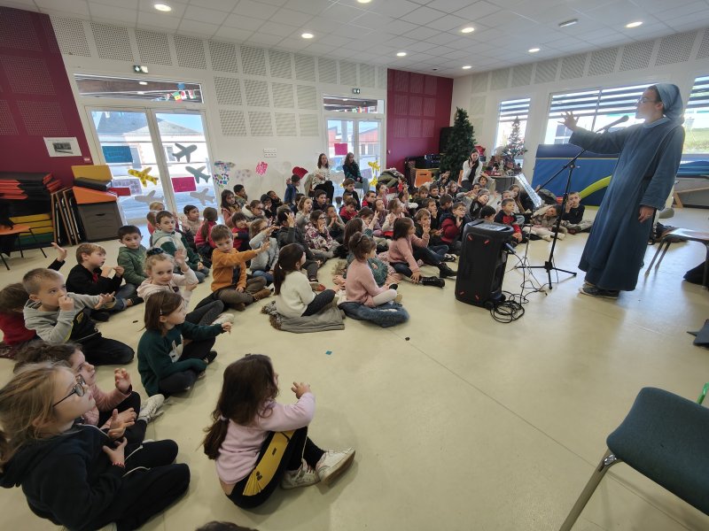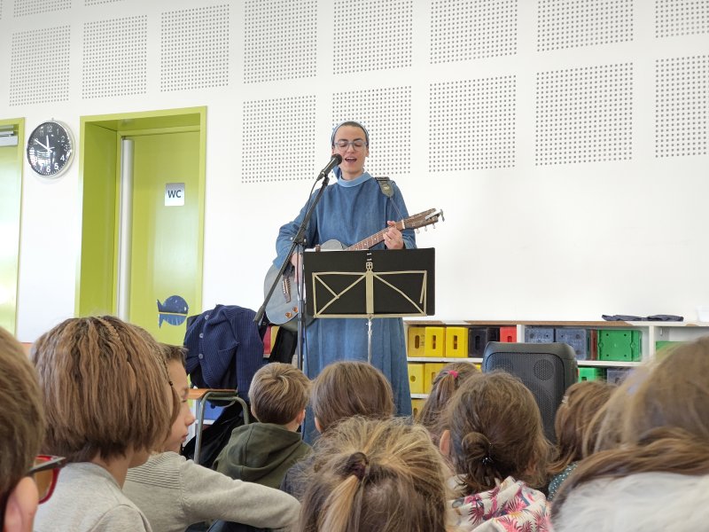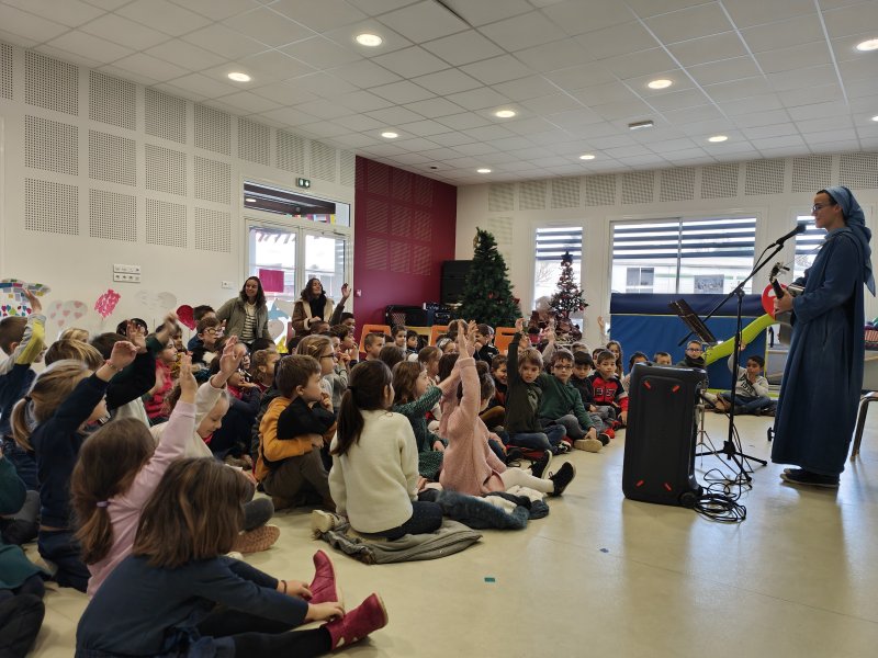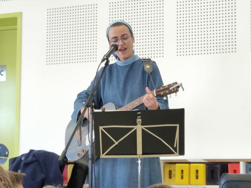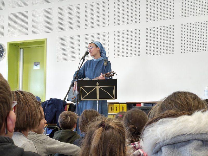 Le mardi 29 novembre 2022, Soeur Agathe est venue à l’école pour chanter avec les élèves de chaque cycle.