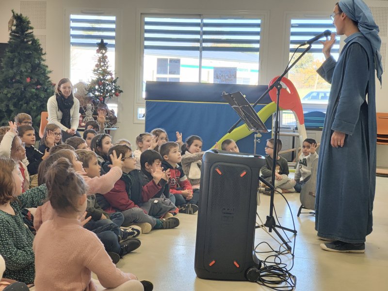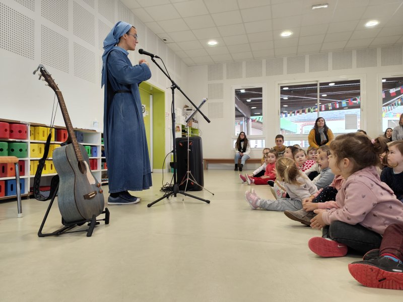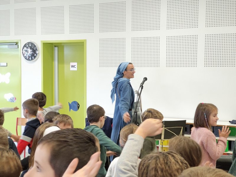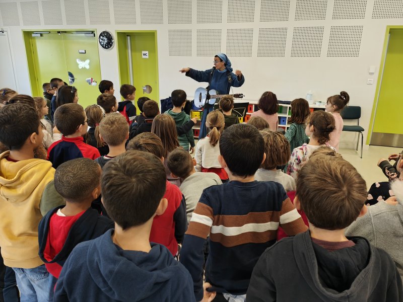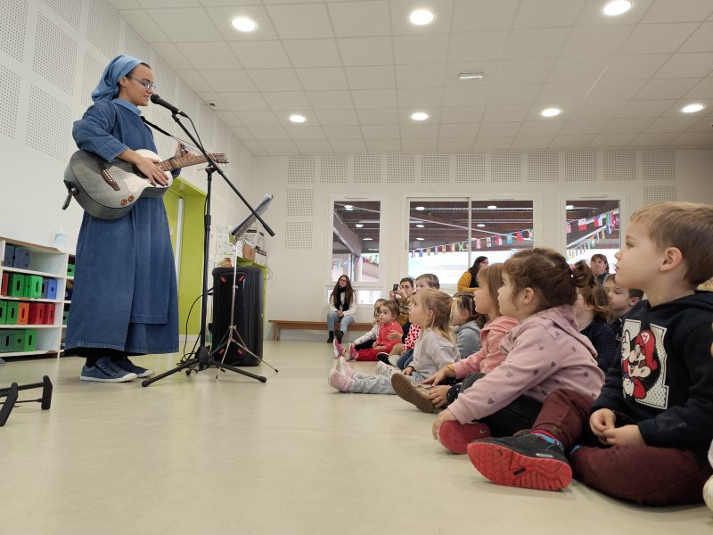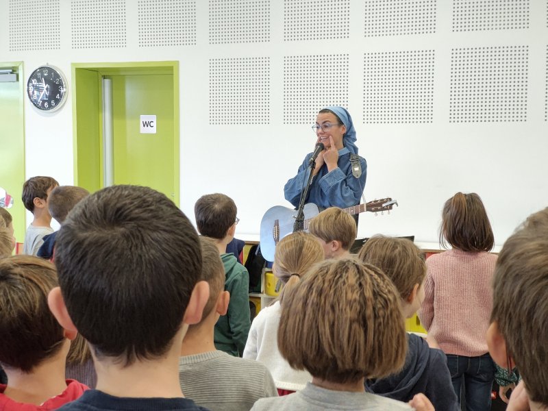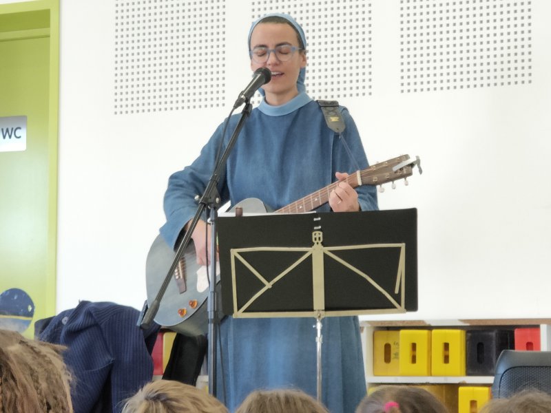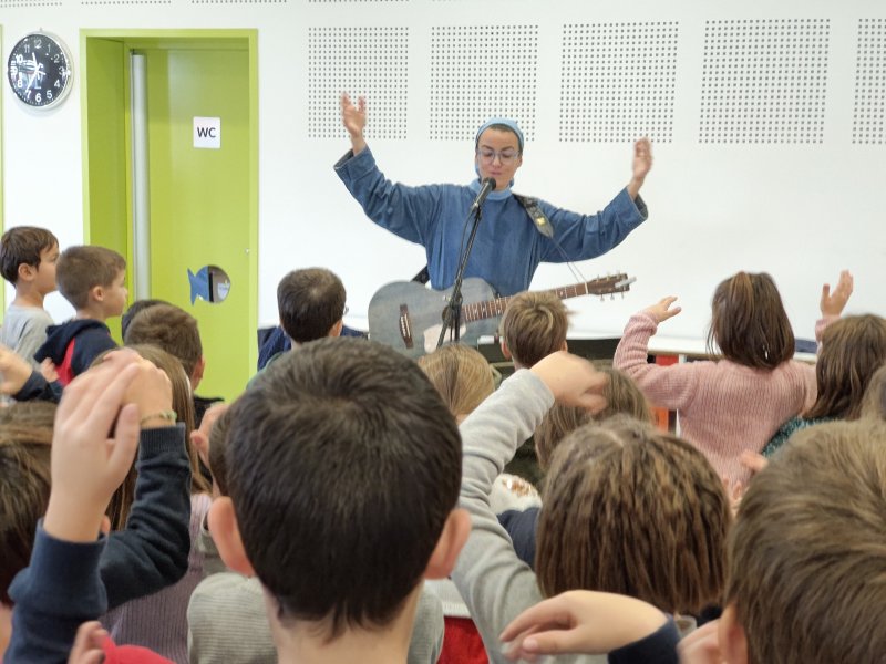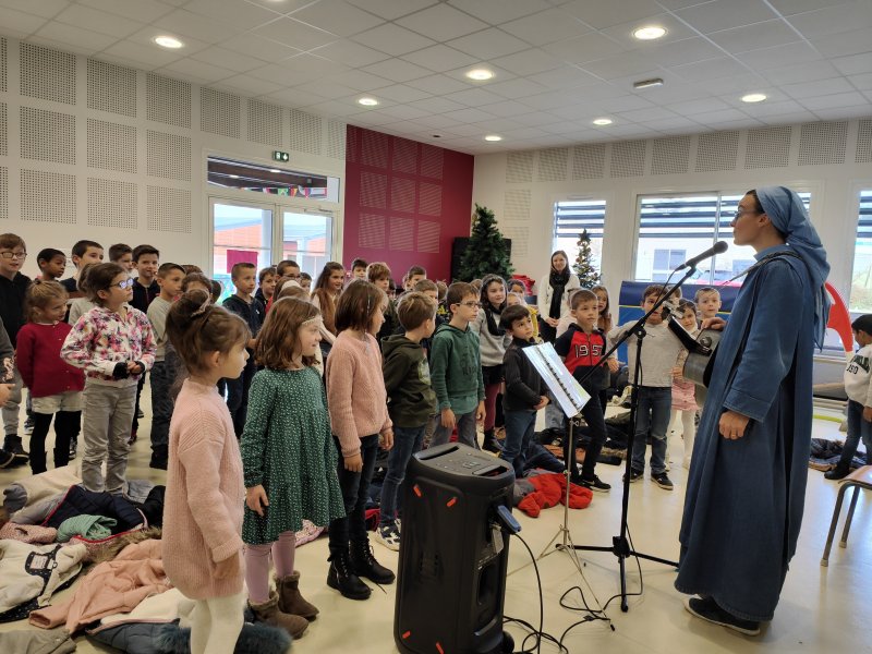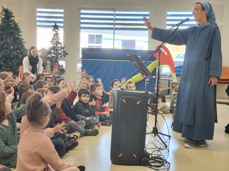 Le mardi 29 novembre 2022, Soeur Agathe est venue à l’école pour chanter avec les élèves de chaque cycle.