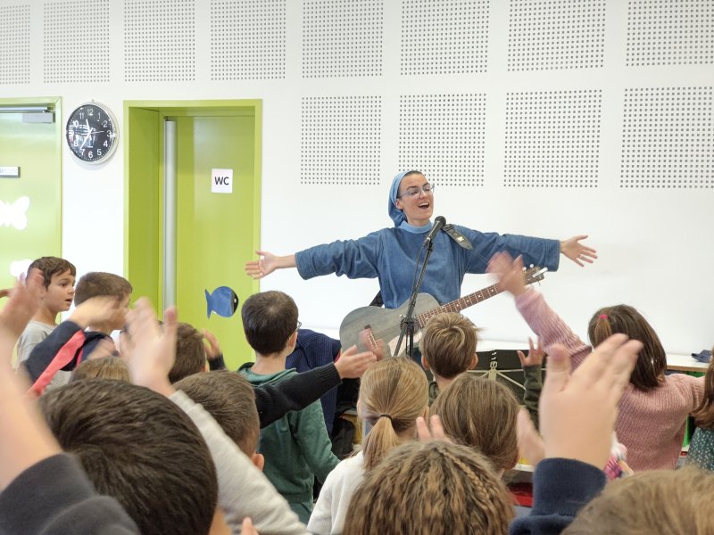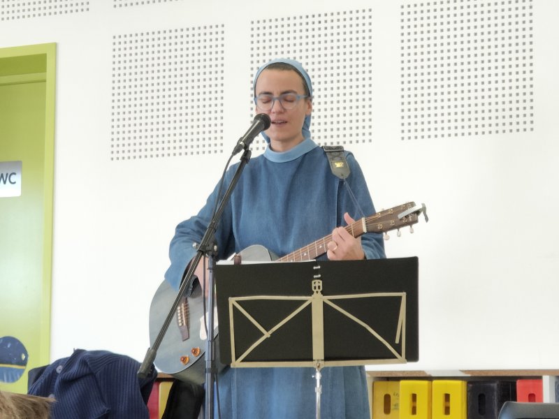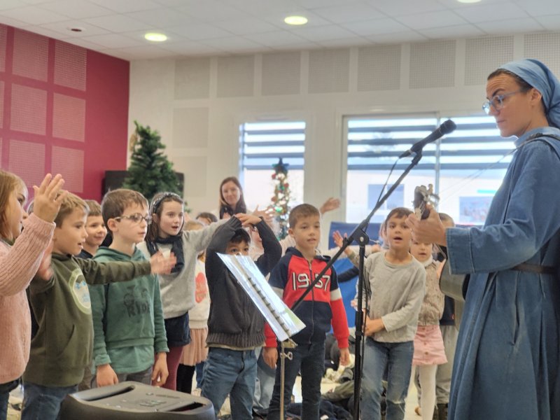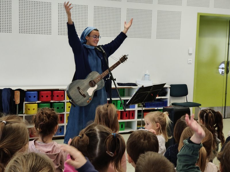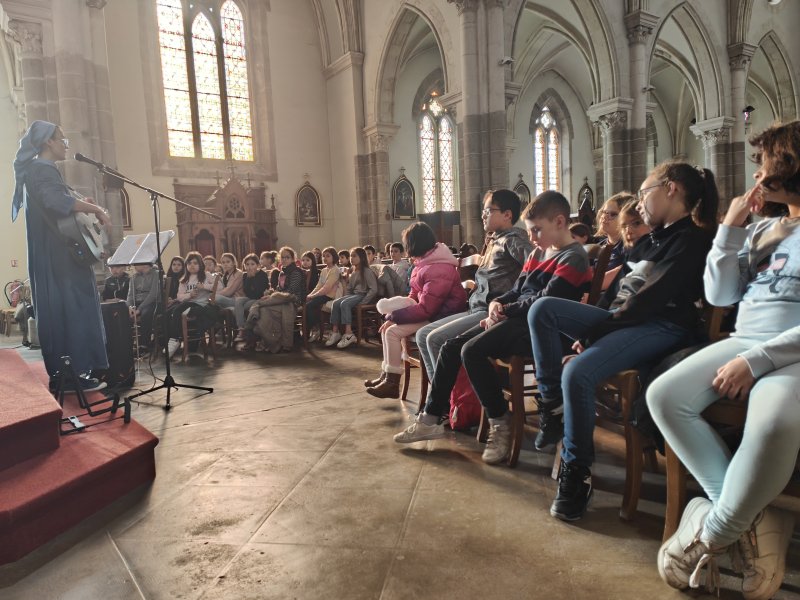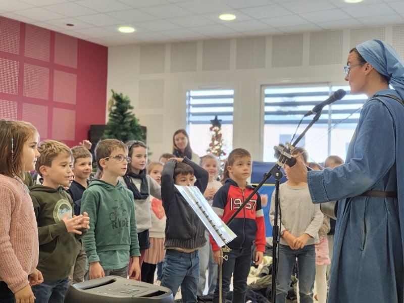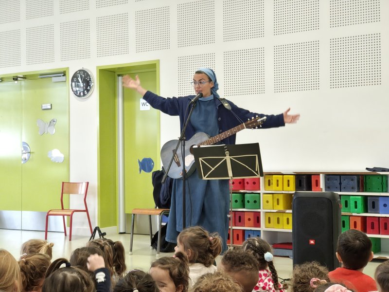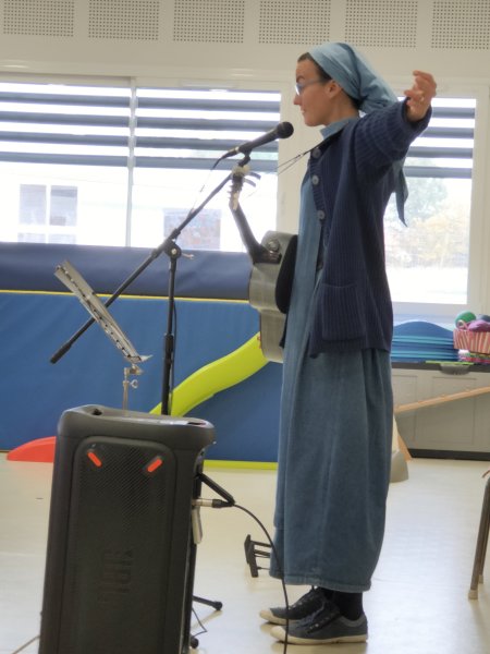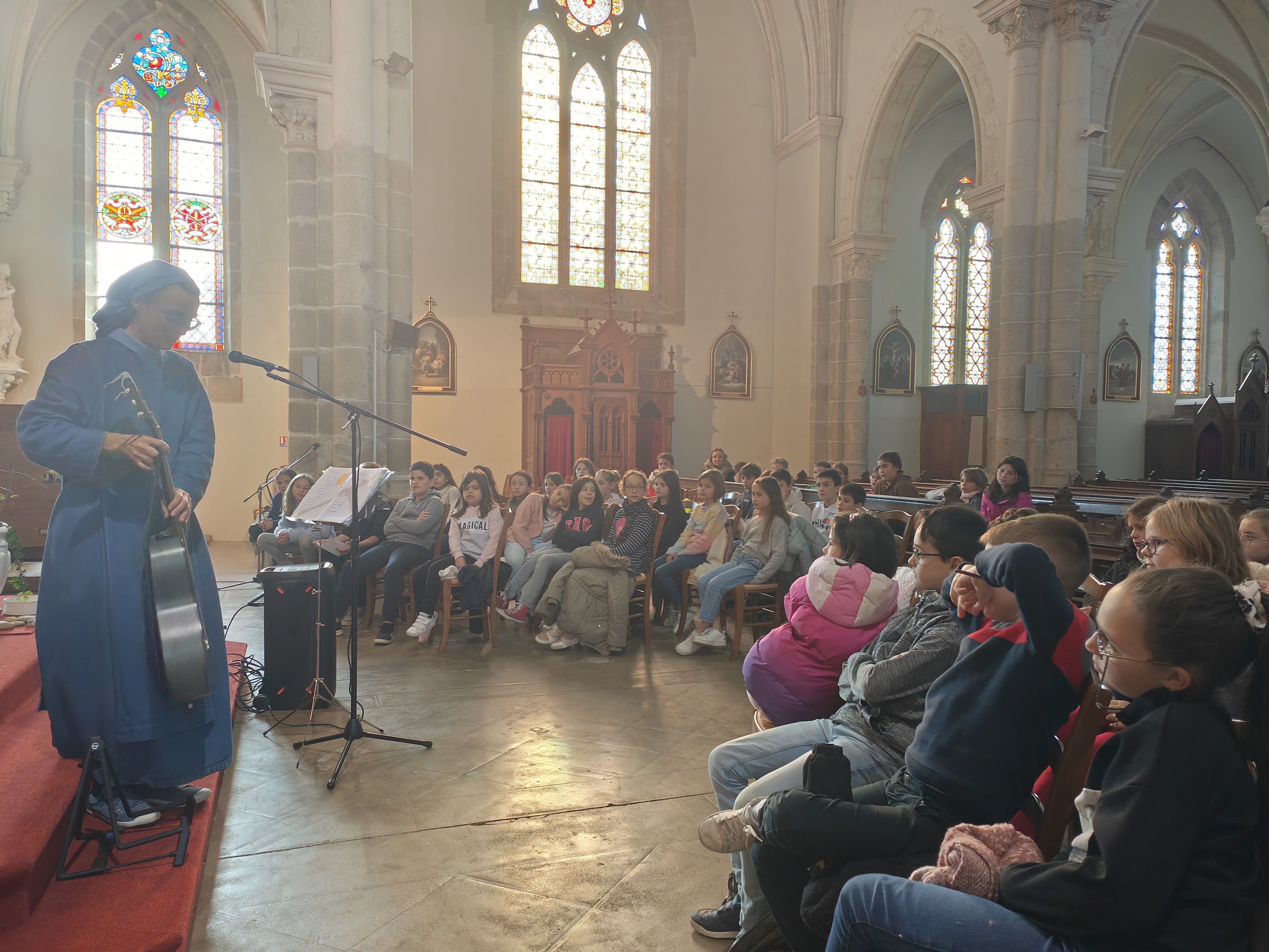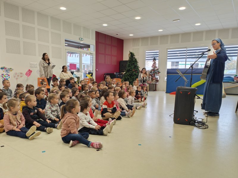 Le mardi 29 novembre 2022, Soeur Agathe est venue à l’école pour chanter avec les élèves de chaque cycle.
