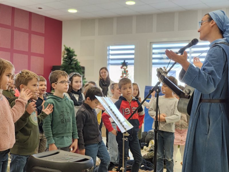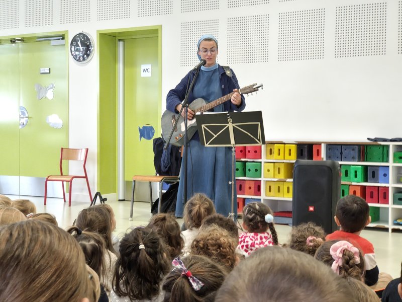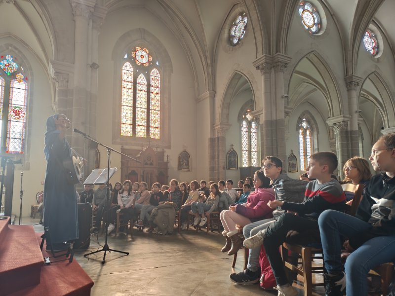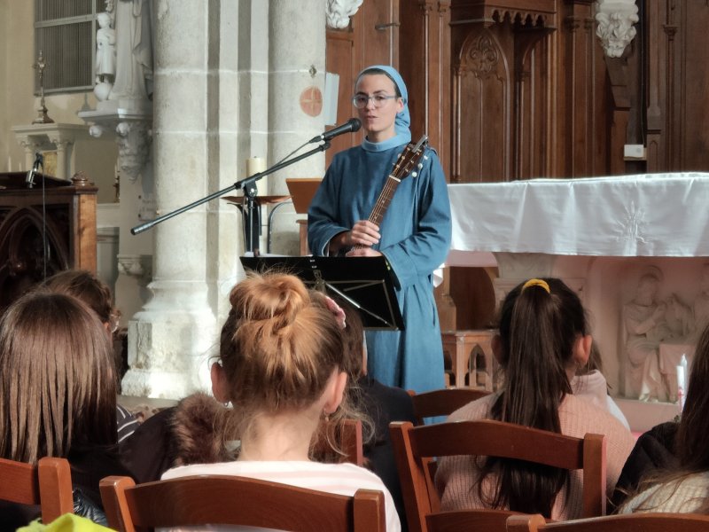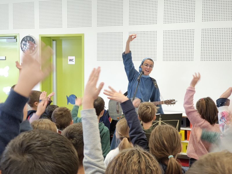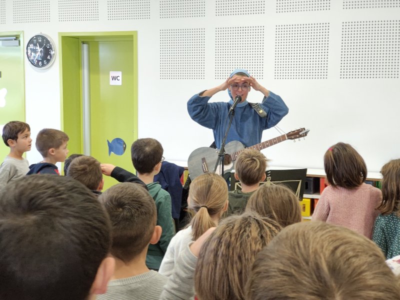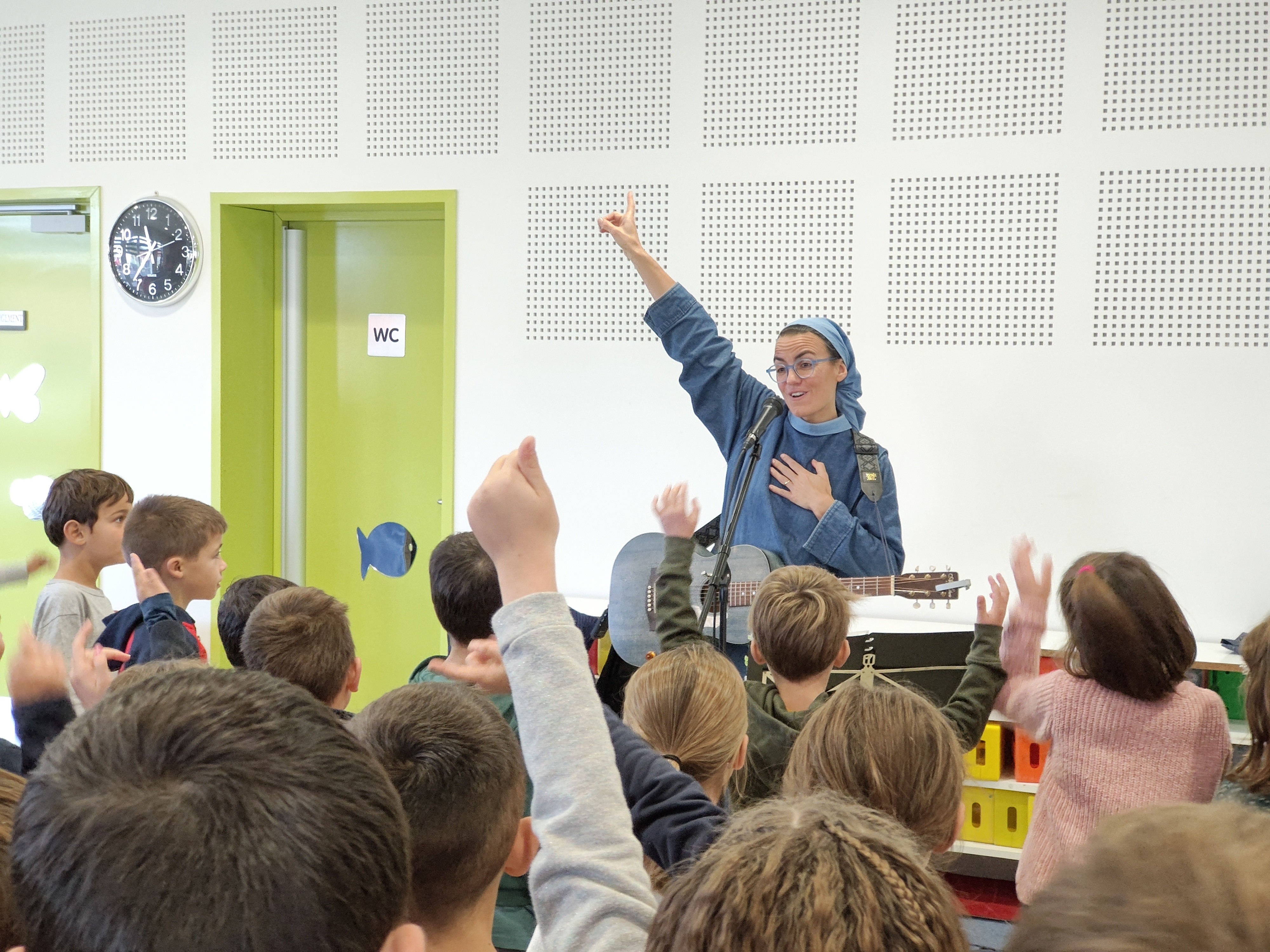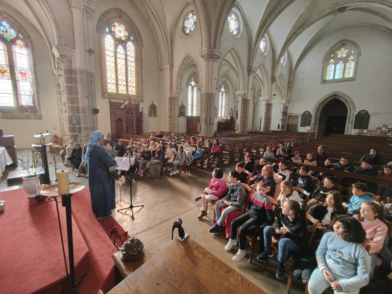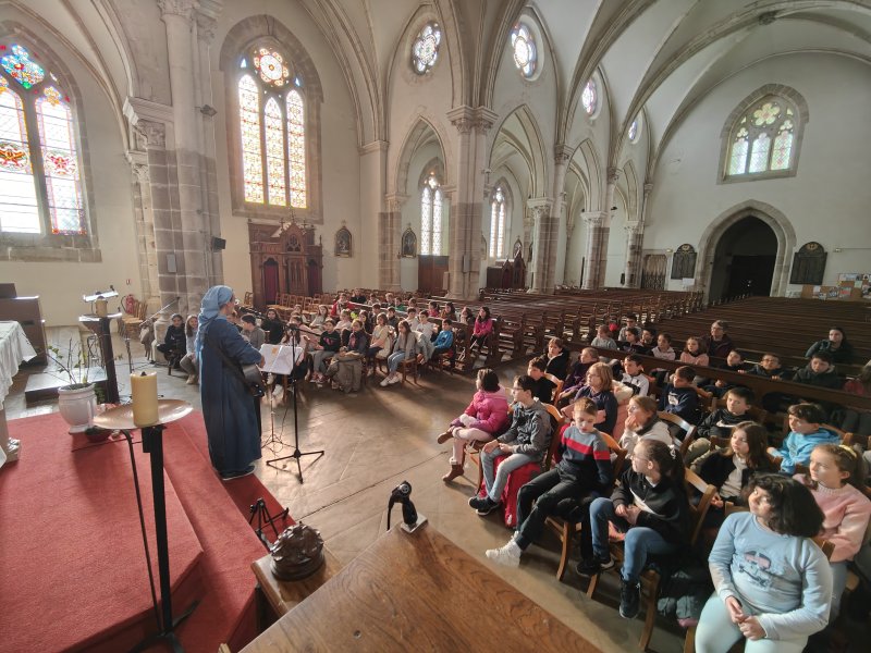 Le mardi 29 novembre 2022, Soeur Agathe est venue à l’école pour chanter avec les élèves de chaque cycle.