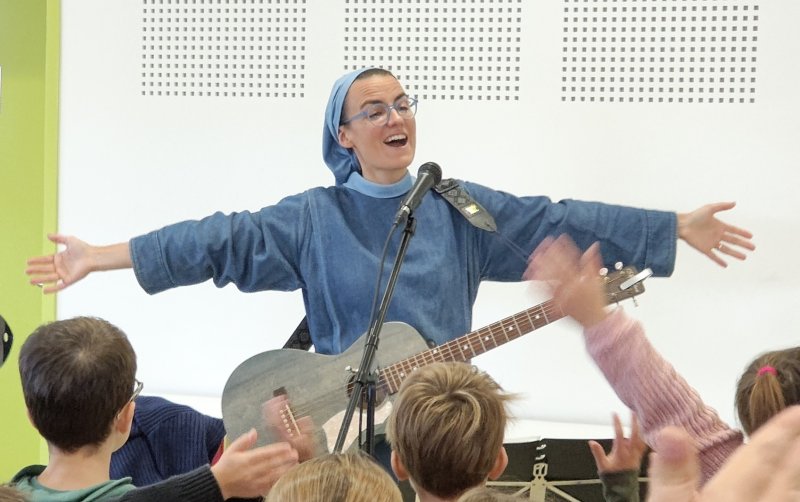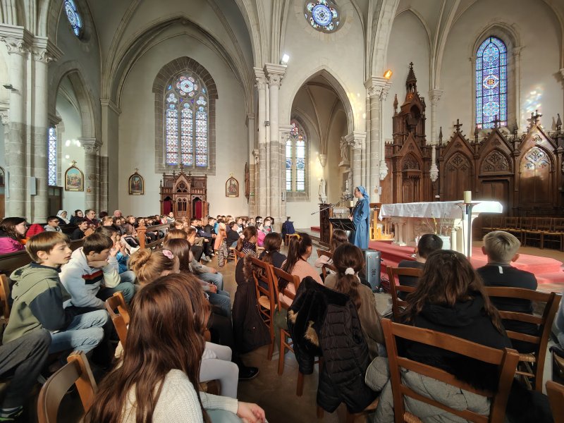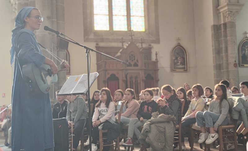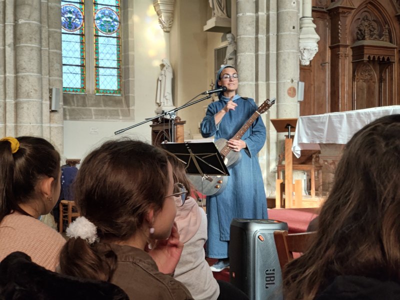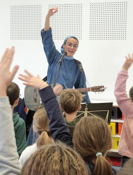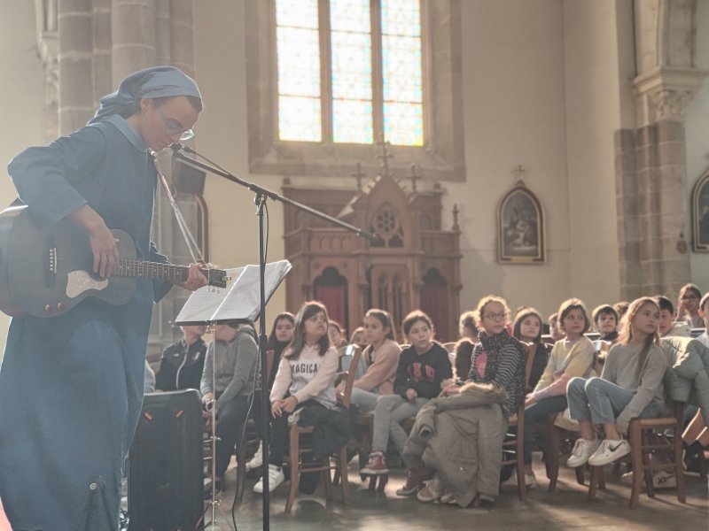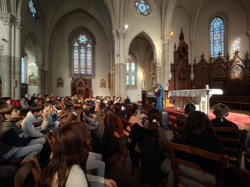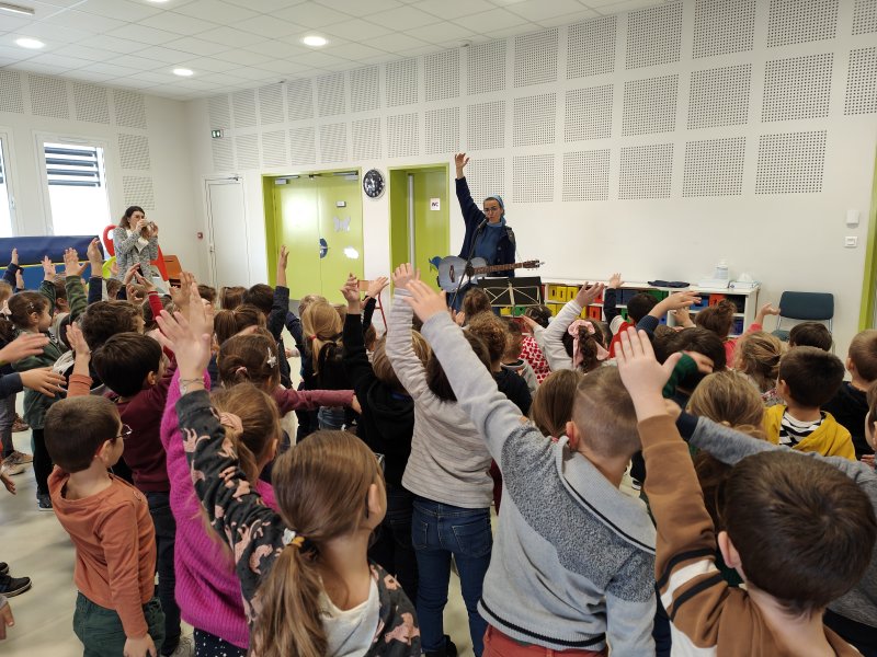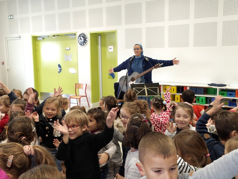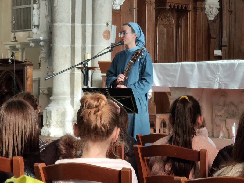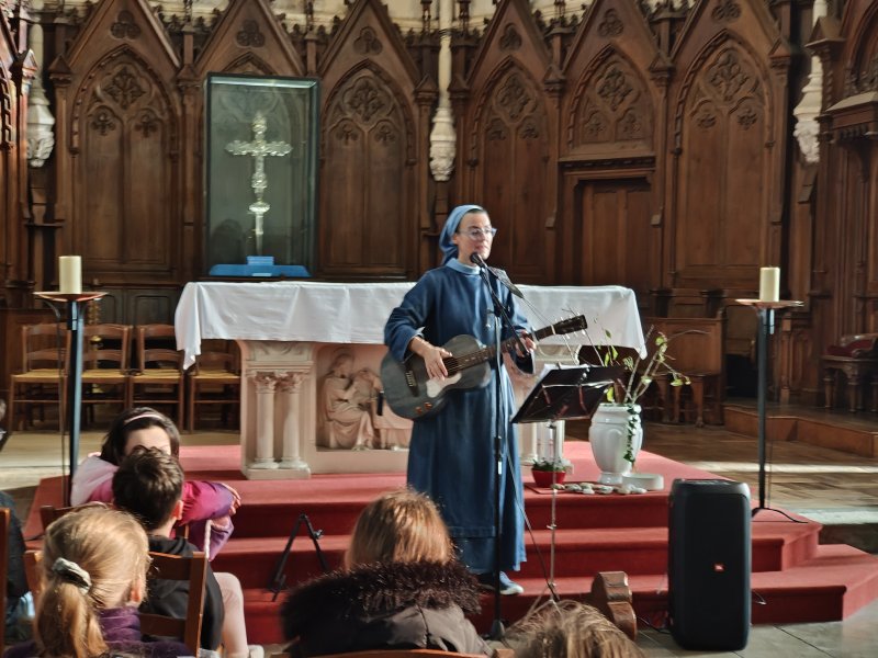 Le mardi 29 novembre 2022, Soeur Agathe est venue à l’école pour chanter avec les élèves de chaque cycle.