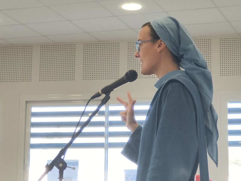 A travers les échanges, ses témoignages et ses chansons, Soeur Agathe nous a permis de partager un moment riche autour de la Vie, l’Amour et l’Espérance. Grâce à ses mots simples, elle a su captiver l’attention pour nous raconter son parcours de vie, et le courage et l’amour que le Seigneur peut transmettre à chacun de nous.
