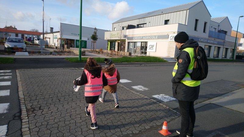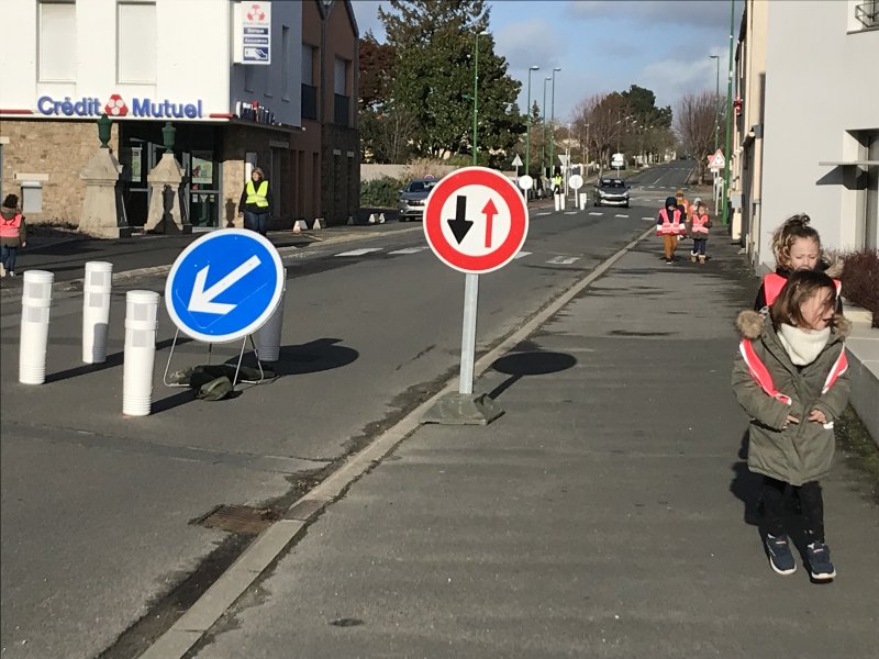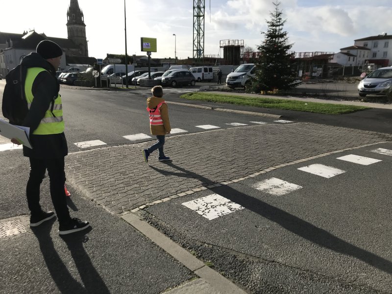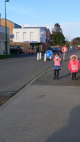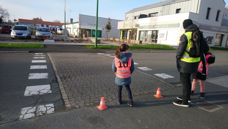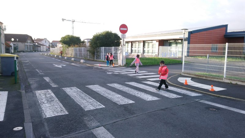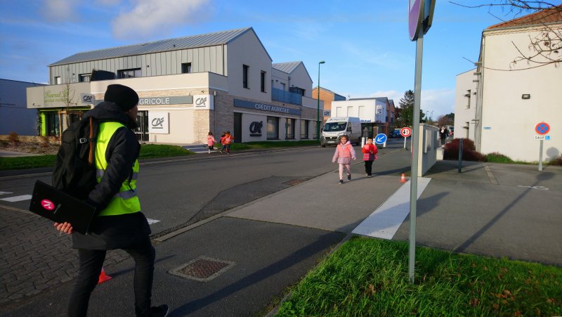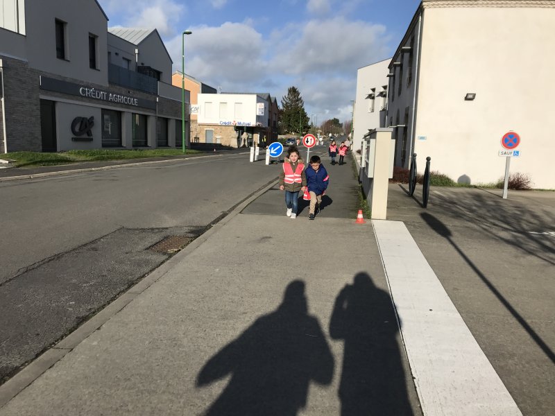 Après une petite partie théorique en classe, cette première séance de mise en pratique à permis en collectif, à deux, puis seul(e) (sous l’œil vigilant de plusieurs adultes) : d’appréhender la circulation dans les rues, de prendre connaissance des points de vigilance à avoir lorsque nous nous déplaçons sur le trottoir en tant que piéton et d’apprendre à traverser sur un passage piéton.