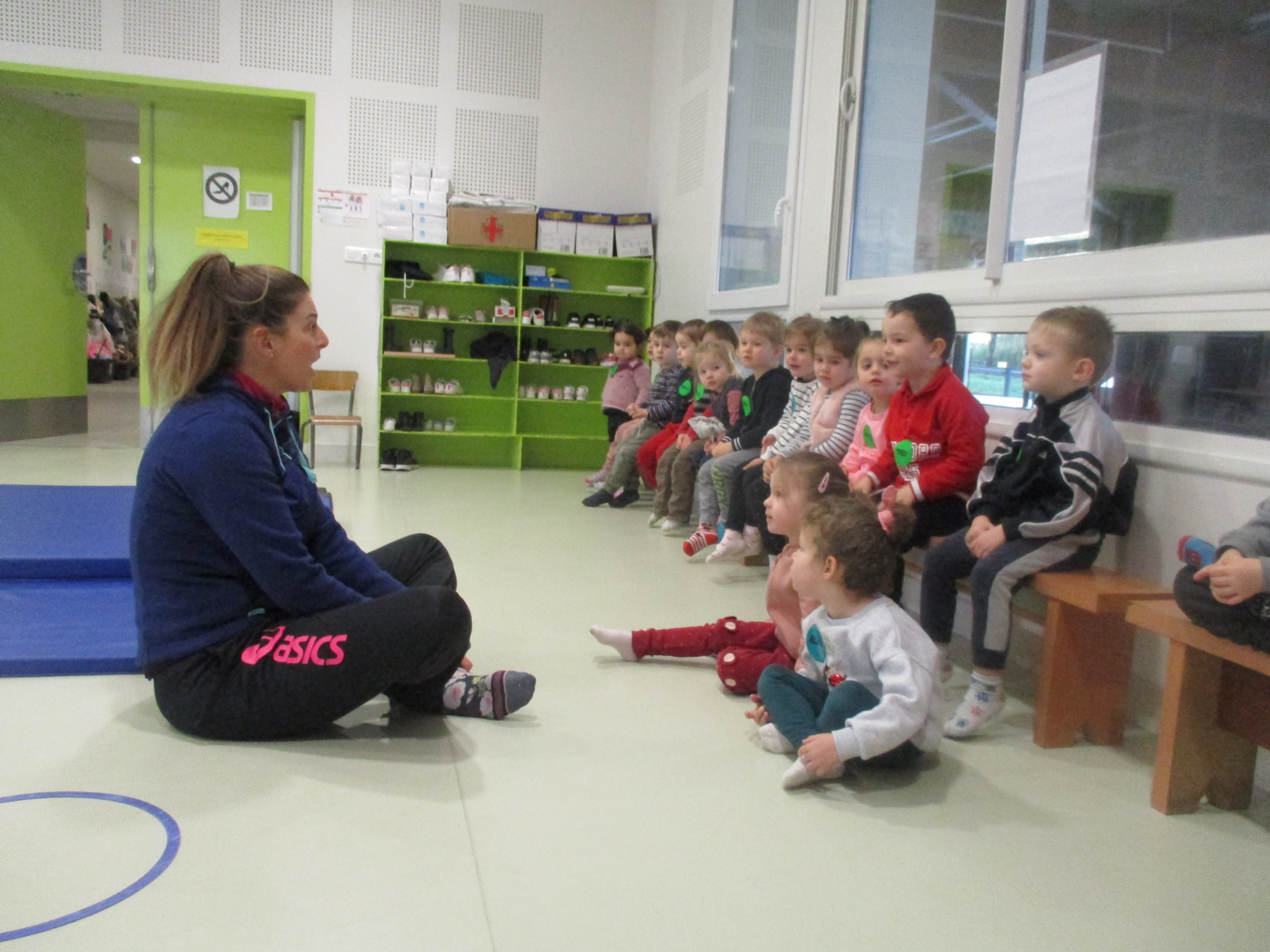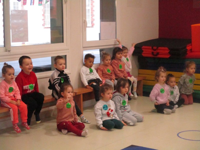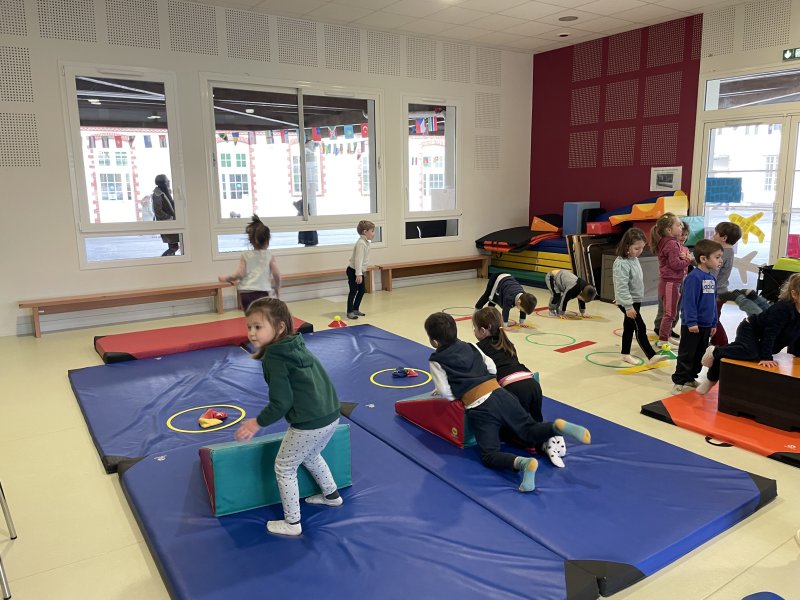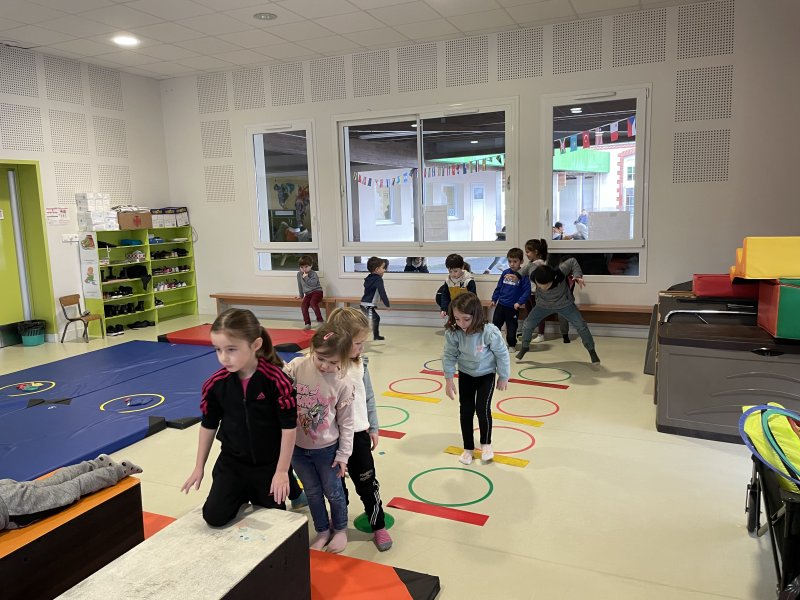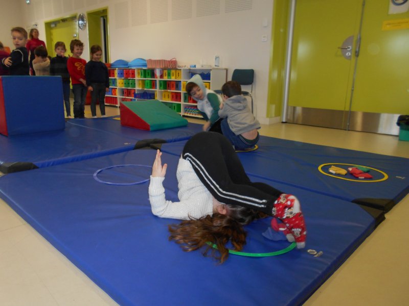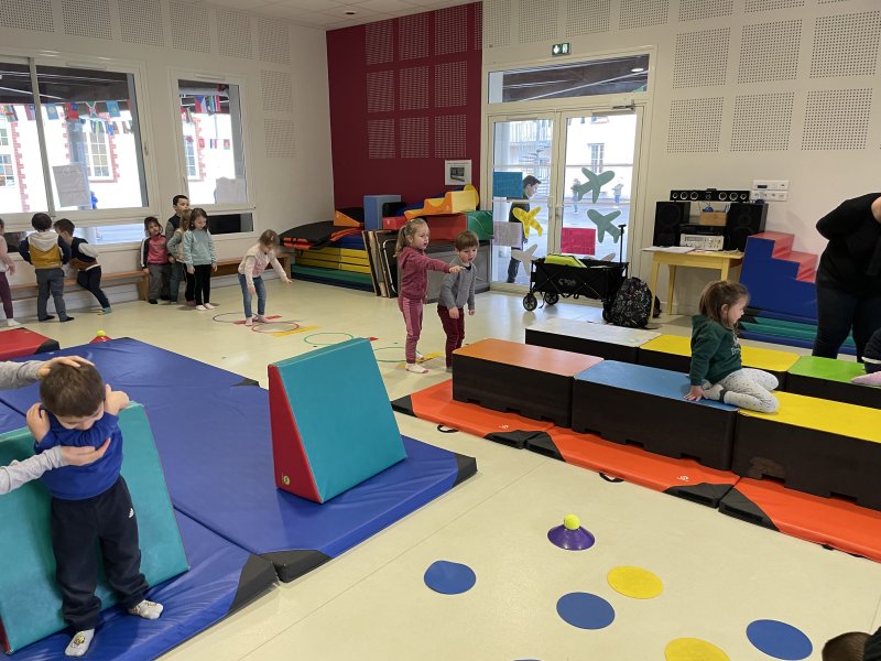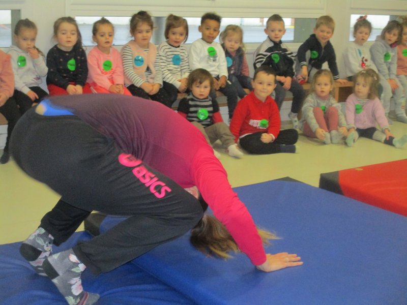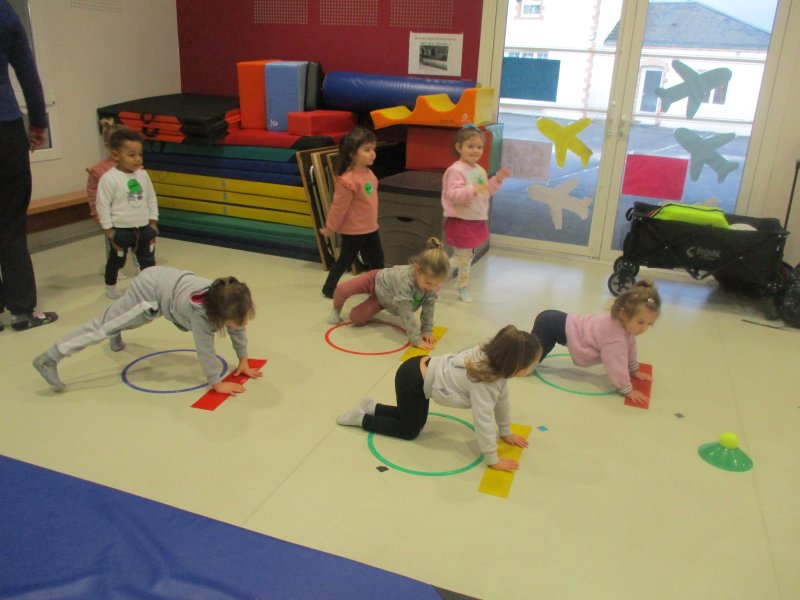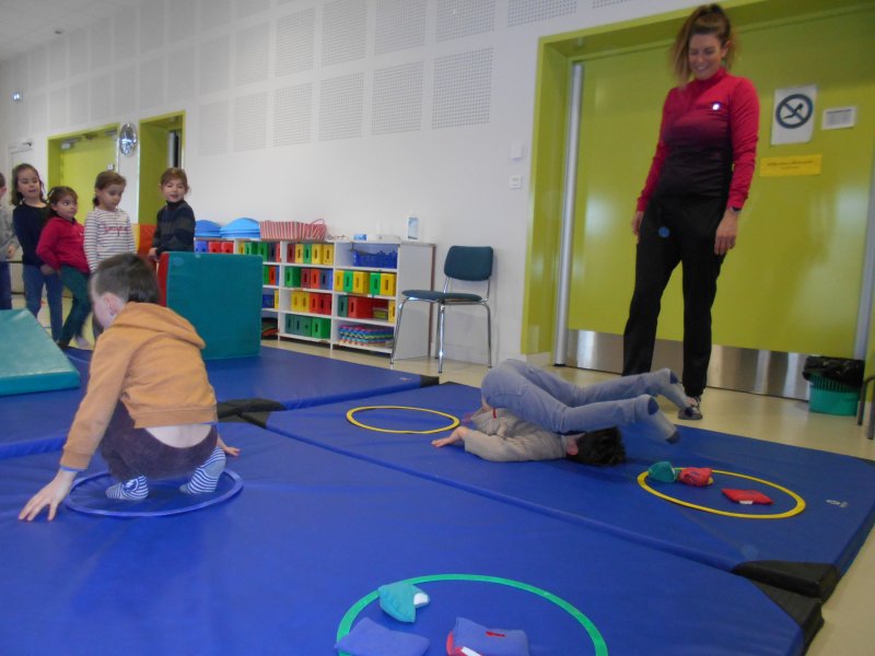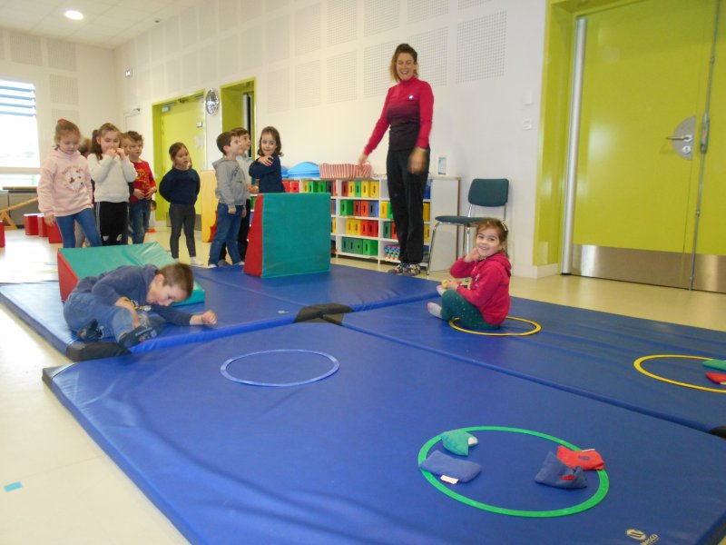 Le mardi 17 janvier, Emilie, éducatrice sportive, est intervenue auprès de chacun des groupes de cycle 1 pour une séance de gymnastique.