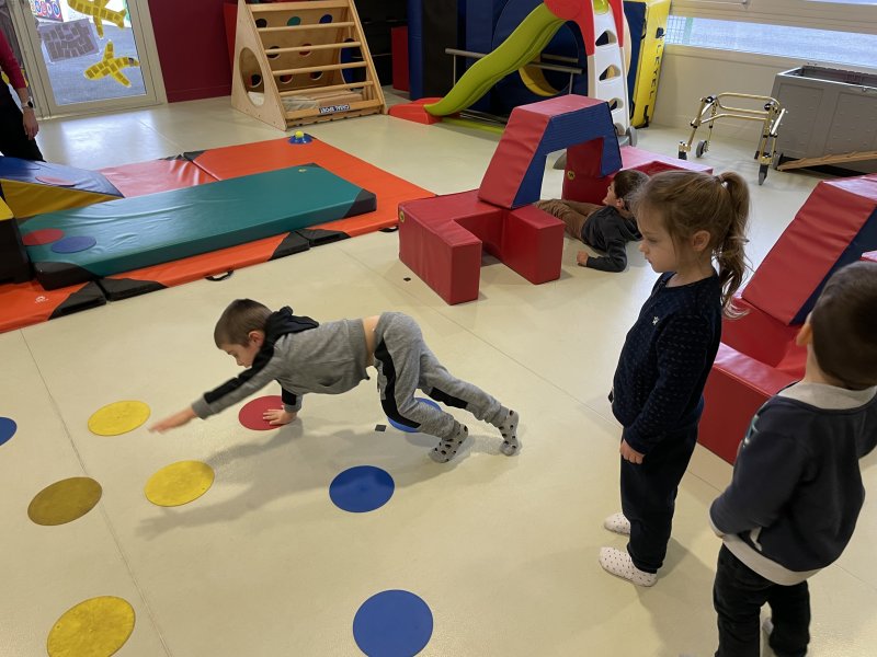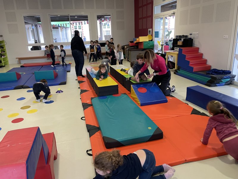 Après avoir découvert le parcours gymnique, les petits sportifs ont pu imiter différents animaux afin de développer différentes capacités motrices.