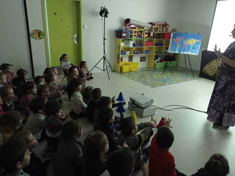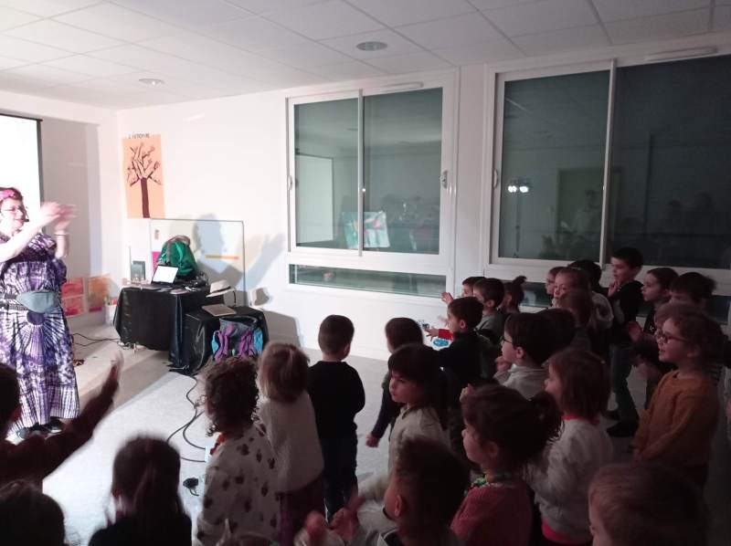 Les élèves de maternelle sont partis en voyage avec Kim et Nina le temps d’un spectacle.