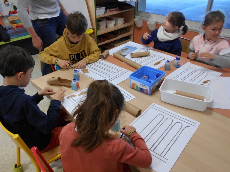 Dans cet atelier, nous avons participé à l’affichage d’un BIG BEN géant dans la classe, autour de notre pendule ! Pour cela, il fallait décorer la tour avec du papier kraft avec beaucoup de patience et de précision! La maman de Faustine nous a également fait découvrir une petite vidéo, qui précisait que BIG BEN est en réalité le nom de la CLOCHE .