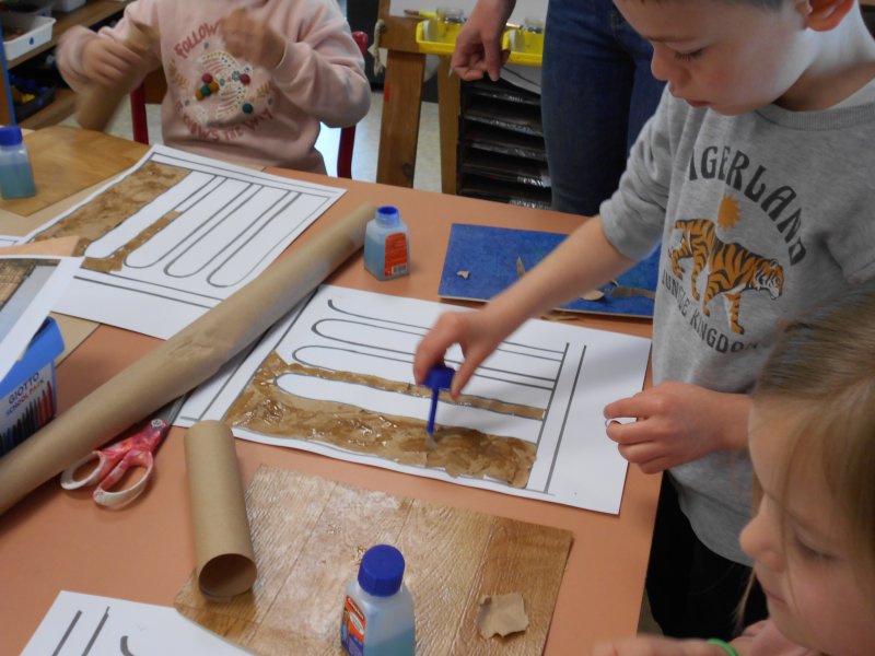 Dans cet atelier, nous avons participé à l’affichage d’un BIG BEN géant dans la classe, autour de notre pendule ! Pour cela, il fallait décorer la tour avec du papier kraft avec beaucoup de patience et de précision! La maman de Faustine nous a également fait découvrir une petite vidéo, qui précisait que BIG BEN est en réalité le nom de la CLOCHE .