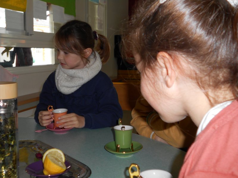 Nous avons découvert comment le thé s’infusait et nous avons goûté une tisane à l’Hibiscus et une autre à l’oranger Bigaradier.