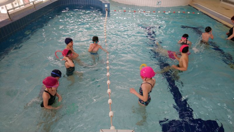 Depuis le 16 mars, les CP des classes de Céline et Aurélie se retrouvent avec les élèves de CP-CE1 A pour des séances de natation à la Piscine de la Bretonnière.