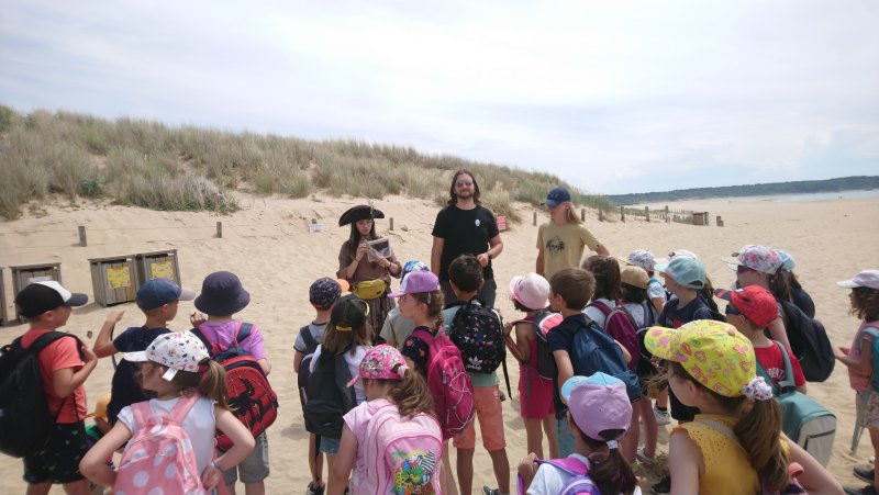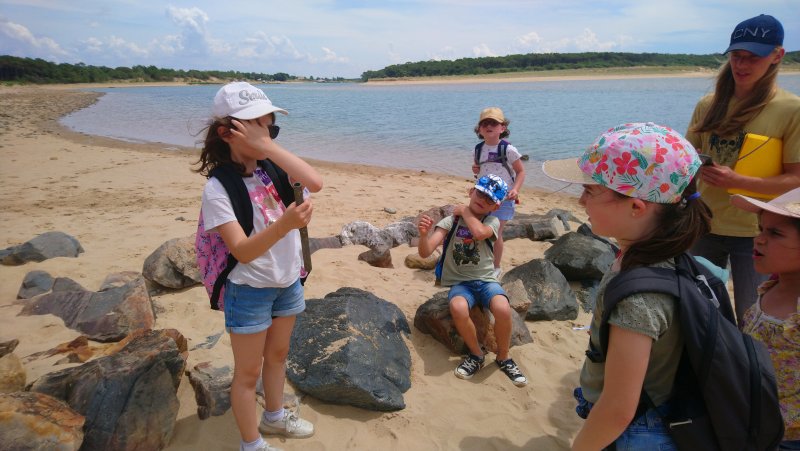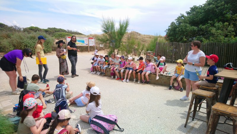 Lorsque nous avons trouvé tous les indices (des mots), nous nous sommes regroupés pour essayer de placer ces mots dans un texte à trous. Un mot n’a pas été placé dans le texte : TOTEM. C’était l’endroit où était notre trésor. Dans la malle à trésor, nous avons découvert des bonbons, une réglette de pêche et un guide « Richesses naturelles du littoral ».