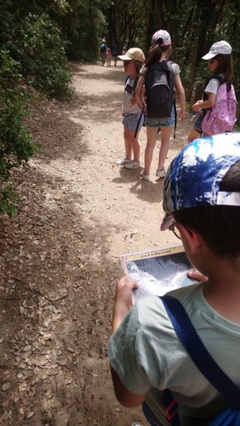 Par petits groupes, nous avons cherché des indices autour des dunes grâce à une carte. Nous avons beaucoup marché !