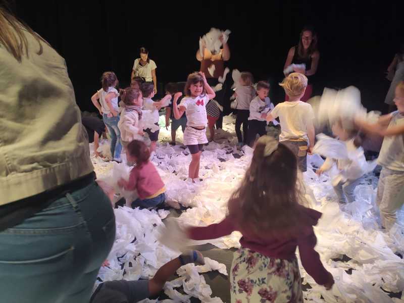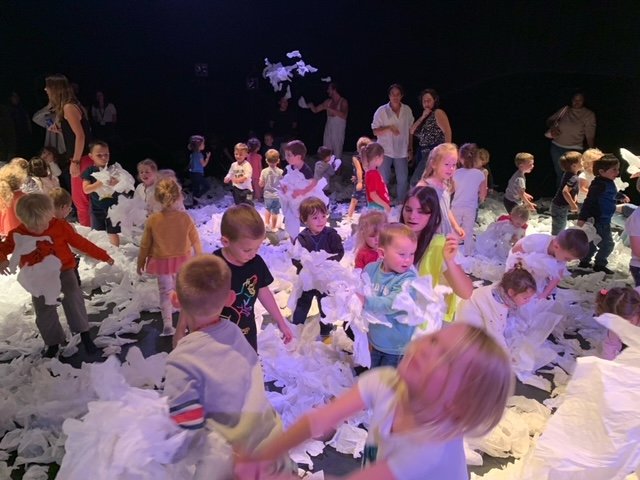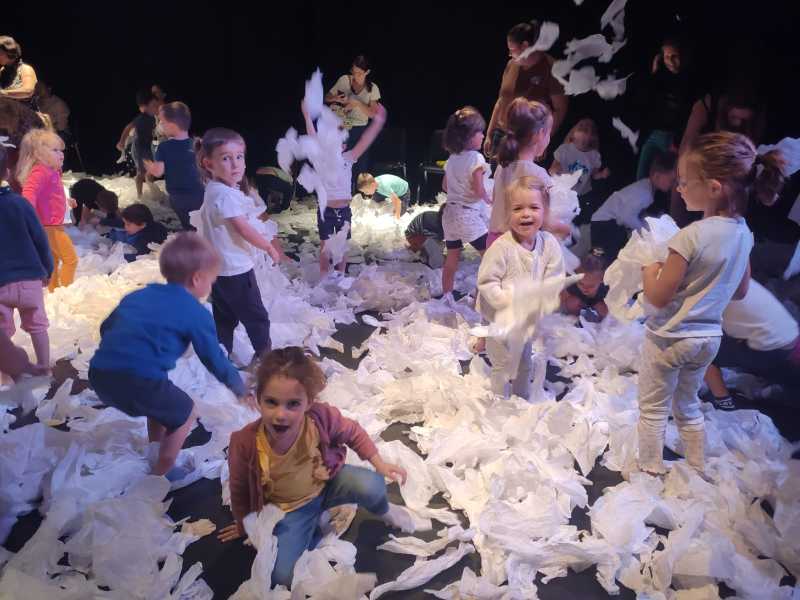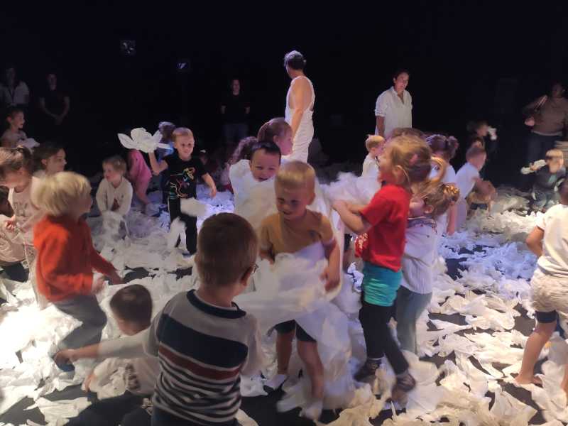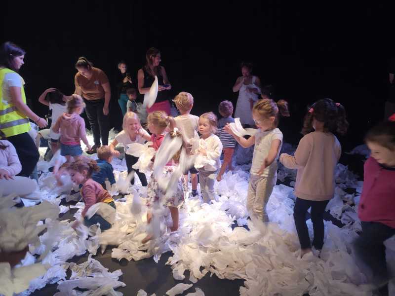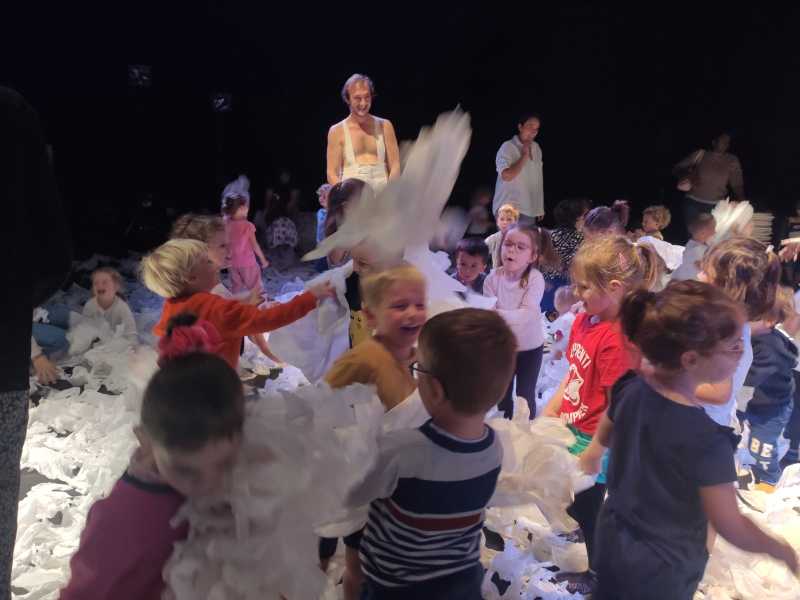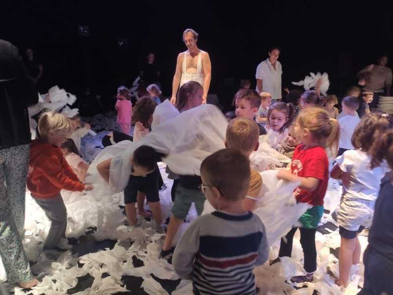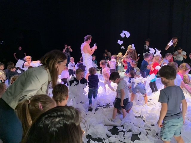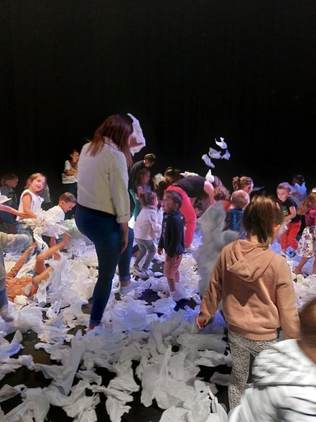 Un spectacle poétique tout en blanc, que les élèves on pu admirer directement assis sur la scène.