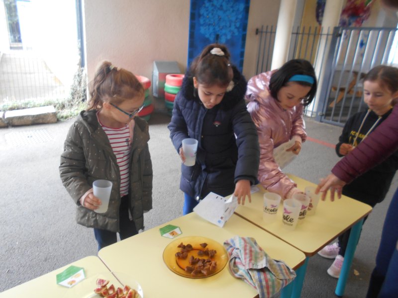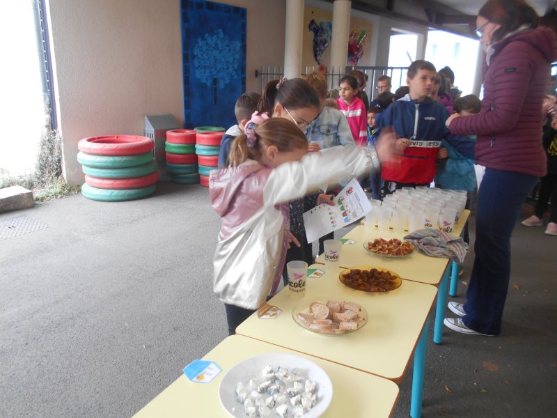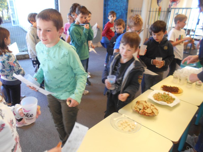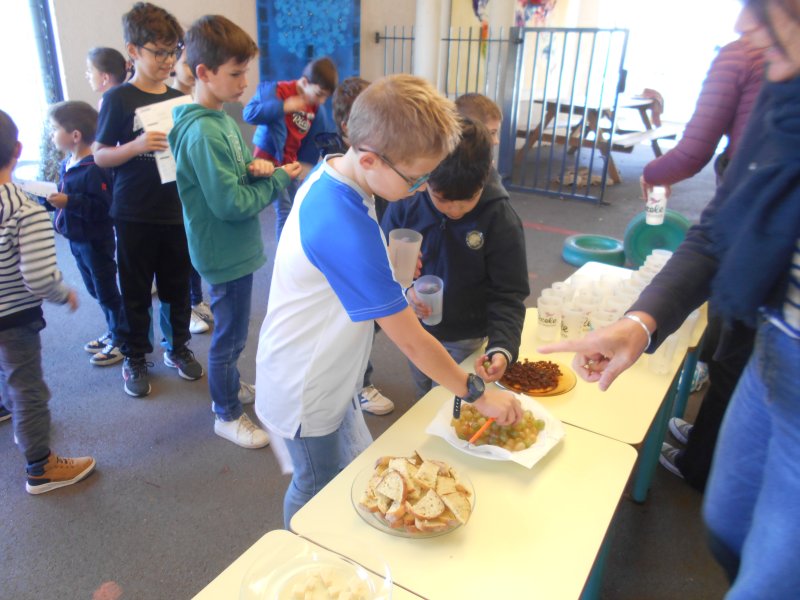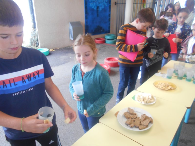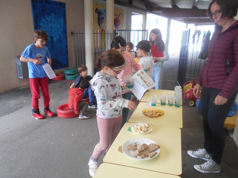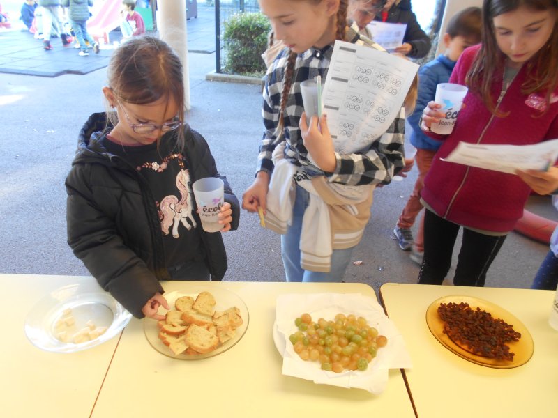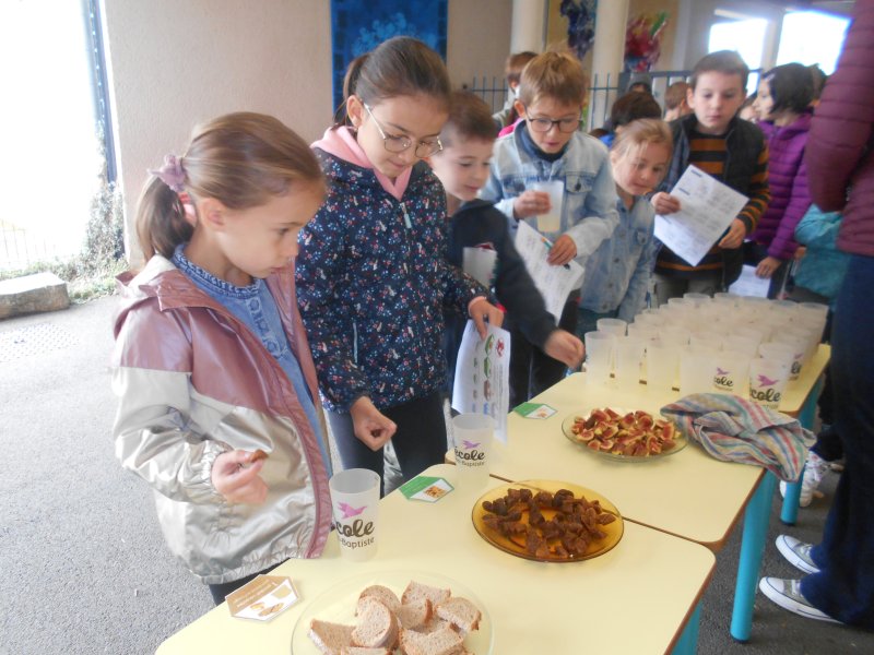 Tous les élèves ont eu l’occasion de goûter des fruits de saison (raisin, figues…), des pains spéciaux ou des cubes de fromage.