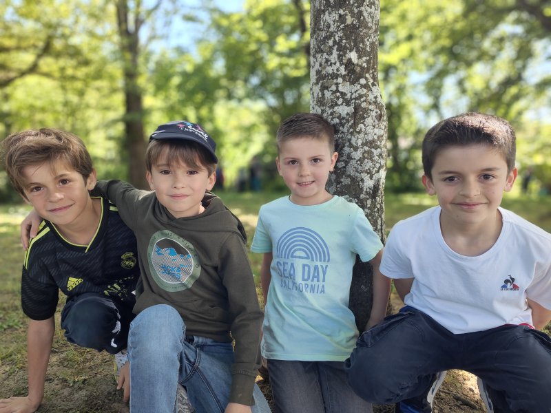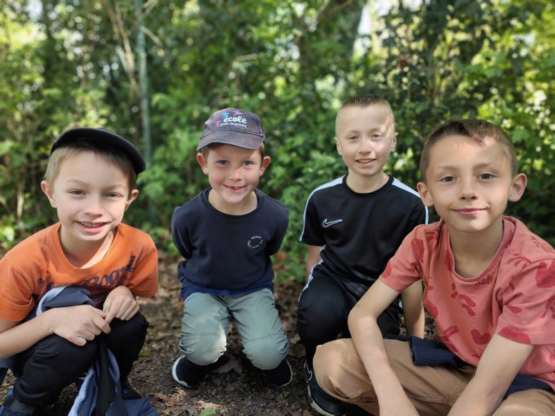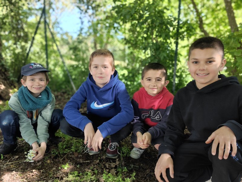 Après une randonnée sur les sentiers menant à la grotte de Landefrère, les élèves se sont retrouvé dans l’espace vert de l’école pour relever un défi artistique : ” Réaliser une oeuvre sur le thème du sport, avec les éléments de la nature”.