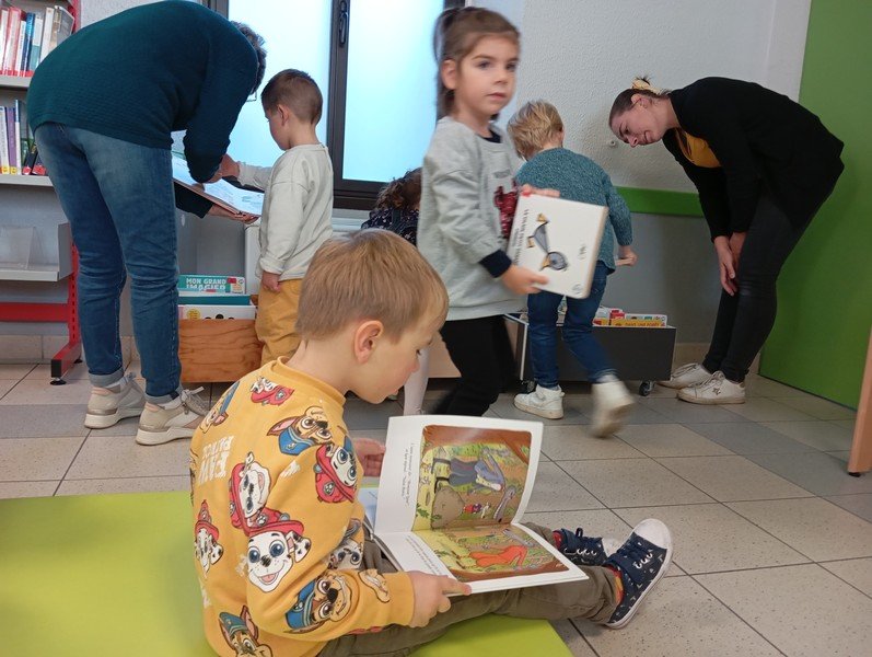 Le vendredi 4 octobre, nous allions pour la première fois de l’année à la Bibliothèque. Nous avons découvert cet espace avec des livres rangés en fonction de l’âge puis par ordre alphabétique. Deux bénévoles nous ont accueillis. Nous avons aussi écouté deux histoires lues par une bénévole.