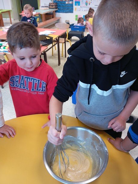 Lundi, les élèves de MS-GS qui ont fêté leur anniversaire en août, septembre et octobre ont emporté des ingrédients pour la confection du gâteau à la crème de marrons.