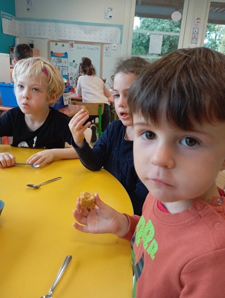- La carotte en gâteau : “c’est très bon”, “c’est sucré”.