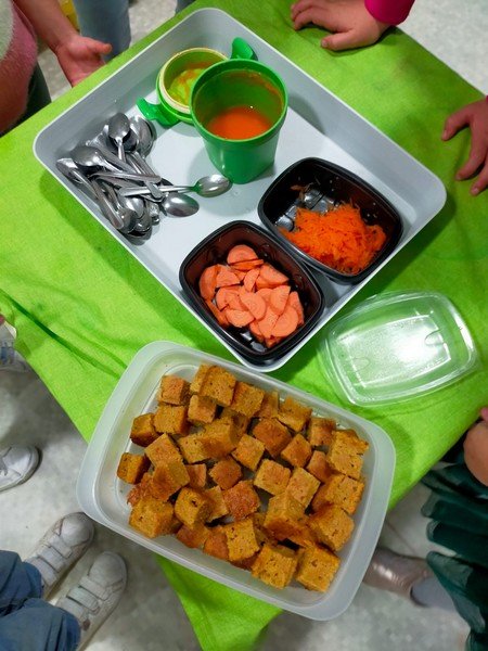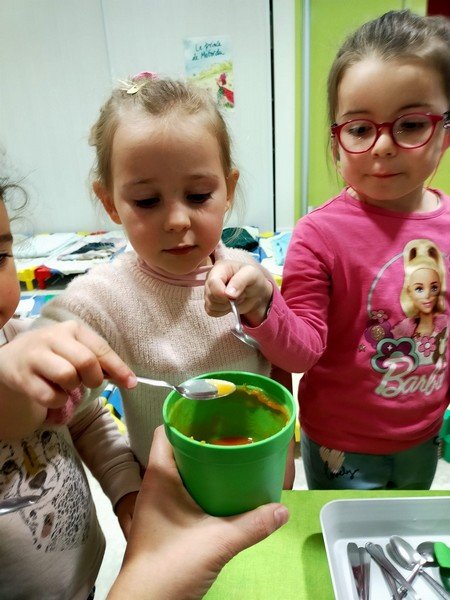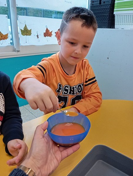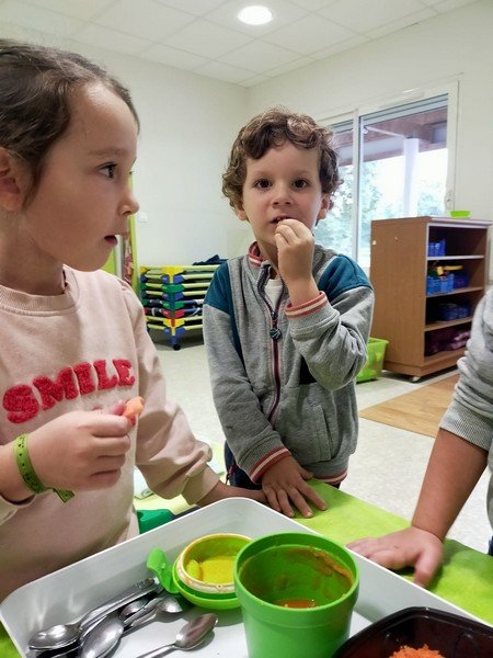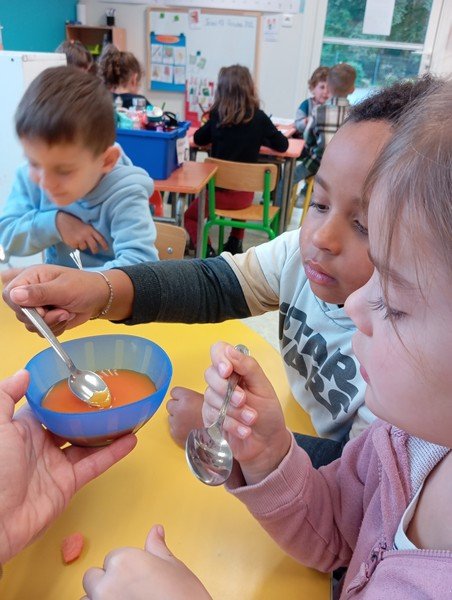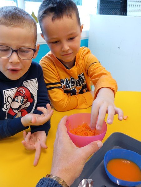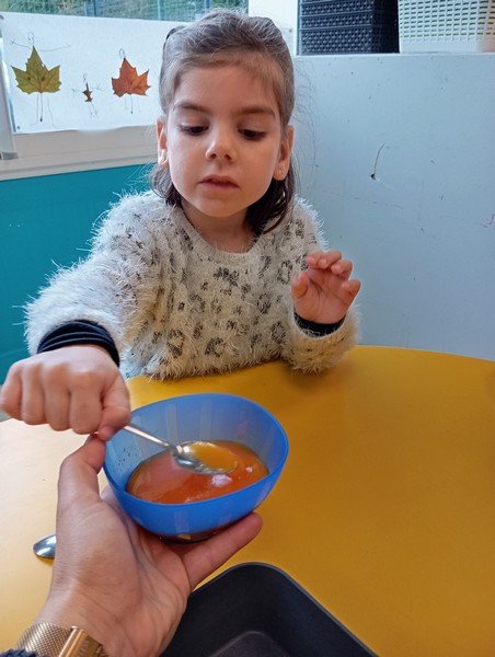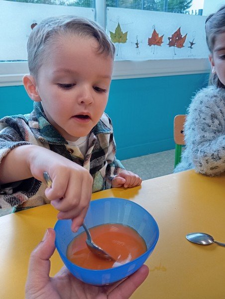 - La carotte en soupe : “c’est bon”, “c’est sucré”.