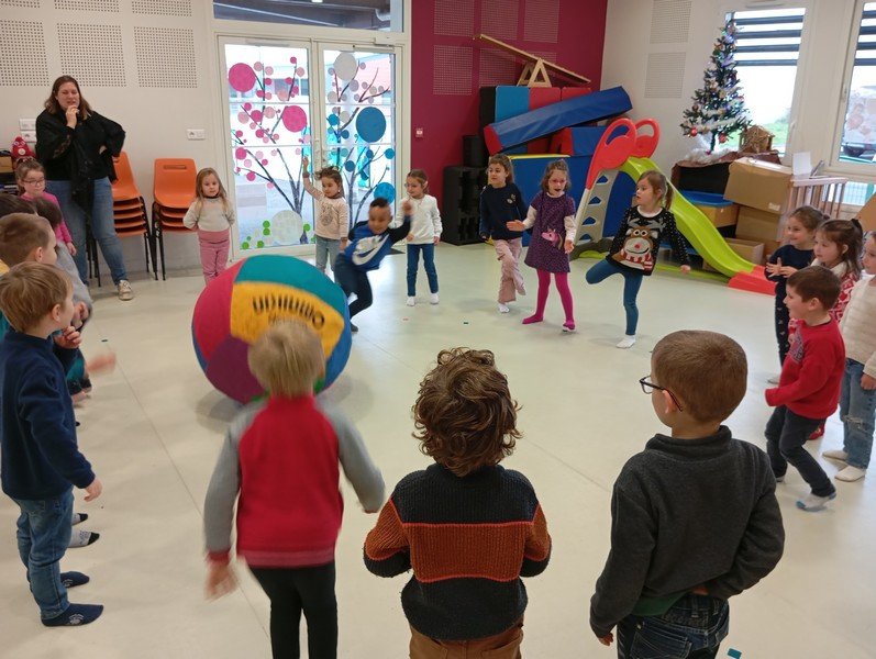 Le Kinball est une très grande baudruche gonflée dans un tissu. Nous l’avons utilisé pour développer la coordination et la coopération.